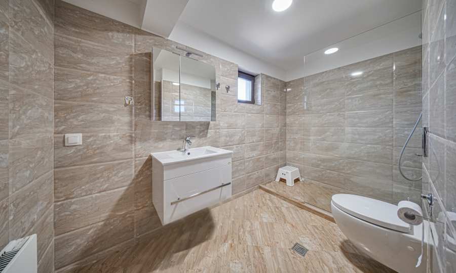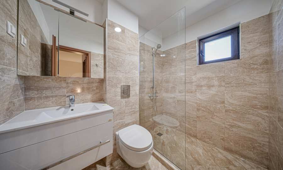 • The second level consists of three bedrooms. The master bedroom has its own bathroom and toilet. On the floor there is another bathroom with toilet, a room with a washing machine and dryer. Also, two of the bedrooms have access to a spacious terrace with views of the city and the mountains;
