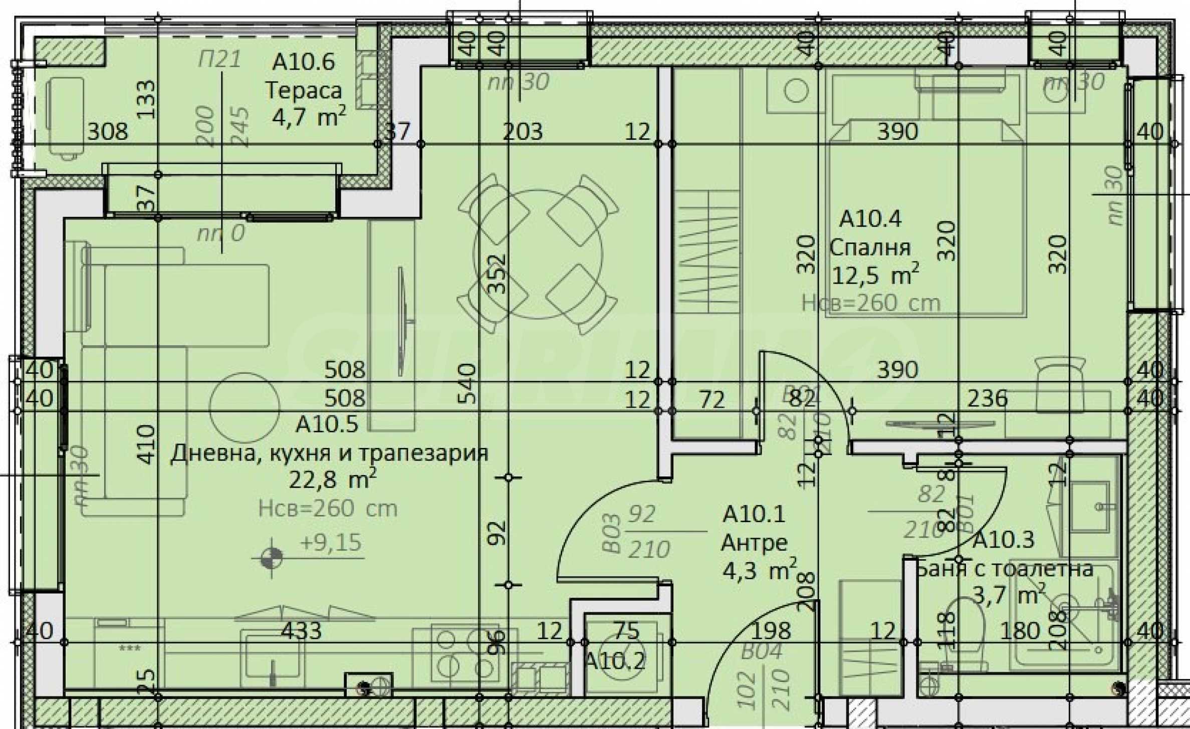 The properties are handed over in a state of completion according to Bulgarian Construction Standards, with plaster and screed.