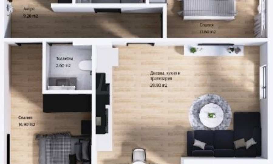 The properties are handed over in a state of completion according to Bulgarian Construction Standards, with plaster and screed.