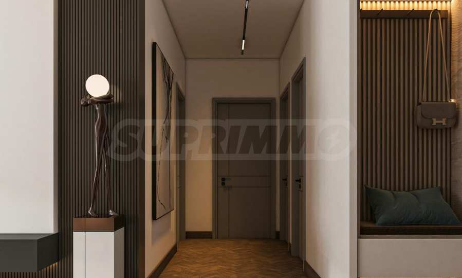 We present a three-bedroom apartment in a modern gated complex of high-class new construction, in a park environment in the "Kamenitsa 2" district. The buildings are located in close proximity to Mall Plaza, with direct pedestrian access between the complex and the shopping center. This provides convenient access to shops, services, restaurants and leisure areas - without the need for a car. A few minutes walk away are "Lauta" Park, a large hypermarket, as well as main road connections that connect the area with the central part of the city. The location offers practicality, good organization and easy access to everything that matters in everyday life.