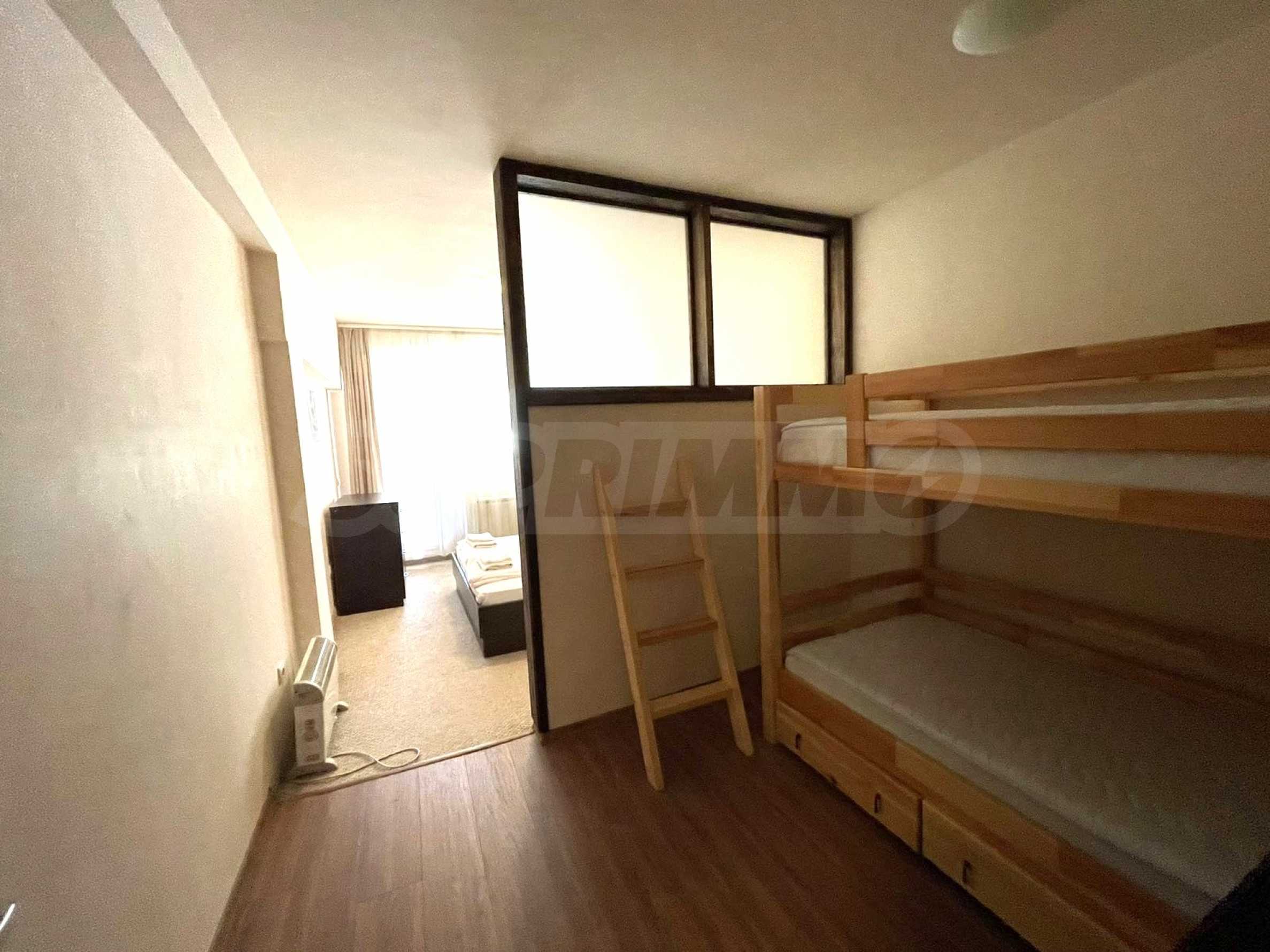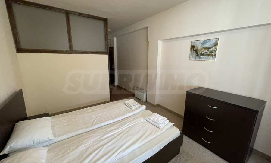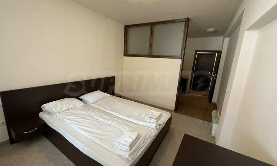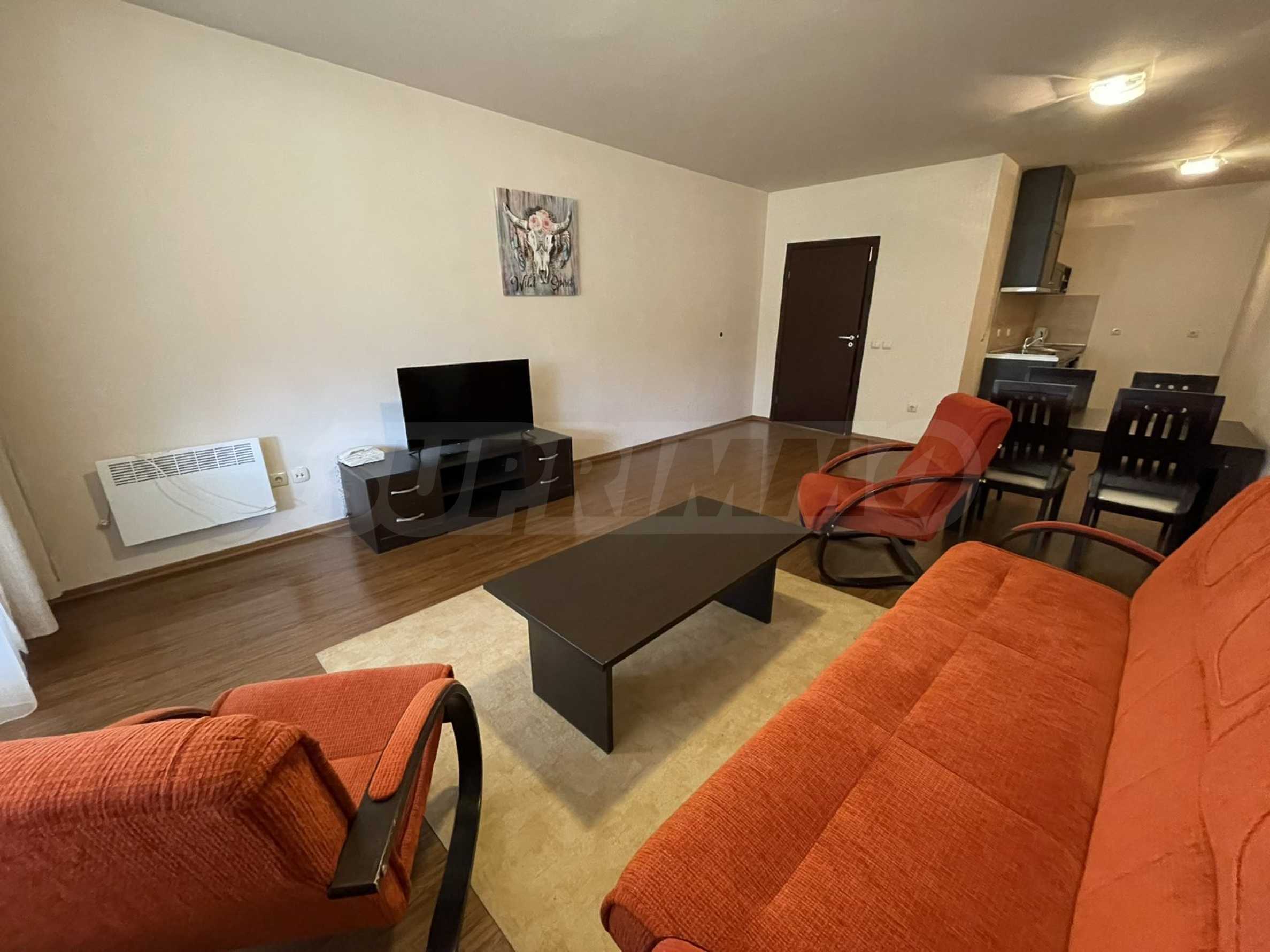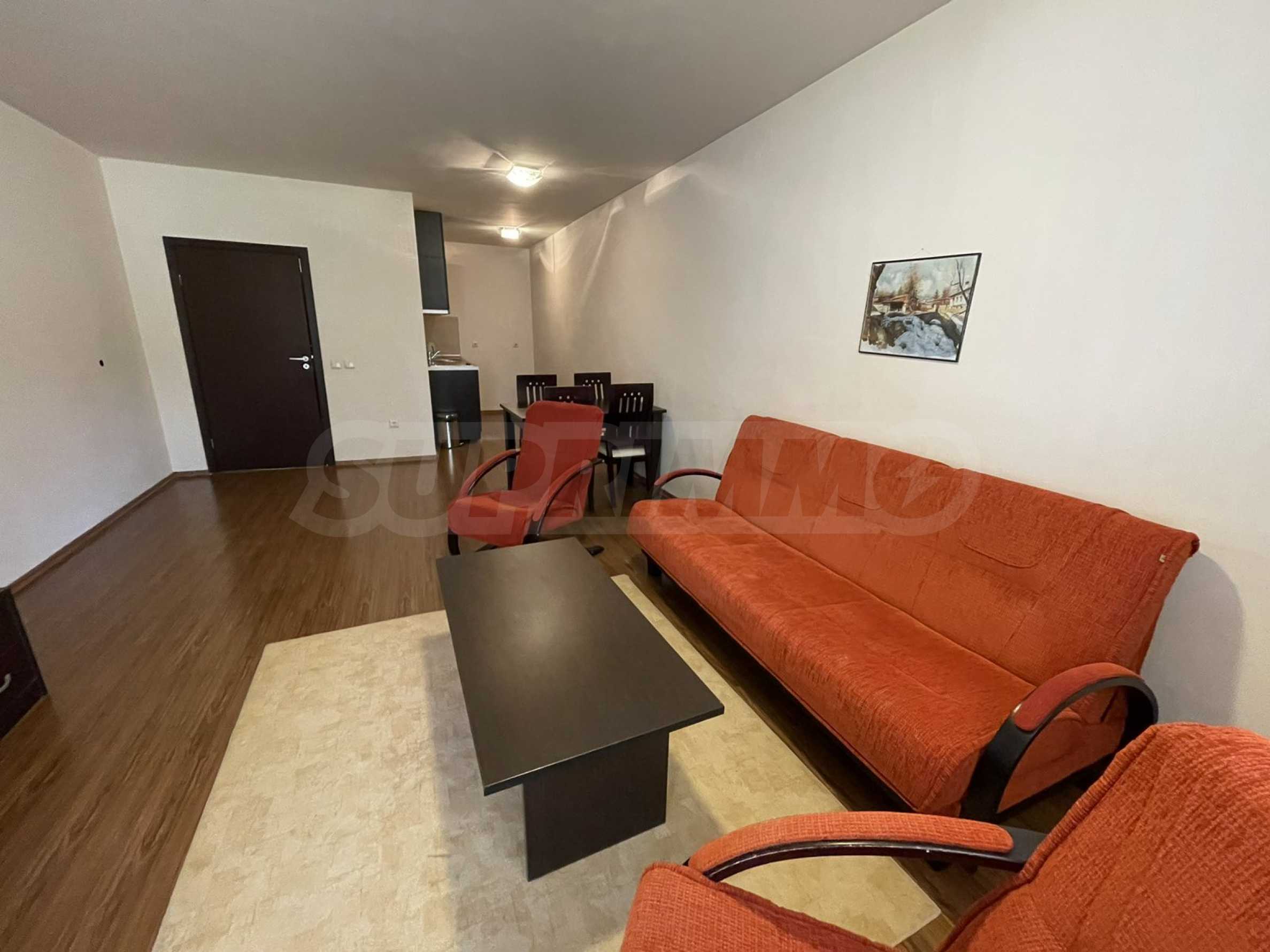 A wonderful offer from the real estate market - sale of a completely south-facing one-bedroom apartment with magnificent views of the Pirin Mountain and the slopes in the gated complex Bansko Royal Towers with a 5,000 m2 meadow with a children's playground and an outdoor pool, 100 meters from the gondola lift.