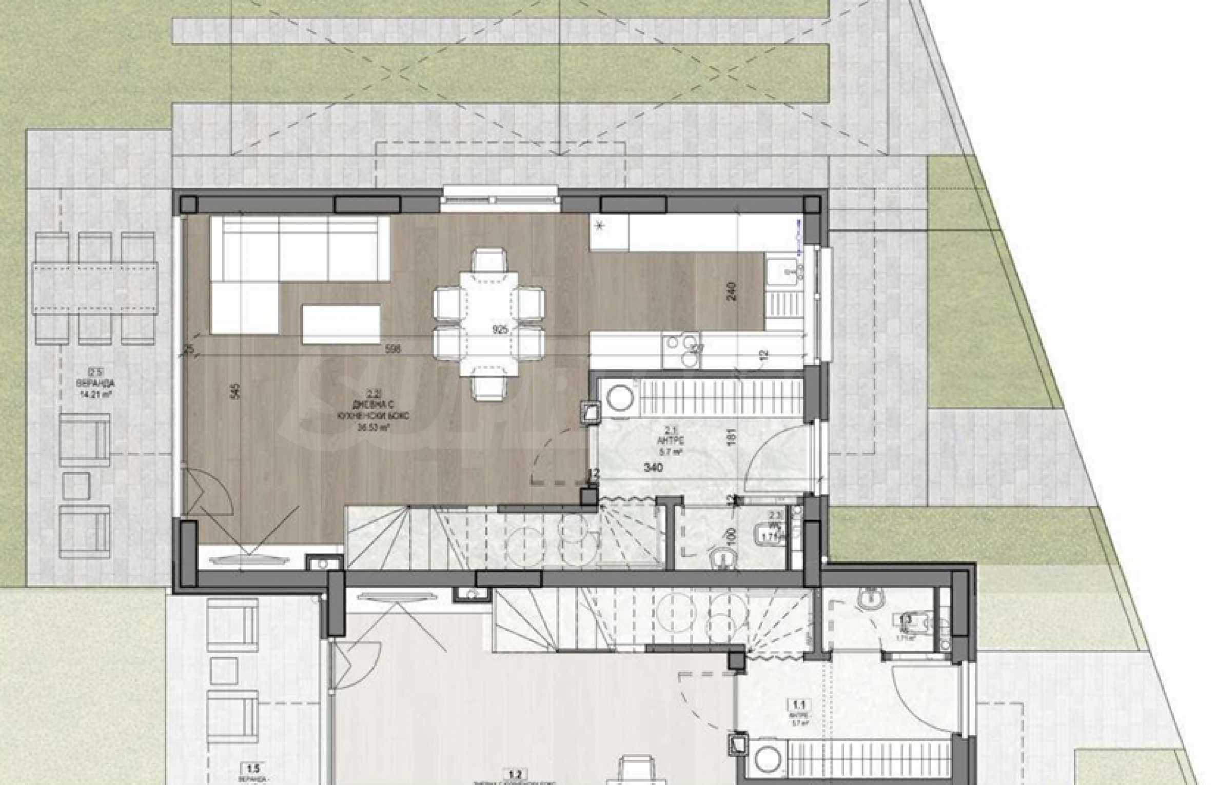 • the joinery is high-quality PVC /for houses of type B, D and E/ and aluminum joinery /for houses;