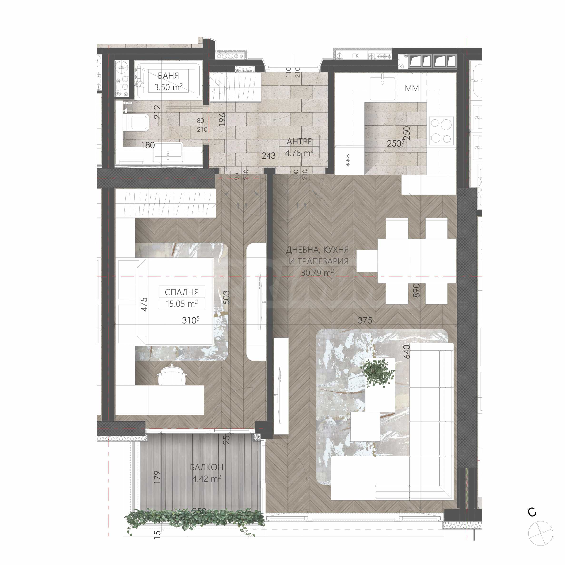 Each floor of Synerga Premium Complex offers a unique collection of 7 different apartments, all facing south and offering impressive panoramic views of Vitosha Mountain. The layouts are designed with the modern person in mind – functional spaces, optimal areas and natural light in each apartment. There is no waste here, but there are no compromises either – each apartment is designed to bring space and comfort.