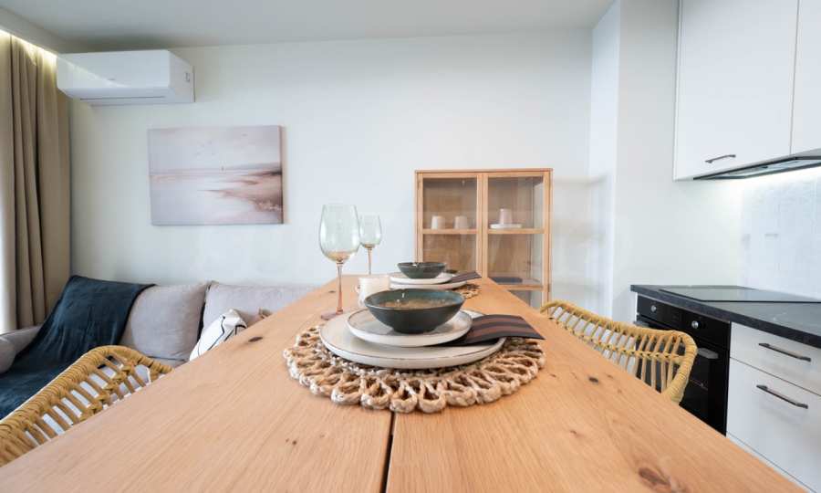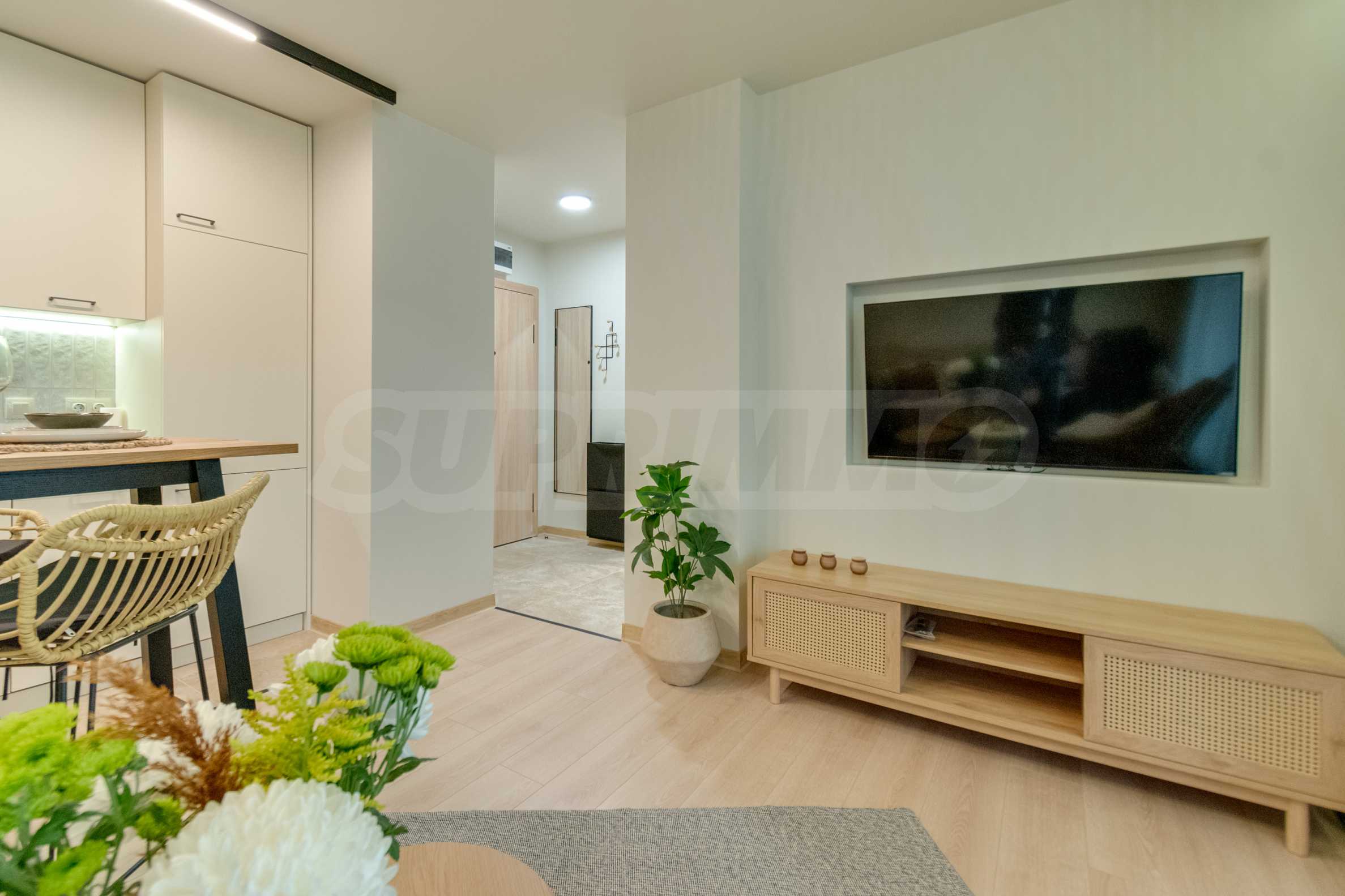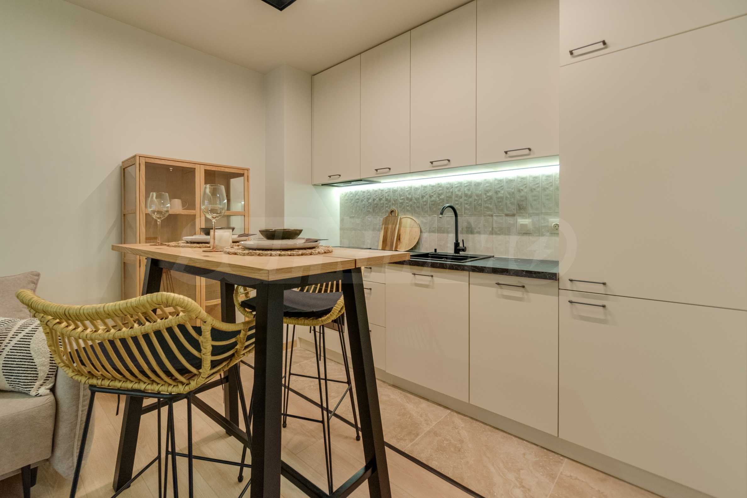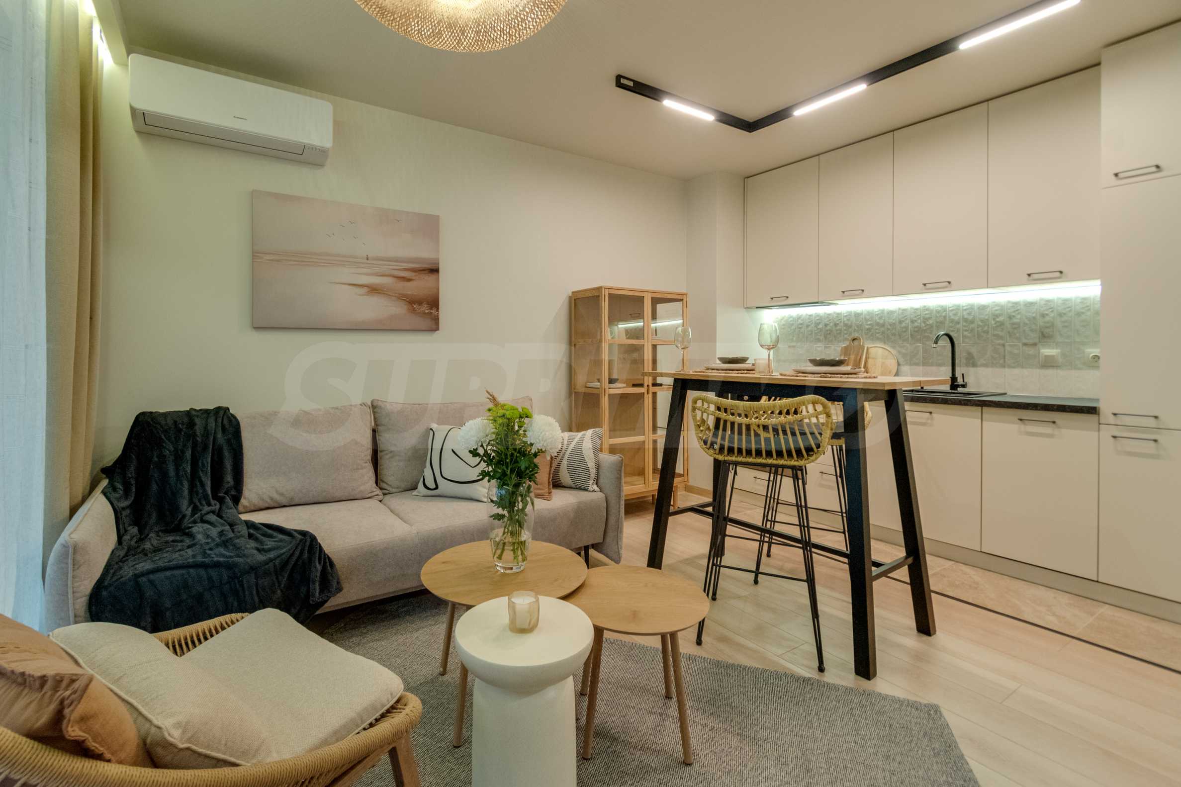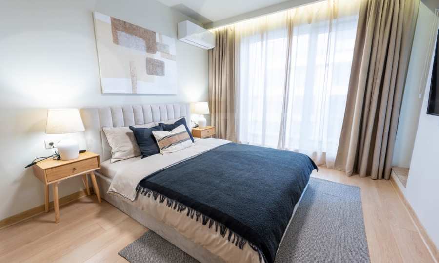 Boutique apartment for sale in KANSO residential complex. The apartment is fully finished and furnished with attention to every detail, quality furniture and appliances are used. The interior is decorated in light and warm colors, which create a feeling of coziness and harmony.