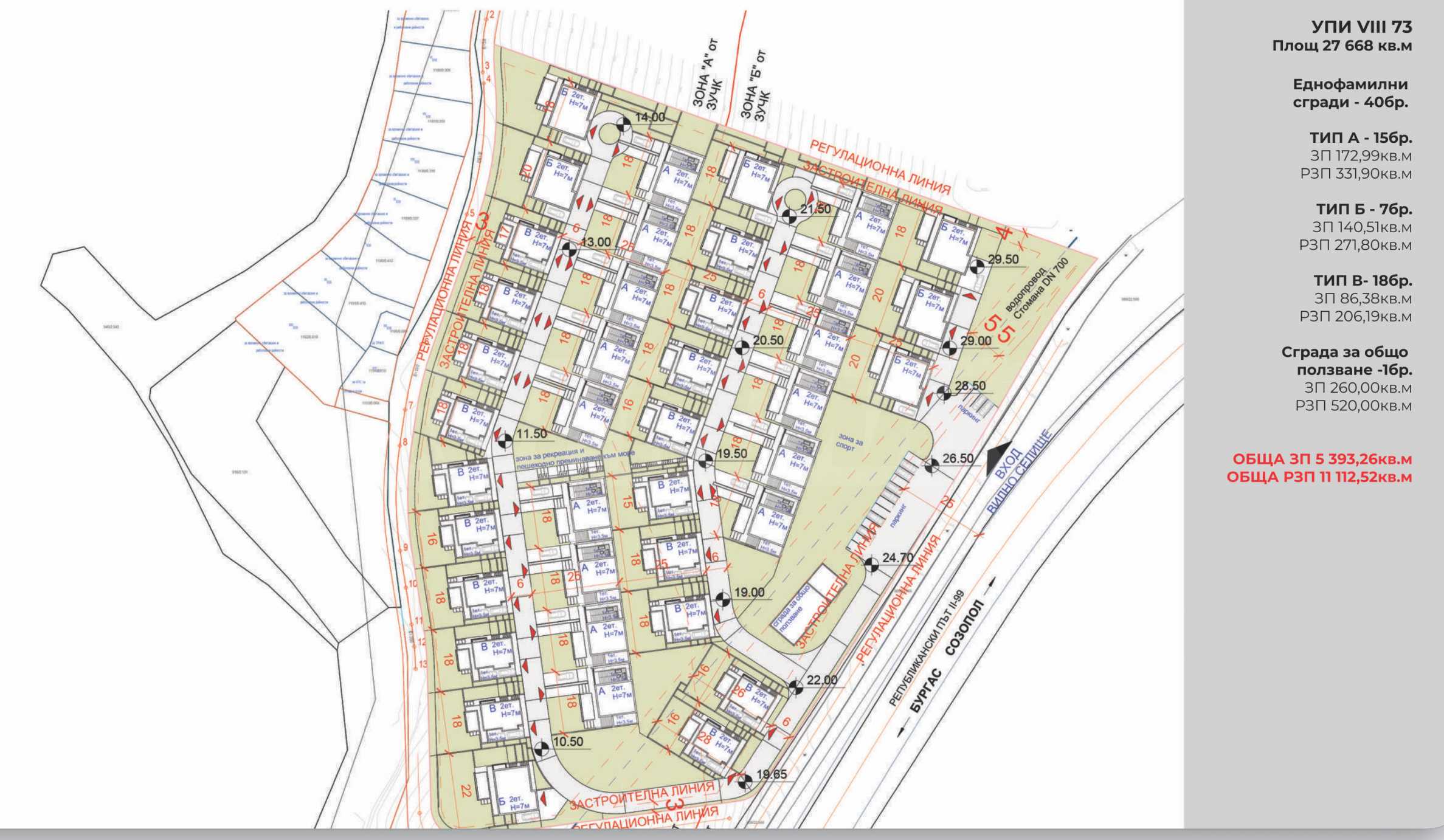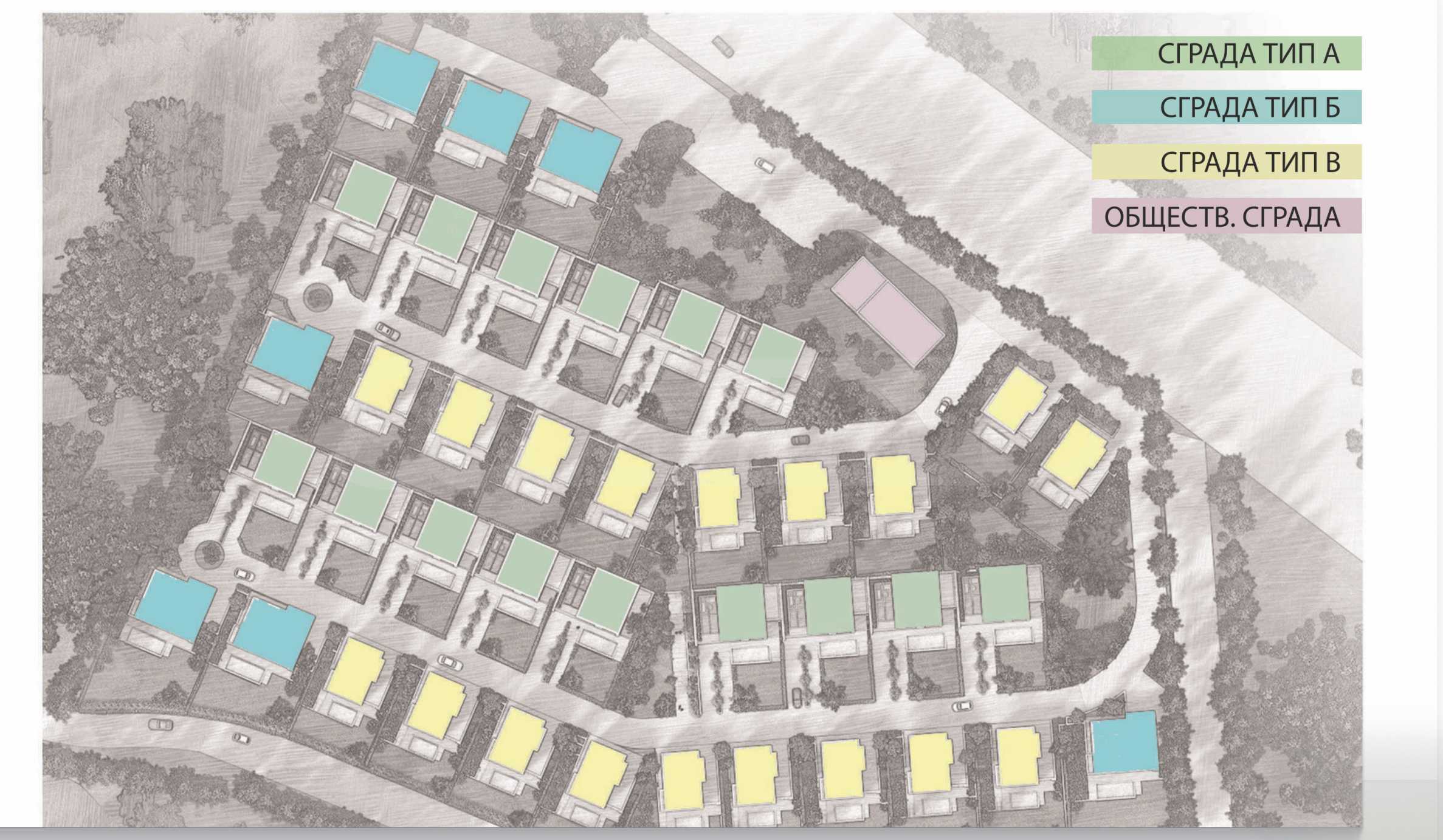 Concept and parameters of the project: The approved Detailed Development Plan (DDP) provides for the construction of a villa village “Consort” – a modern residential complex of 40 single-family houses and a building for public use, located on a regulated property with an area of 27,668 m2.