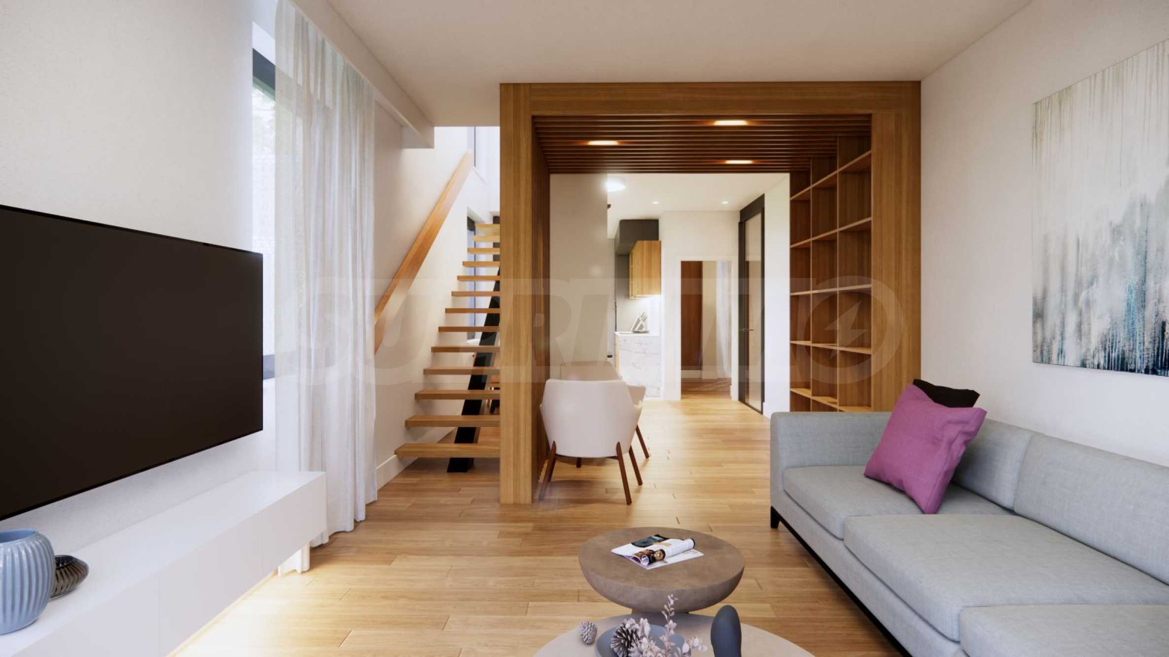We present a spacious maisonette for sale, one of the last available apartments in a luxury boutique building, which is being built in the quiet and green part of Sofia - v.z. Cinema Center III, Boyana district. The building impresses with modern architecture, high-quality execution and harmony between urban comfort and nature. The maisonette offers a private courtyard, a combination of privacy, elegance and natural balance at the foot of the mountain. The apartment is designed to provide maximum comfort and a feeling of living in a house, with optimal lighting and direct access to green space.