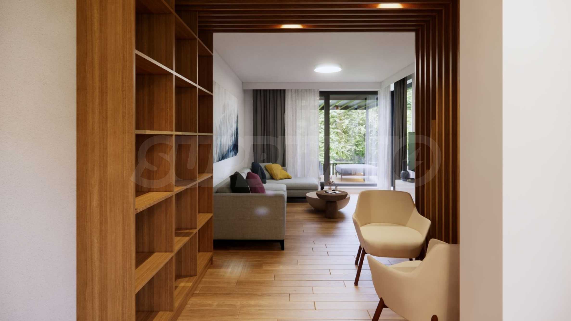 We present a spacious maisonette for sale, one of the last available apartments in a luxury boutique building, which is being built in the quiet and green part of Sofia - v.z. Cinema Center III, Boyana district. The building impresses with modern architecture, high-quality execution and harmony between urban comfort and nature. The maisonette offers a private courtyard, a combination of privacy, elegance and natural balance at the foot of the mountain. The apartment is designed to provide maximum comfort and a feeling of living in a house, with optimal lighting and direct access to green space.