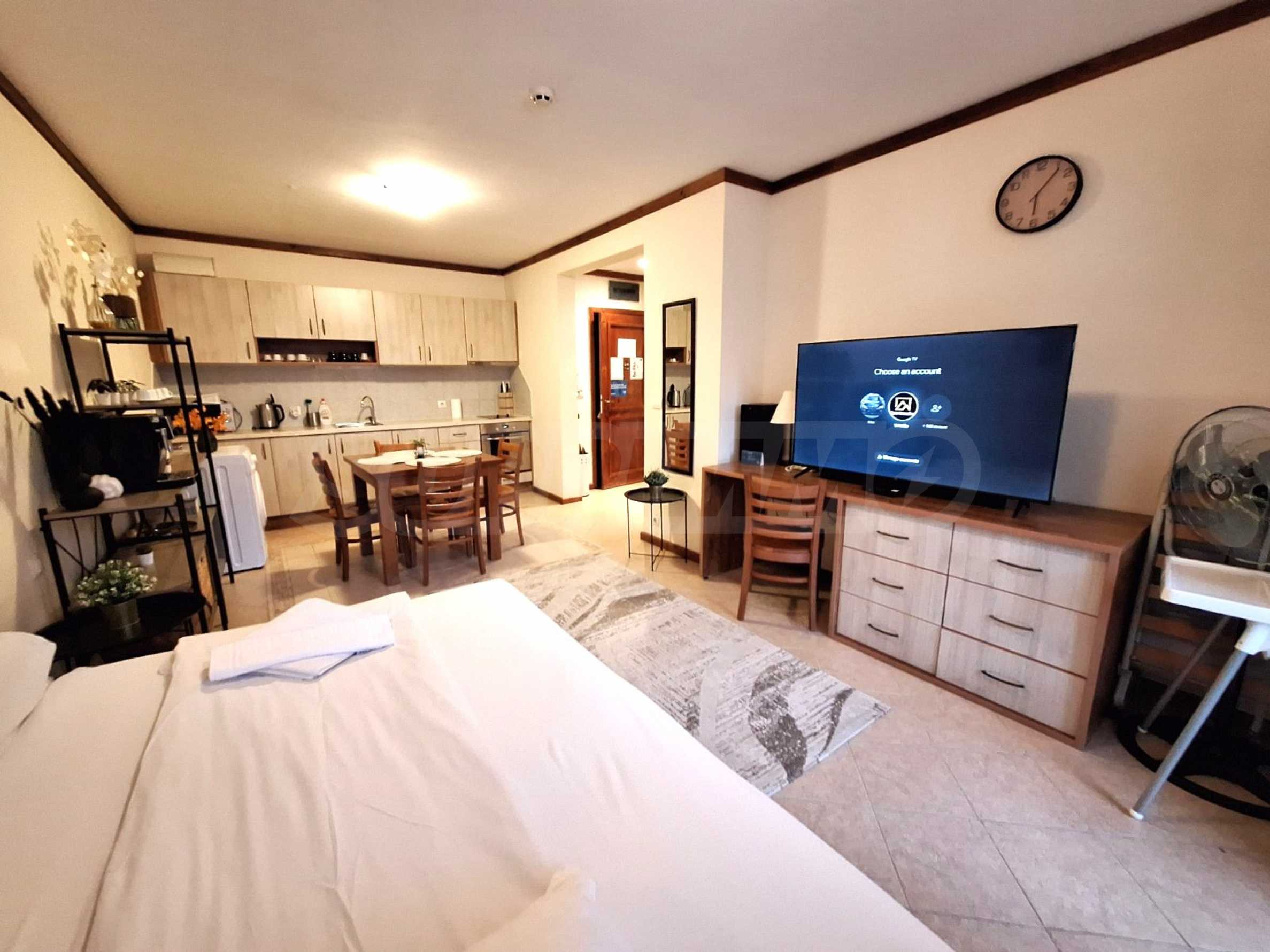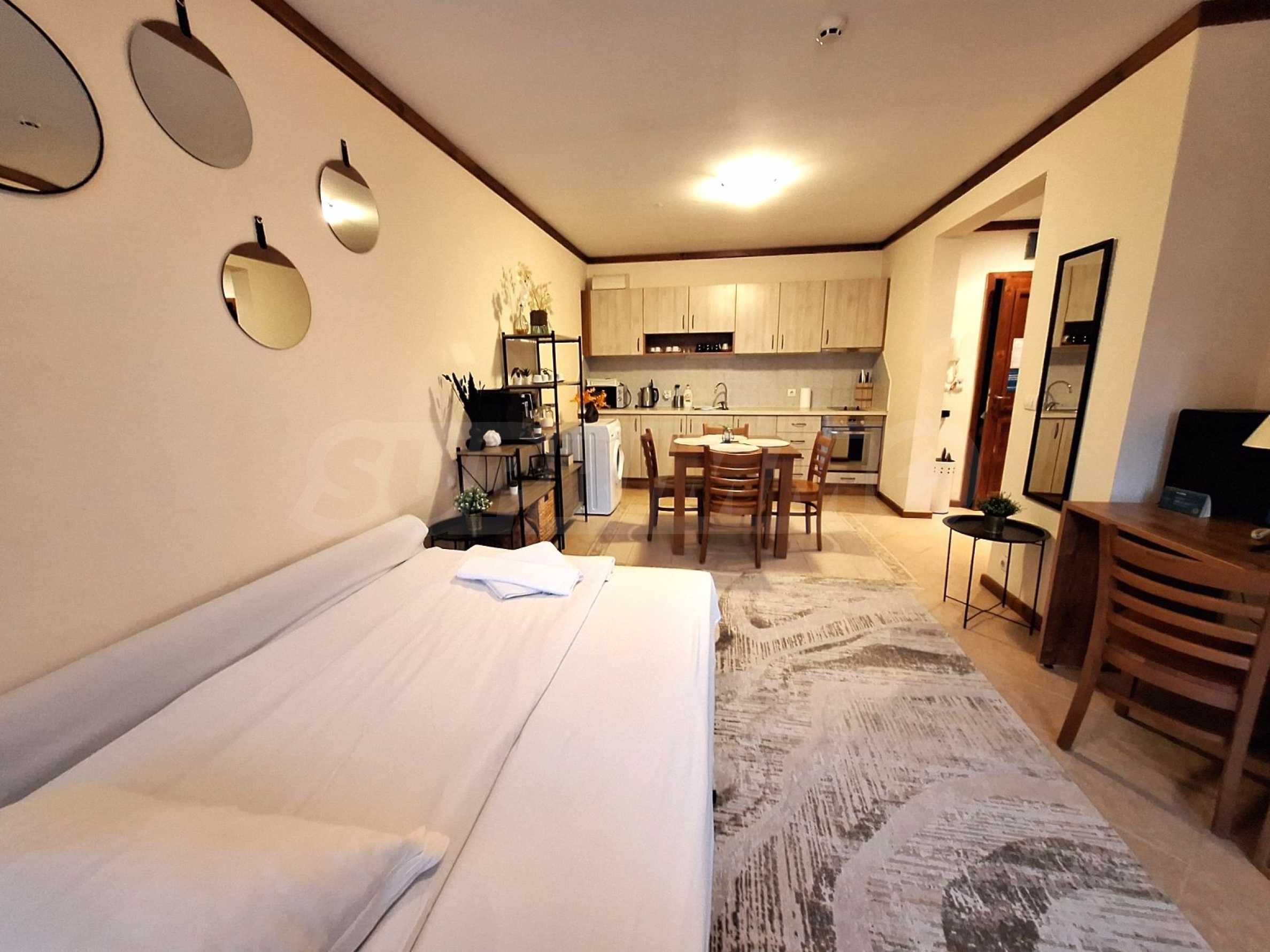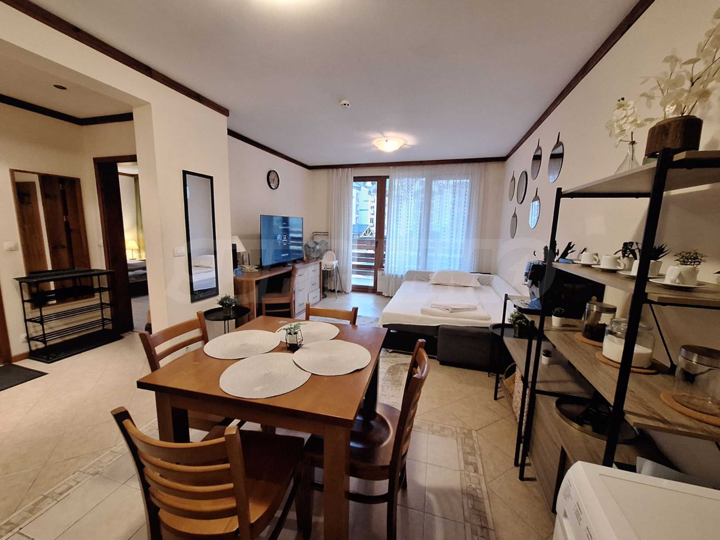 We present a furnished one-bedroom apartment for sale in the "St. Ivan Rilski" SPA complex, featuring some of the best amenities in the Bansko ski resort.