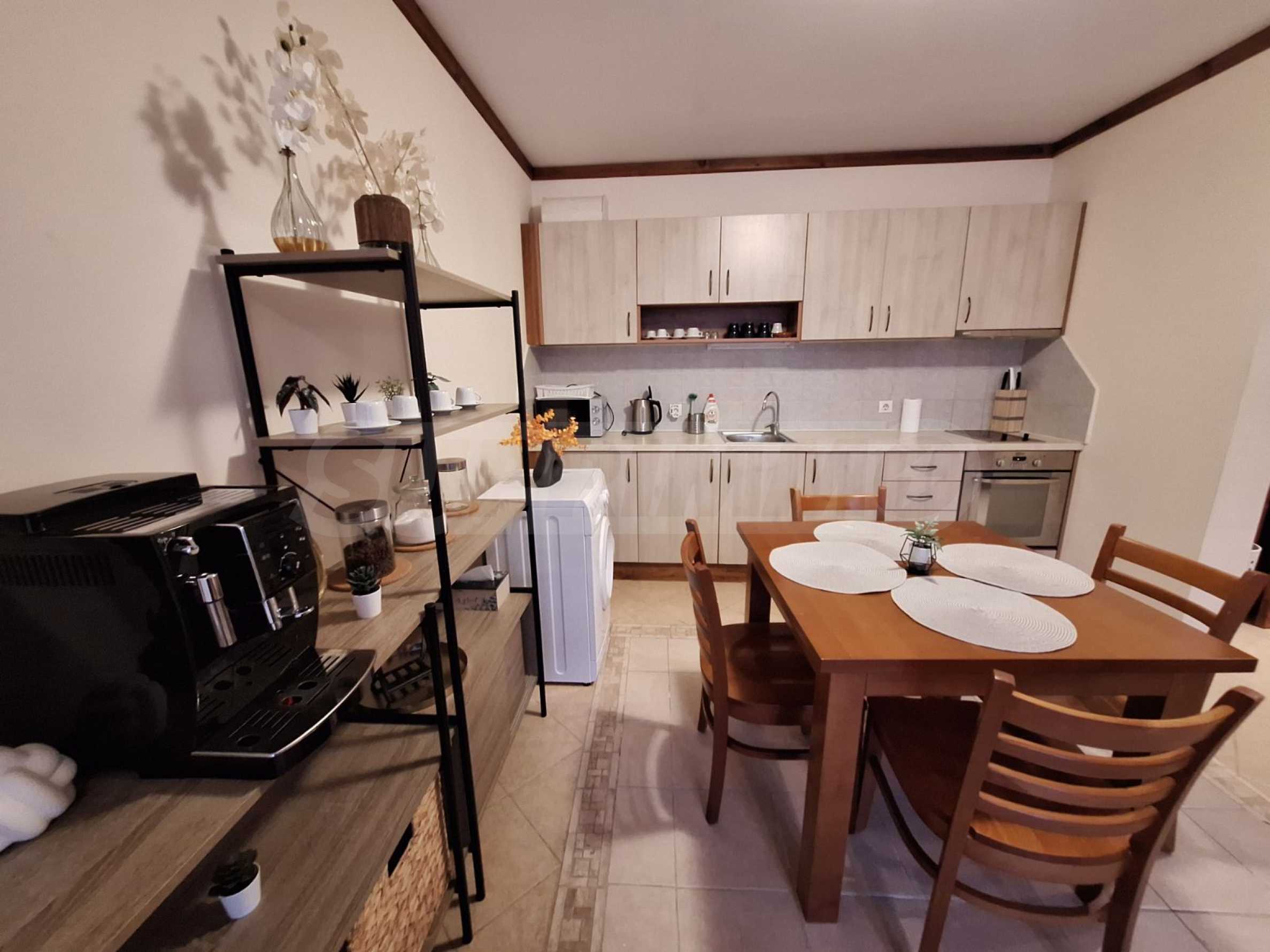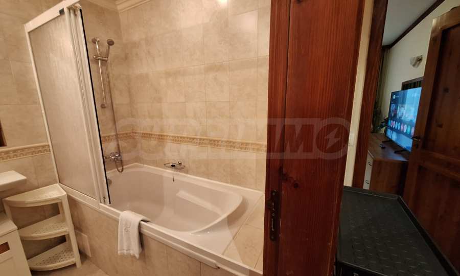 The apartment is located in a house behind the main building. Each house has: a massage area, sauna, steam bath, ski wardrobe, large barbecue with fireplace, billiard table. All these extras are intended only for the owners. The owners will enjoy fresh mountain air and views of Pirin. The charming interior gives the feeling of home comfort.