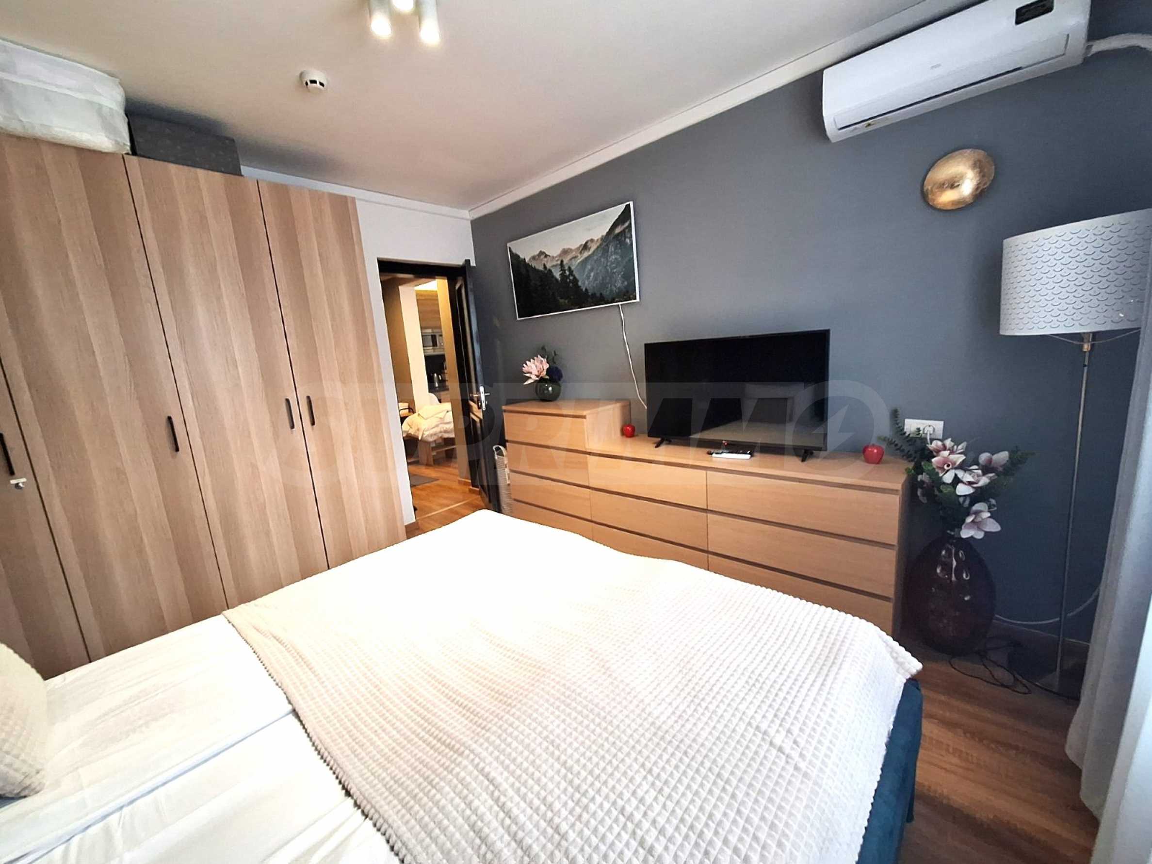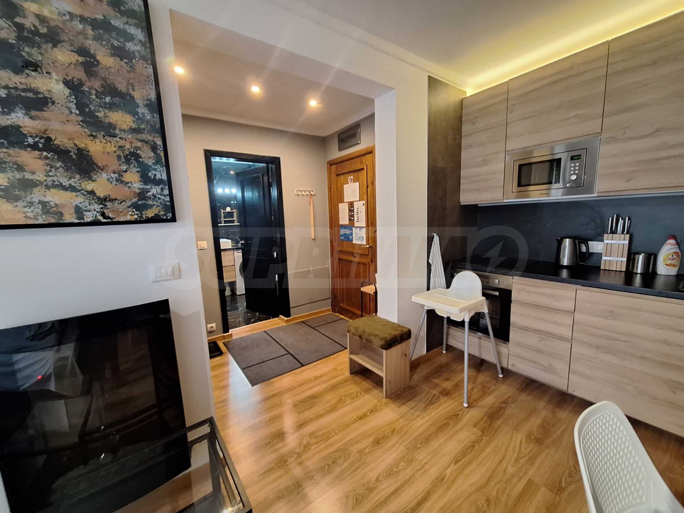 We present a luxuriously furnished one-bedroom apartment for sale in the "St. Ivan Rilski" SPA complex, featuring some of the best amenities in the Bansko ski resort.