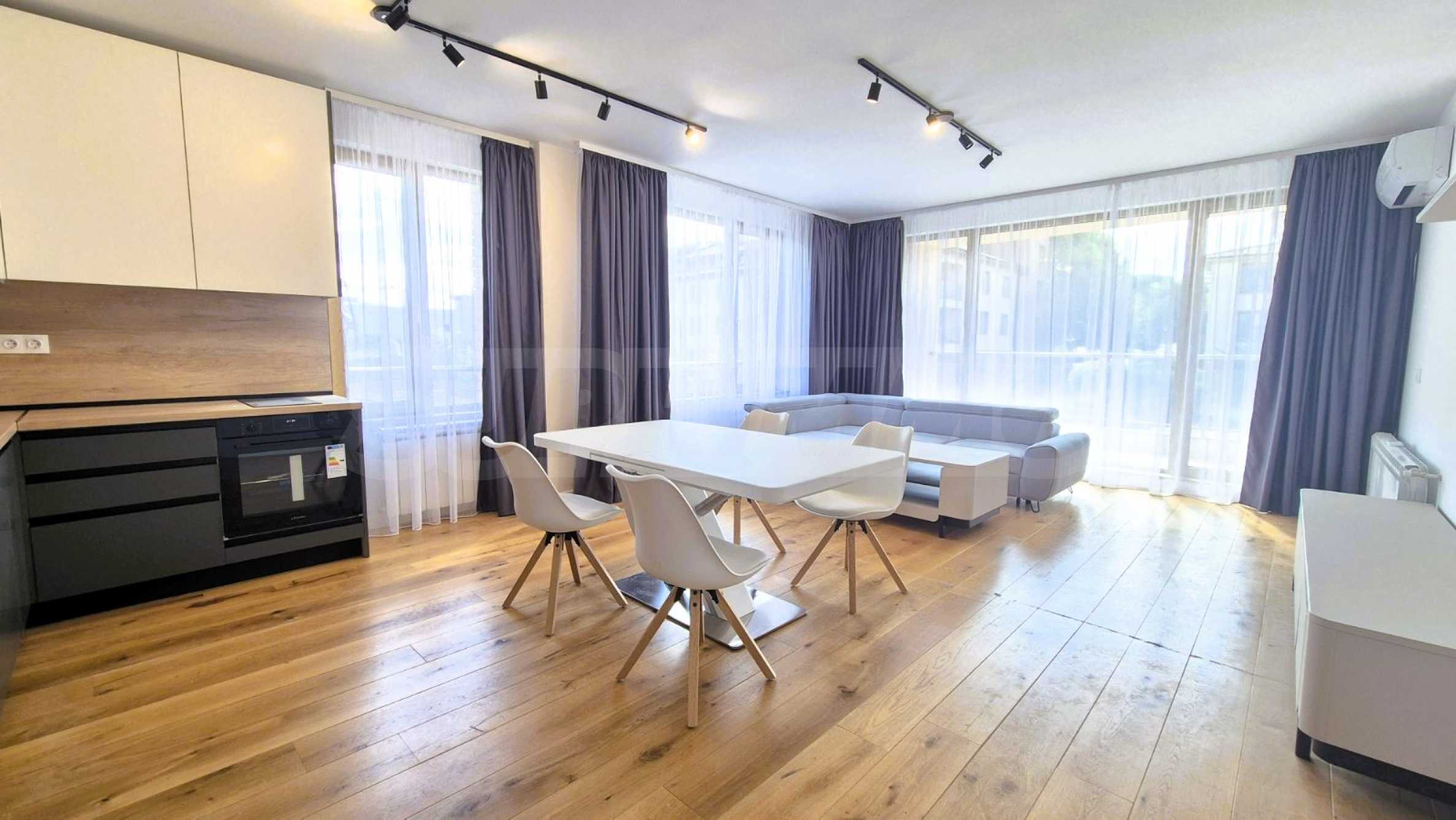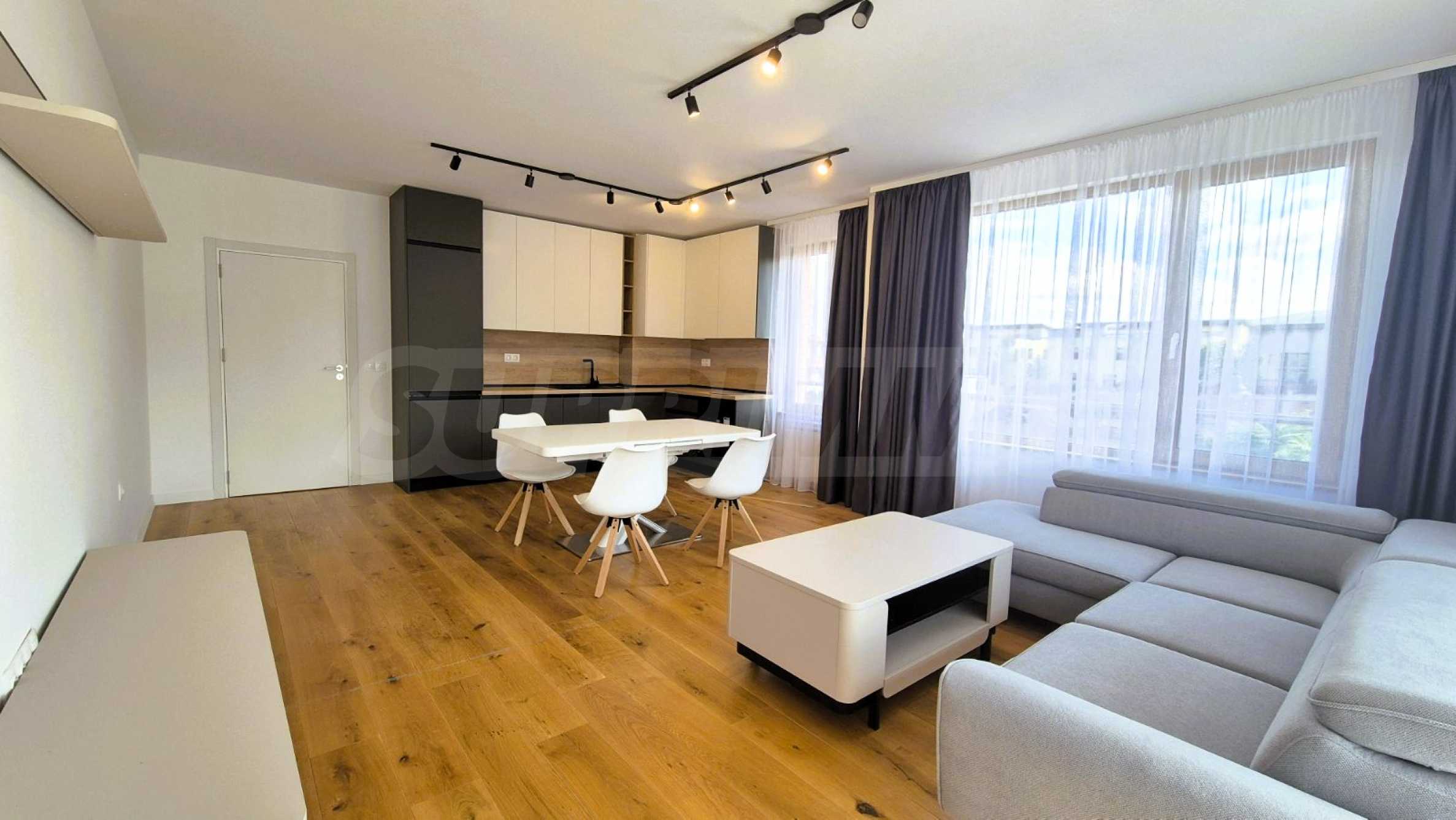 We present a new two-bedroom apartment awaiting its future tenants in Pancharevo, Detski Grad district. The property is located in a modern gated residential complex - "Oasis", distinguished by its clean architecture, rich landscaping, impressive mountain views, access control, video surveillance and recreation areas.
