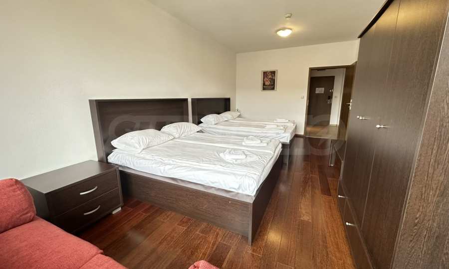 We present an excellent one-bedroom apartment, located in a luxurious gated complex "Bellevue Residence", about 300 m from the starting station of the lift and 800 m from the center of the picturesque town of Bansko.