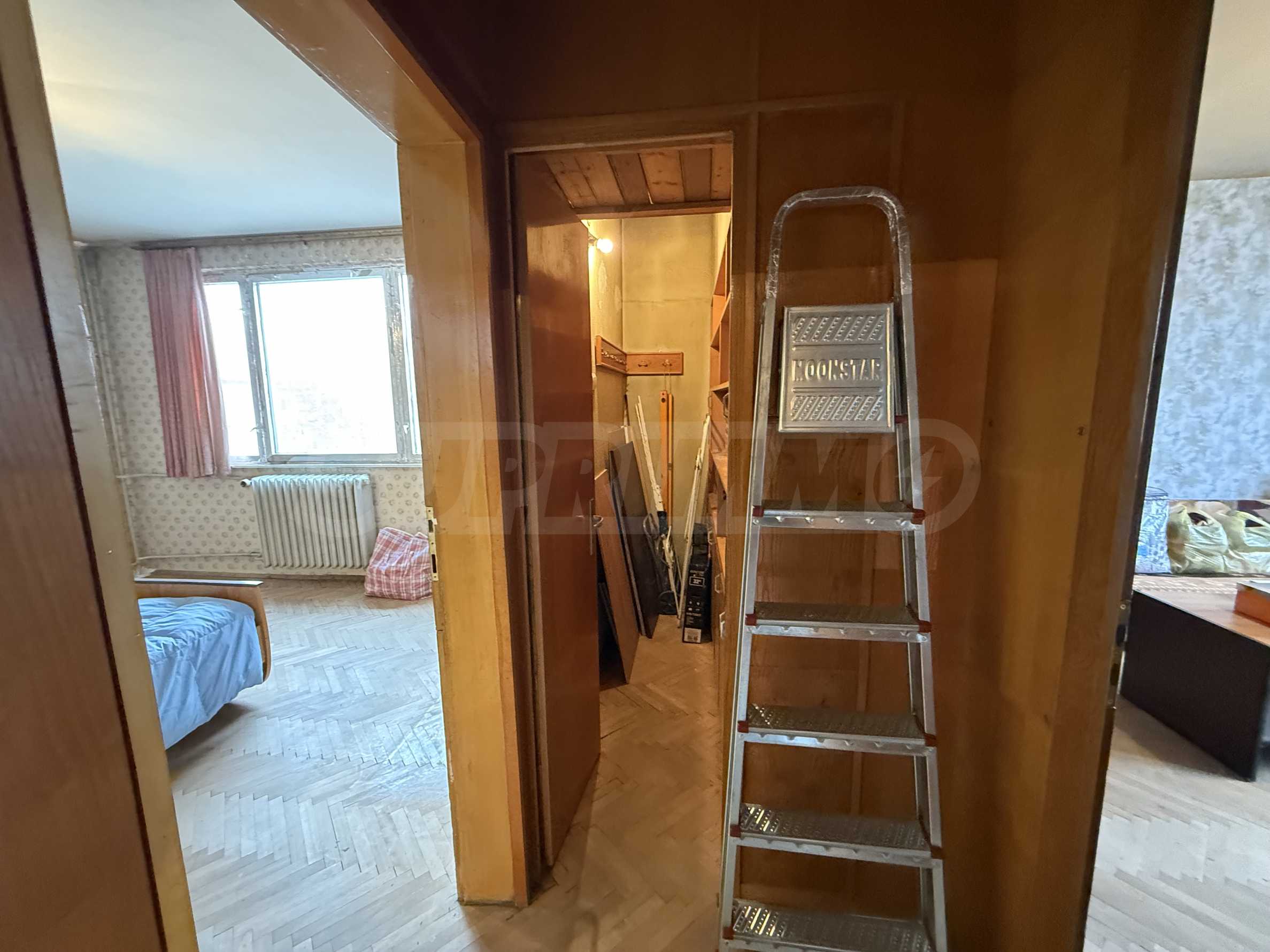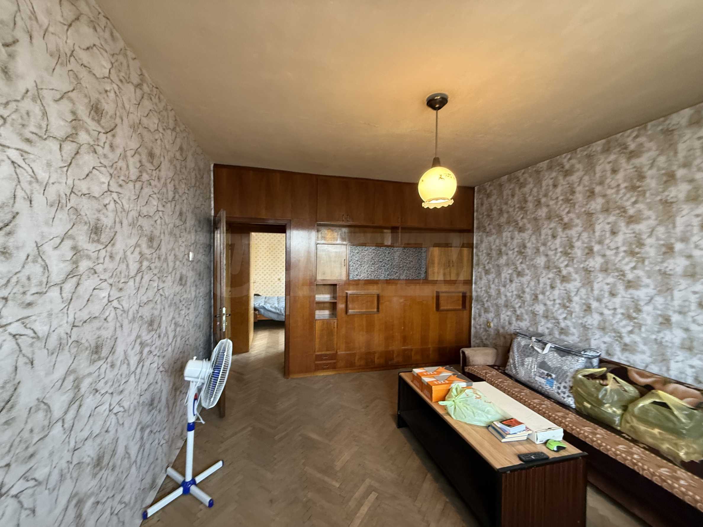 For sale is a two-room apartment with an area of 70 sq m, located on the third floor of five in a monolithic residential building from the 1970s–1980s, located in the central part of Veliko Tarnovo, on Nikola Gabrovski Blvd. The apartment also has a basement with an area of 7 sq m, as well as separate common areas.