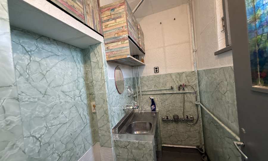 The apartment is facing south, north and east, bright and with a pleasant view. It consists of a bedroom, a living room with a terrace, a small kitchen, a dining room with a terrace, a bathroom and toilet, a closet and a spacious hallway with mosaic flooring. The property is in need of renovation, but is in relatively good condition and offers excellent potential for modern renovation to the taste of the new owners.