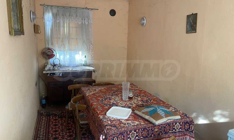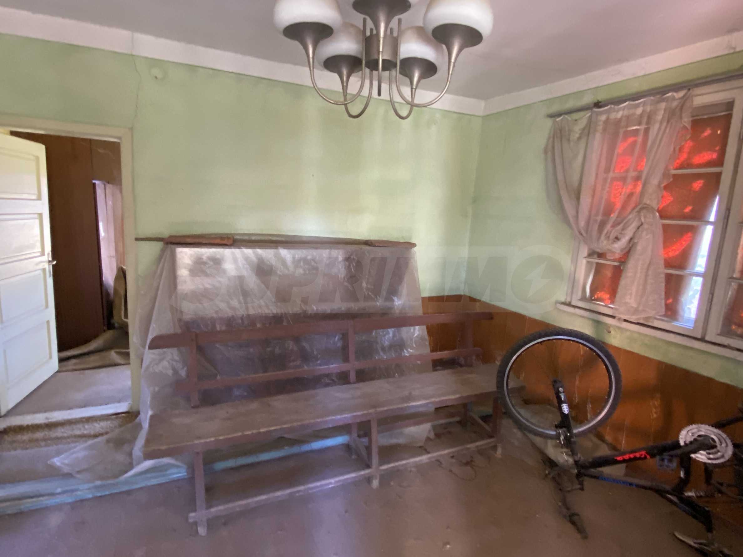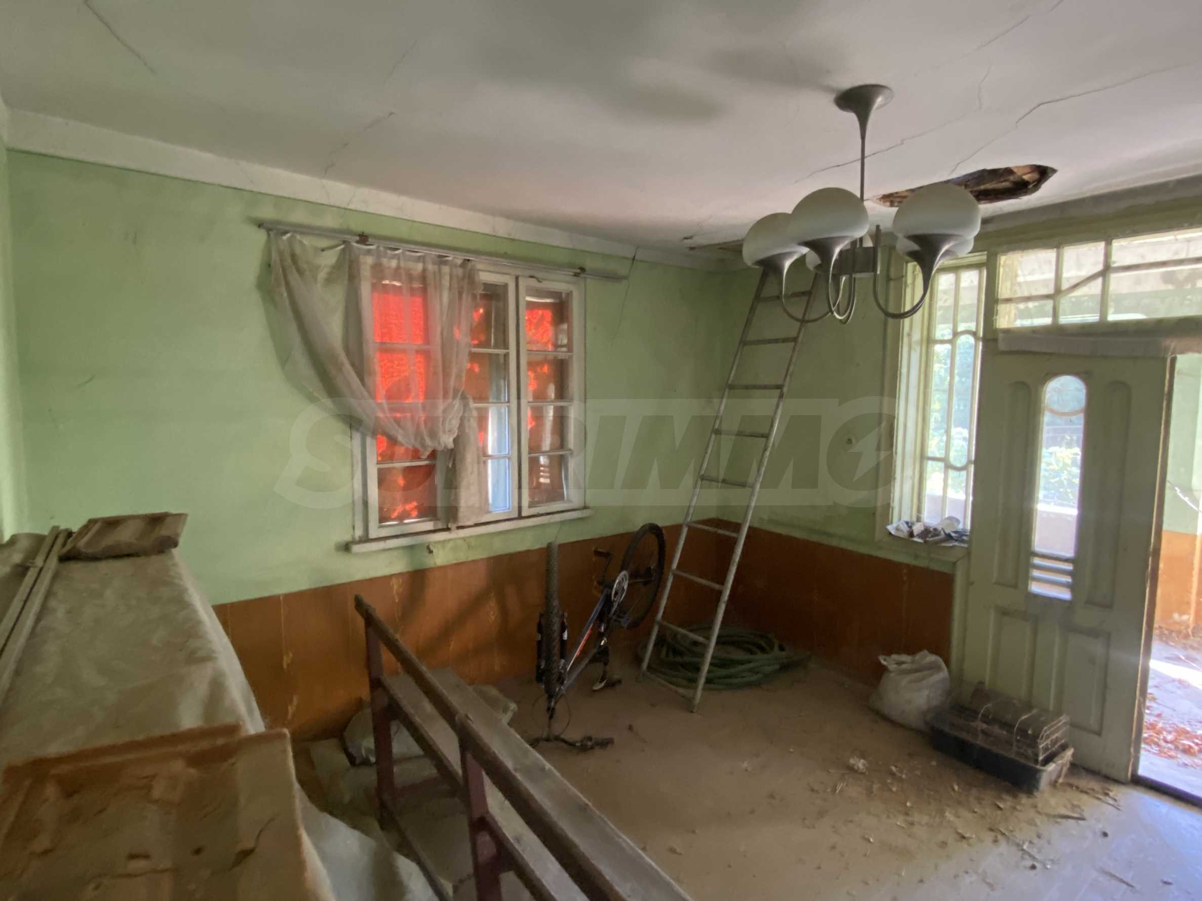 The first property is a 750 sq. m yard containing a 88 sq. m house and a 63 sq. m summer kitchen. The main house's roof has been renovated. The interior layout of the house comprises a lobby and three rooms, making it suitable for living in or for holidays.