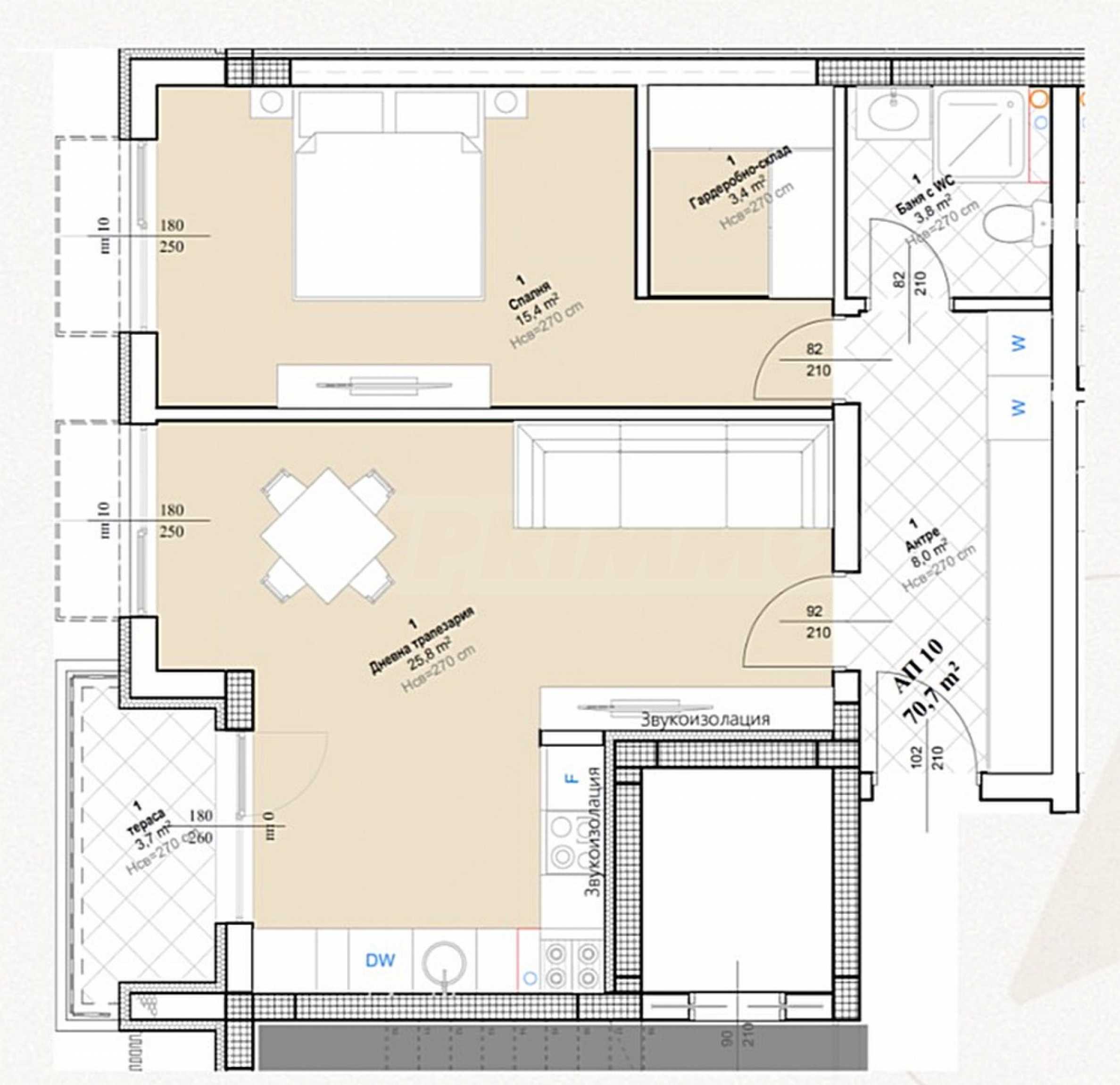 The apartment offers a functional layout and a modern look, an ideal choice for both a home and an investment. It is sold in a state of completion according to Bulgarian Construction Standards, with plaster and screed.