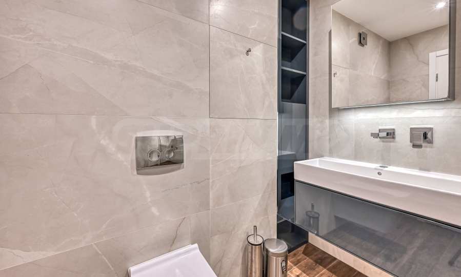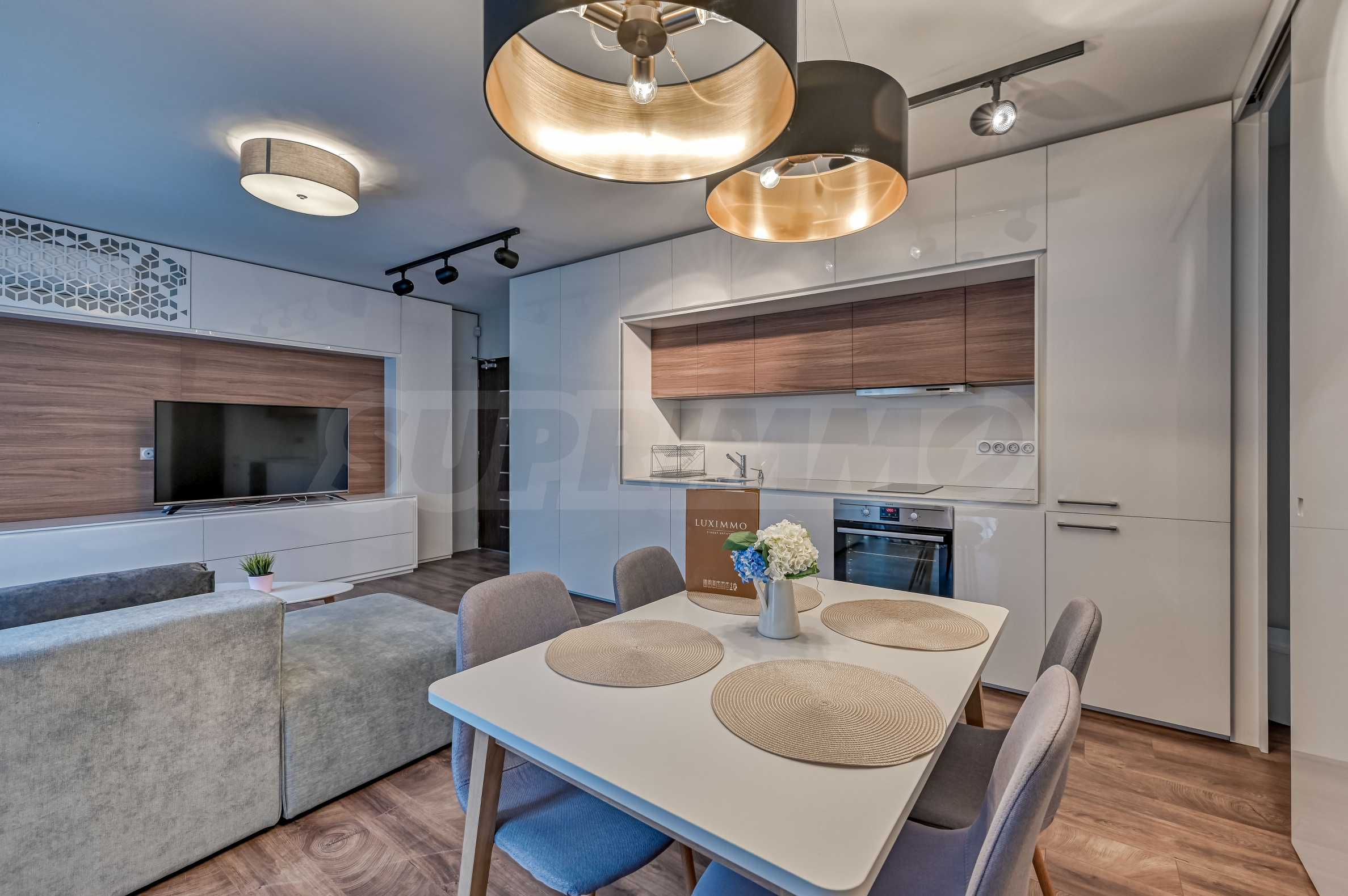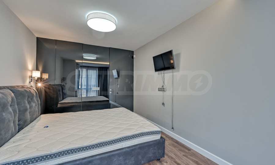 The apartment impresses with its light and excellent functional layout. The living area is the natural center of the home - a place for meetings, cozy evenings and shared moments. The modern kitchenette is fully equipped with high-end appliances - built-in oven, kitchen countertop, dishwasher, refrigerator with freezer, combined washer with dryer, ensuring practicality in everyday life.