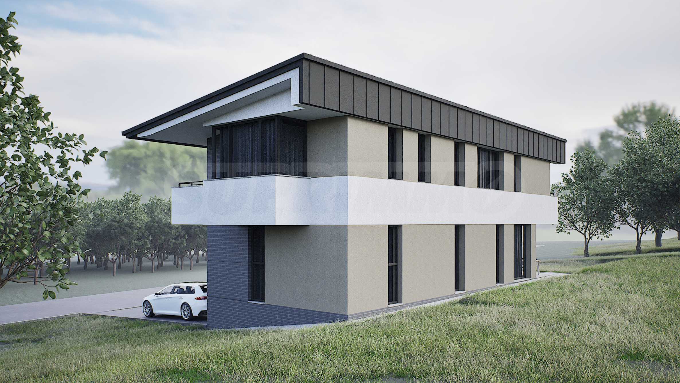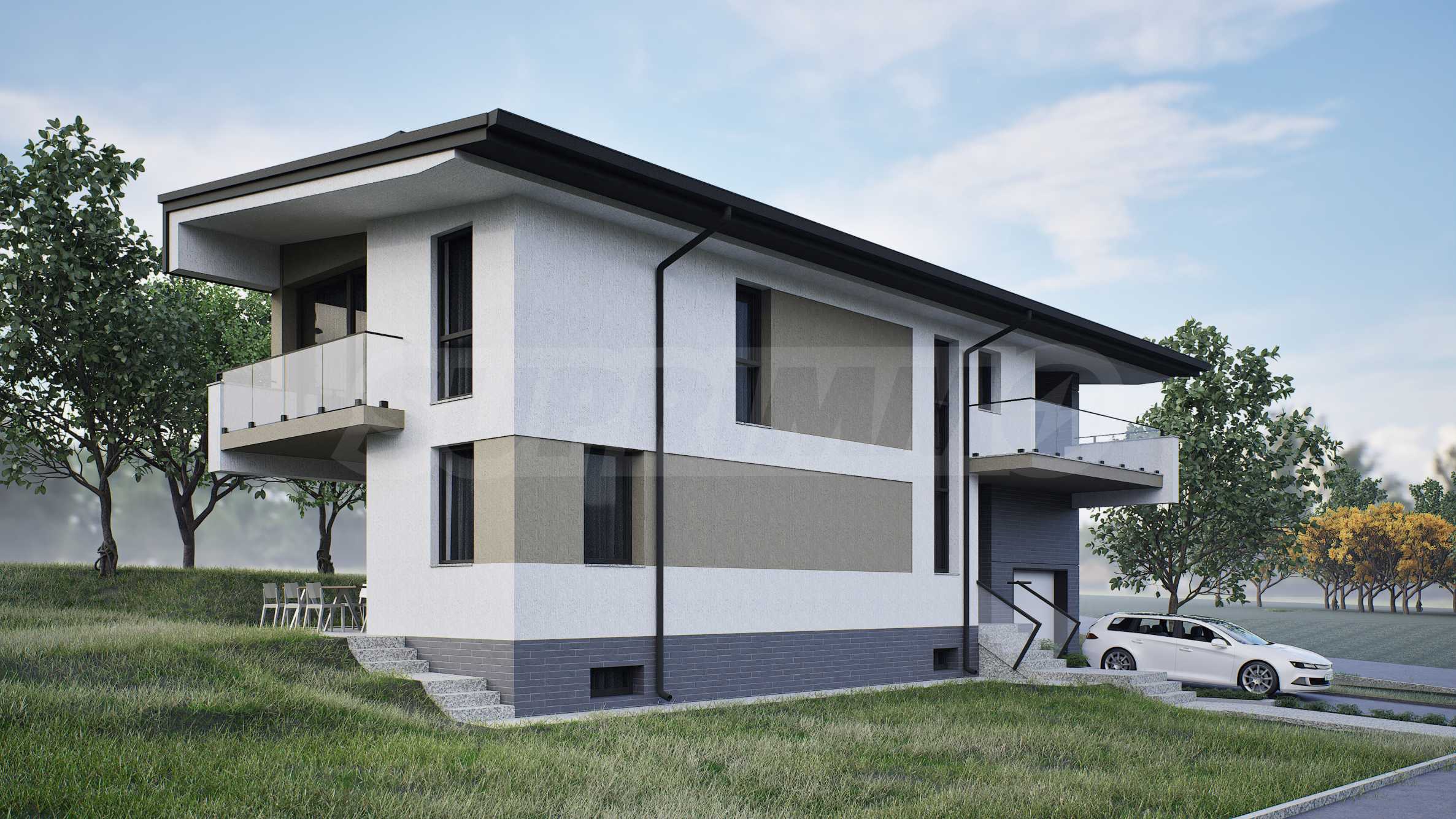 Designed with attention to detail, the houses offer functional layouts with spacious living areas and excellent lighting. The silhouette of each building is emphasized by a single-pitched roof with deep eaves, which not only enhances the visual character, but also has a practical role in protecting against weather influences. The layout of the houses is oriented to take advantage of the unique panoramic views of Plovdiv to the north and the Rhodope Mountains to the south, while preserving the natural relief and spirit of the area.