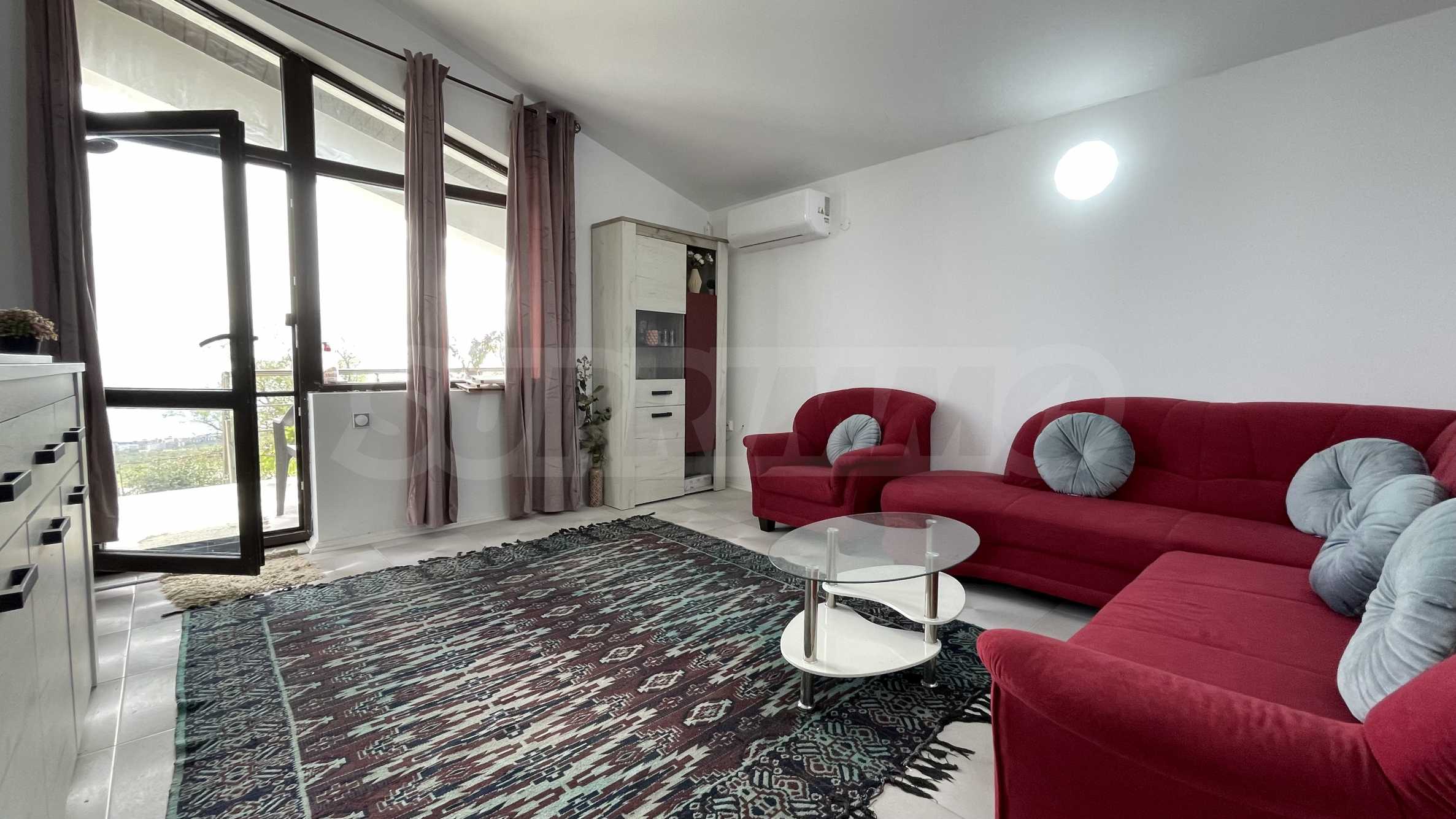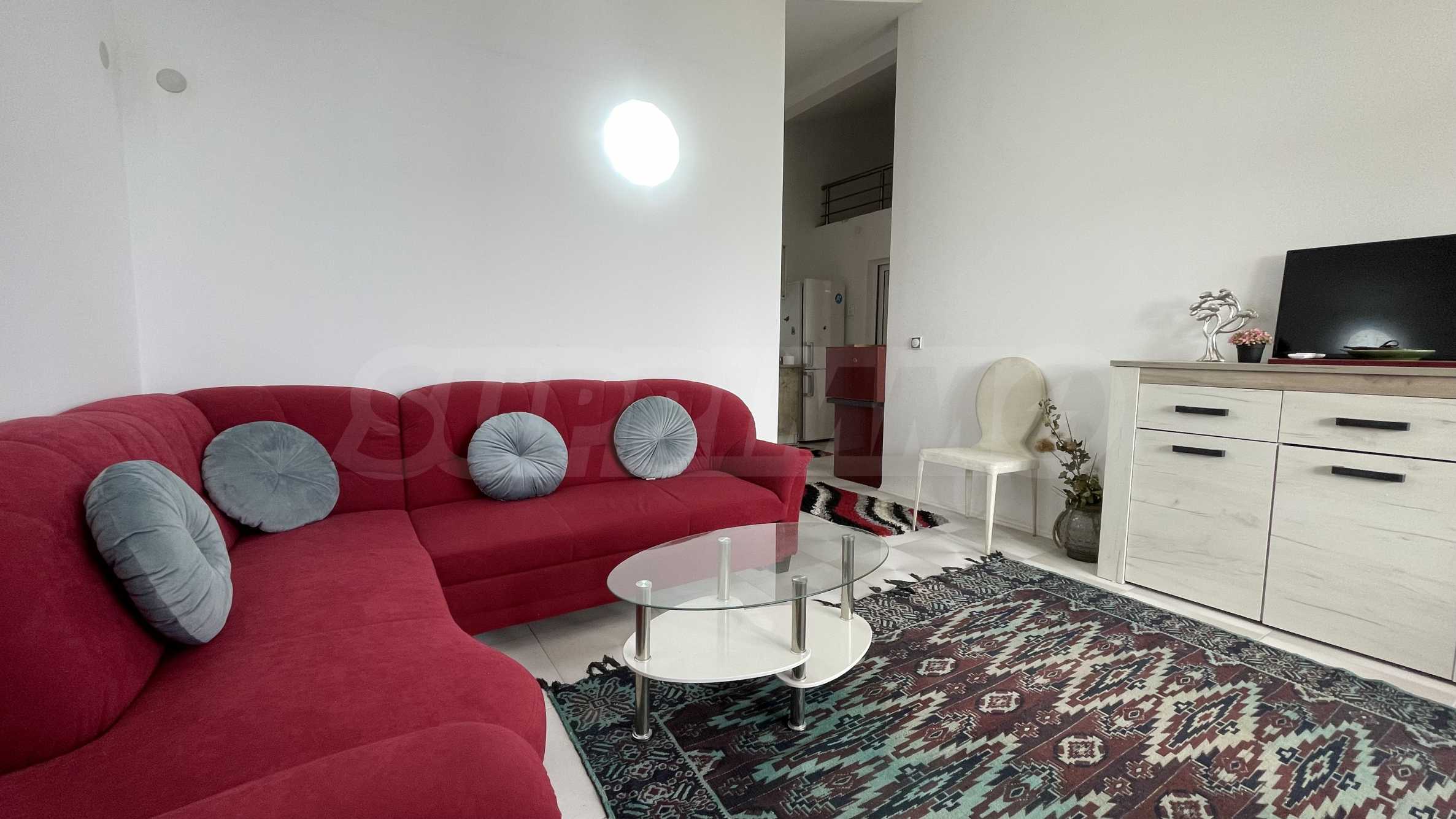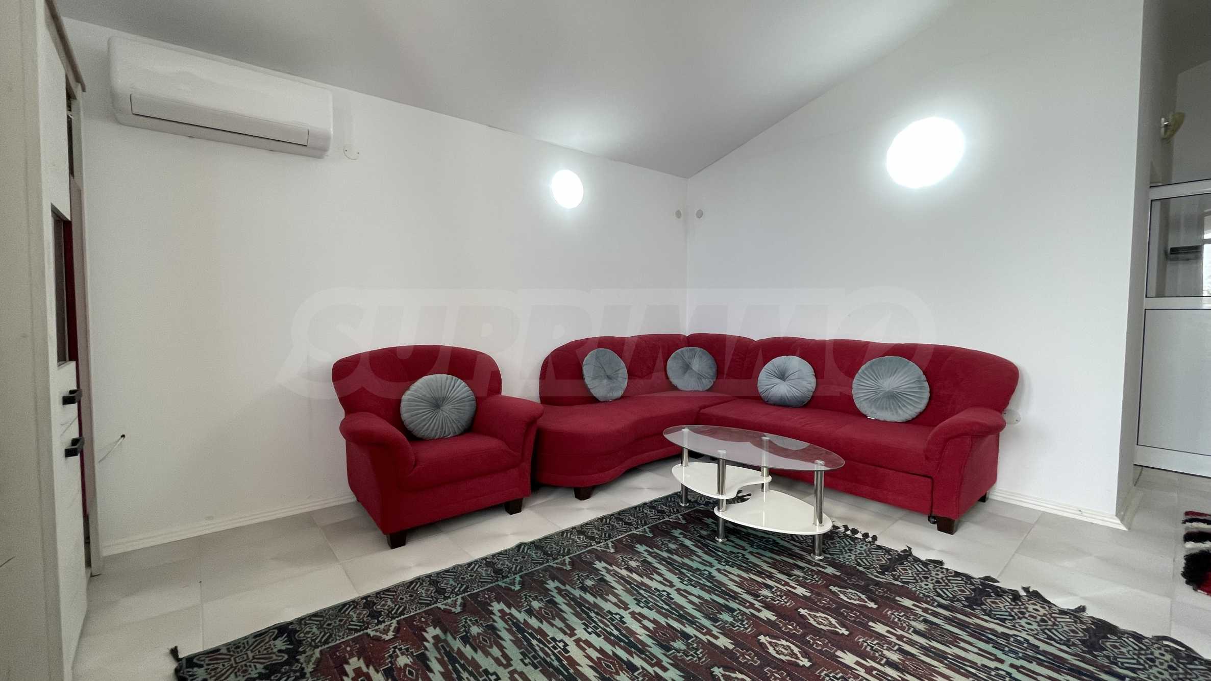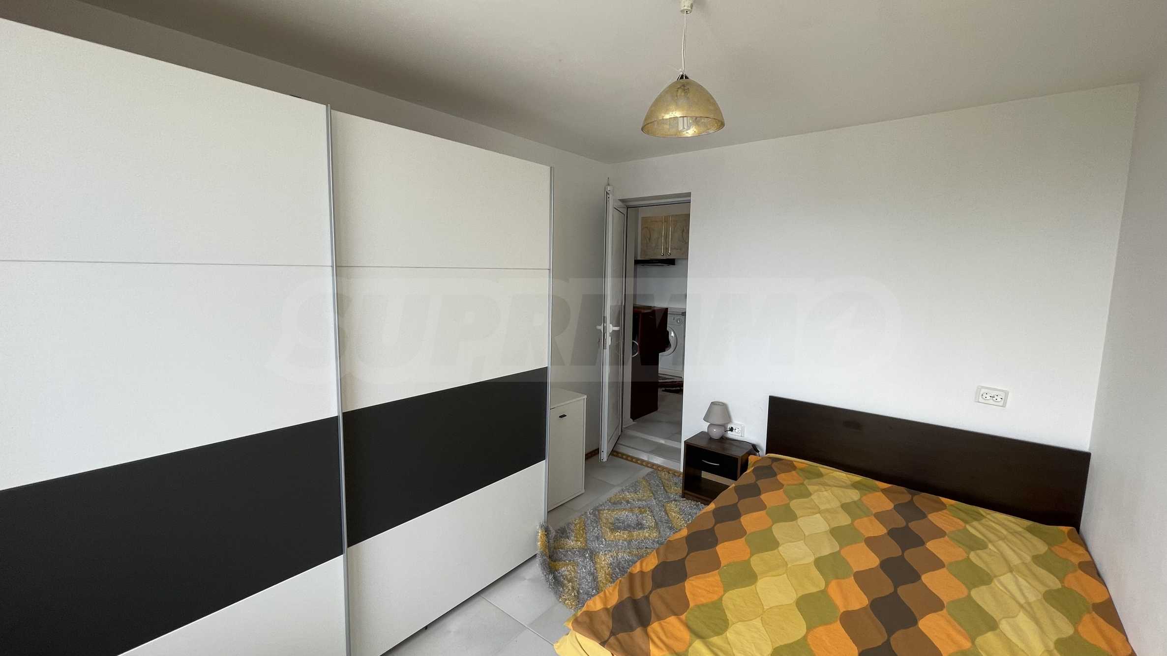 The apartment is fully furnished and equipped with everything necessary for living, such as furniture and electrical appliances.