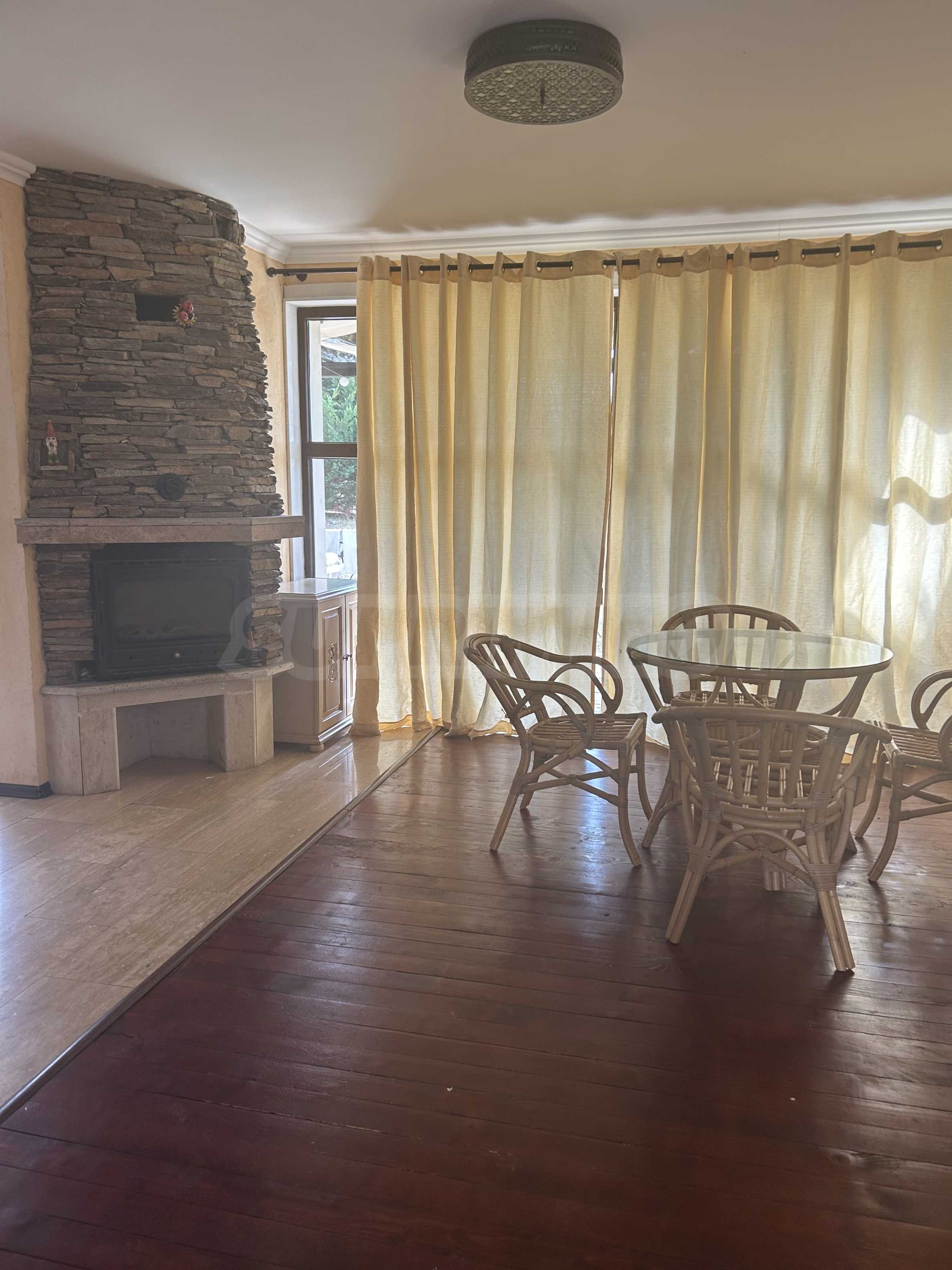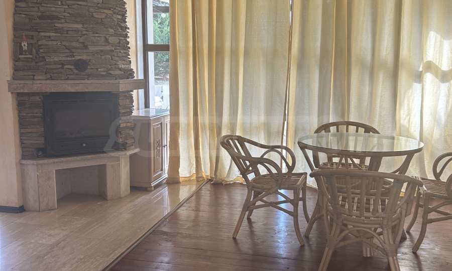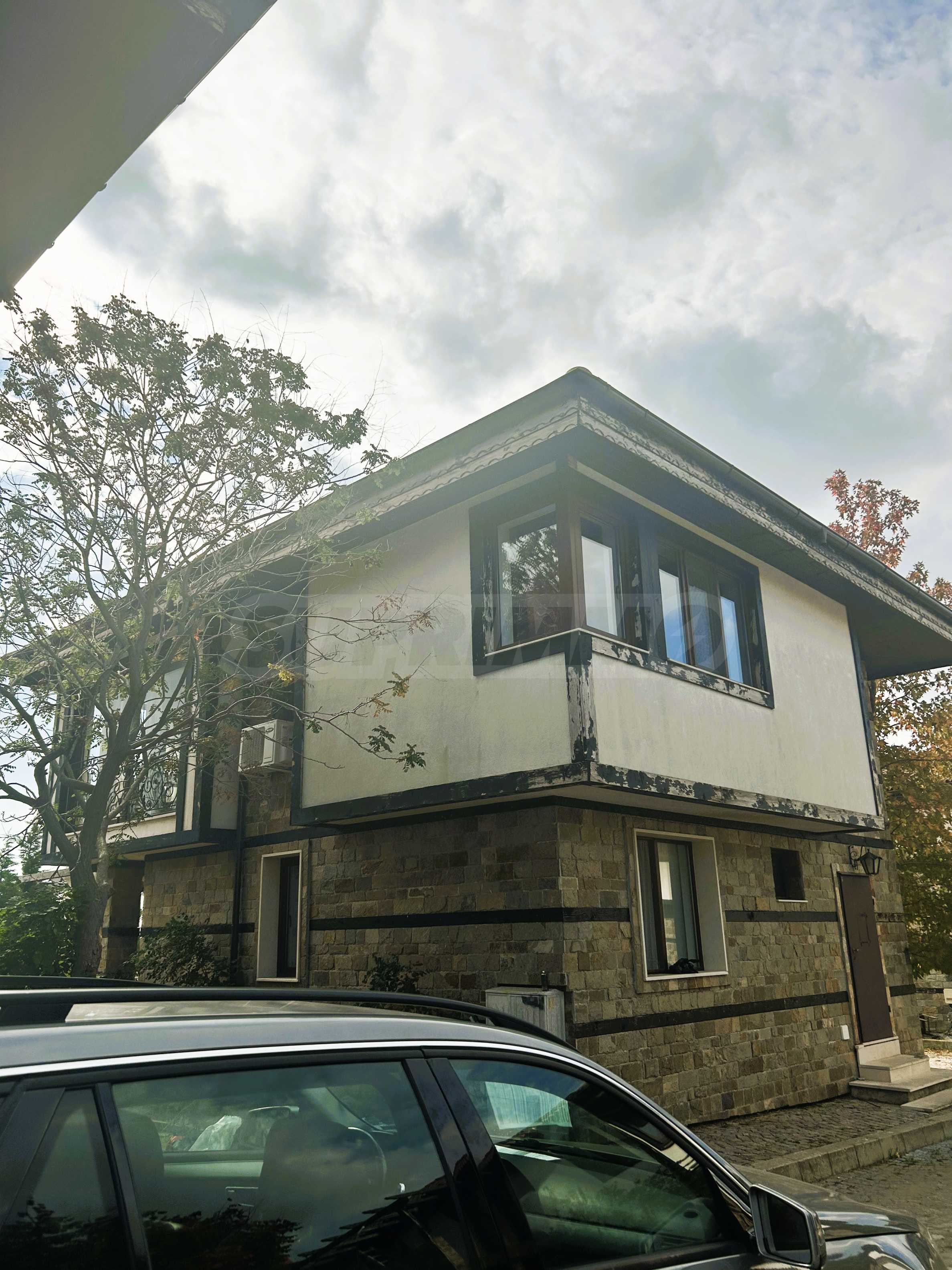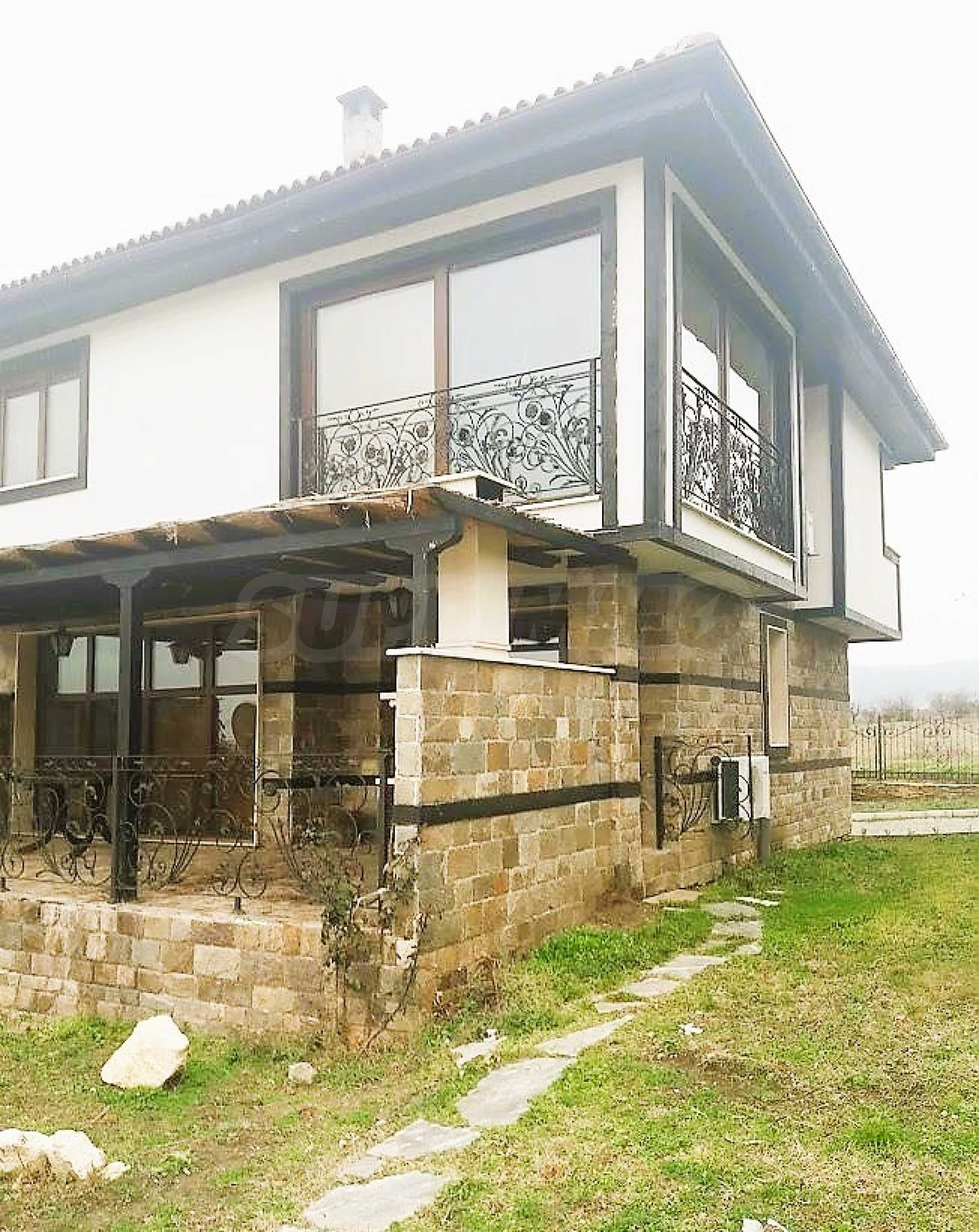We present for sale a two-story house in the Bulgarian Renaissance style, built of stone and wood, in a gated complex of villas in the villa area of Kosharitsa. Situated among the greenery of an ecologically clean area, next to the hills of the Stara Planina Mountain, 10 minutes by car from the beaches of Sunny Beach.