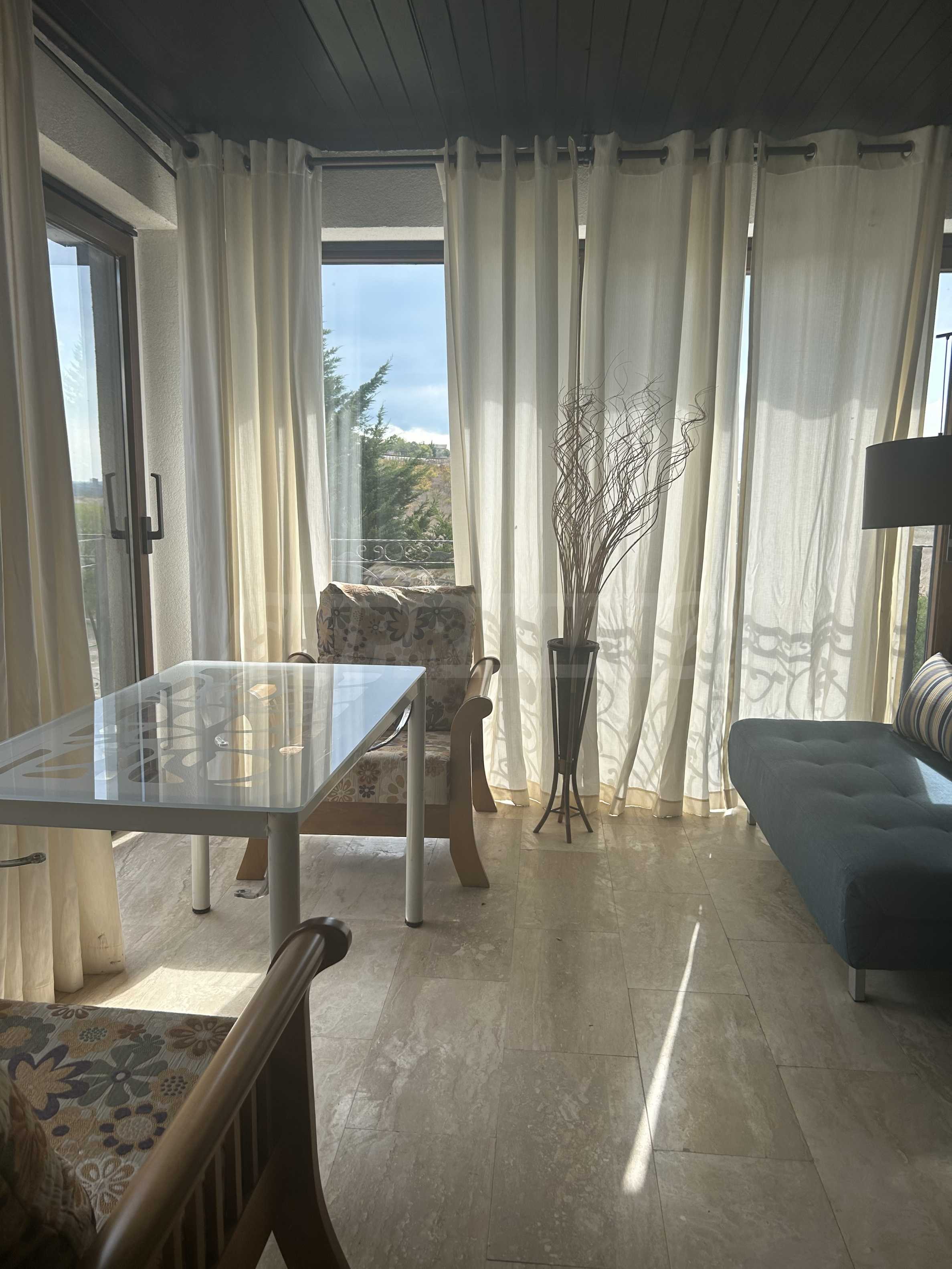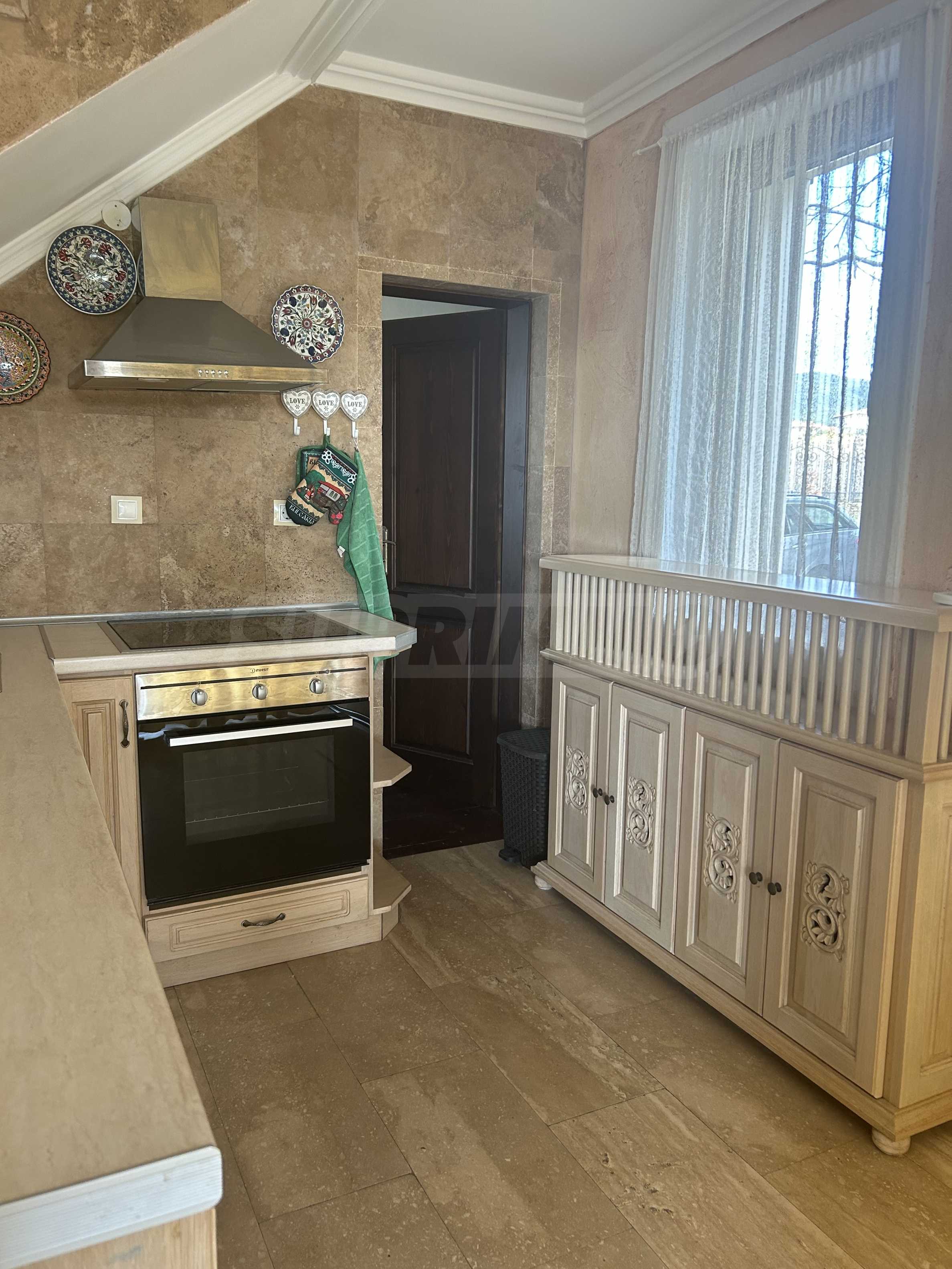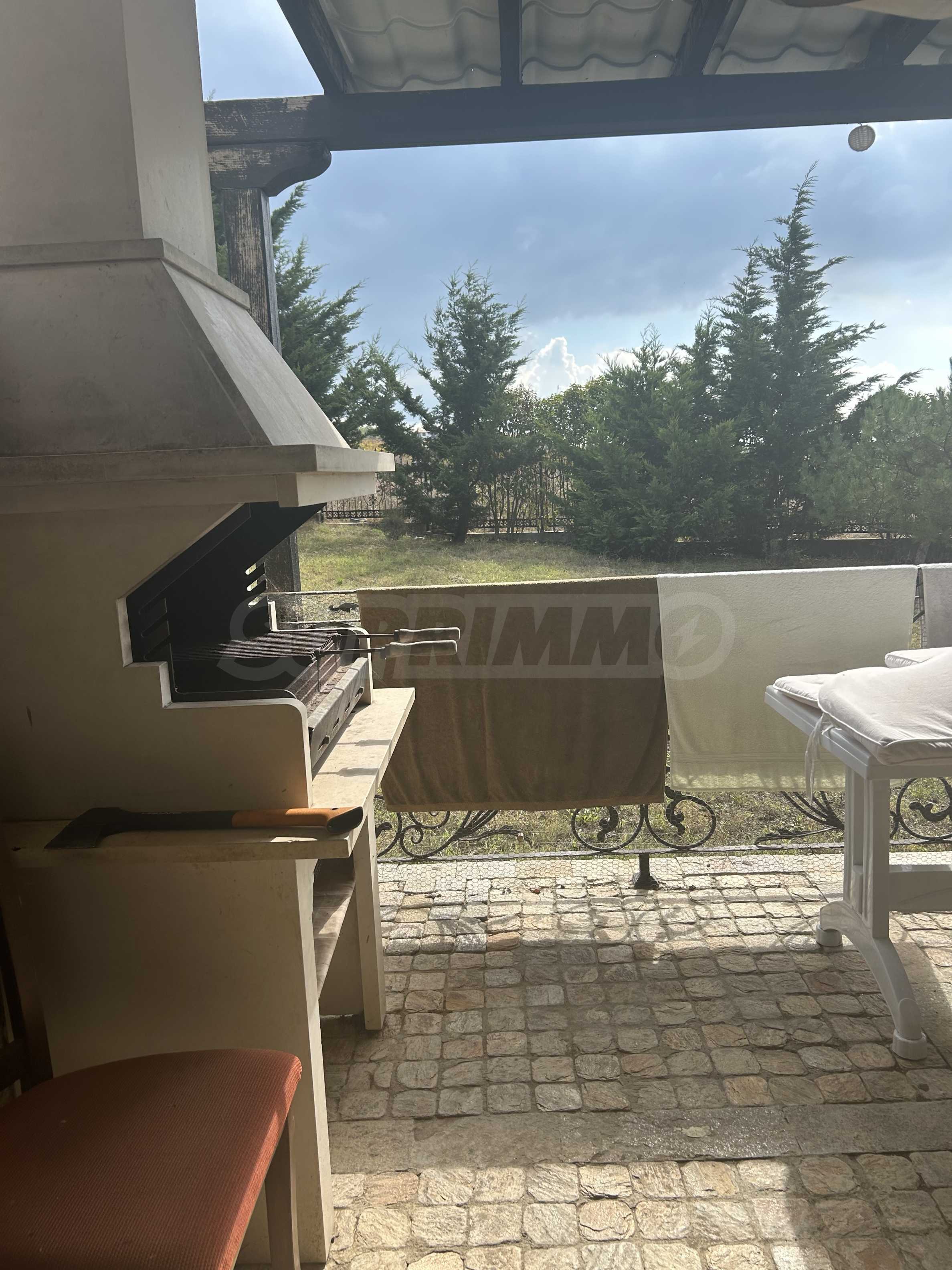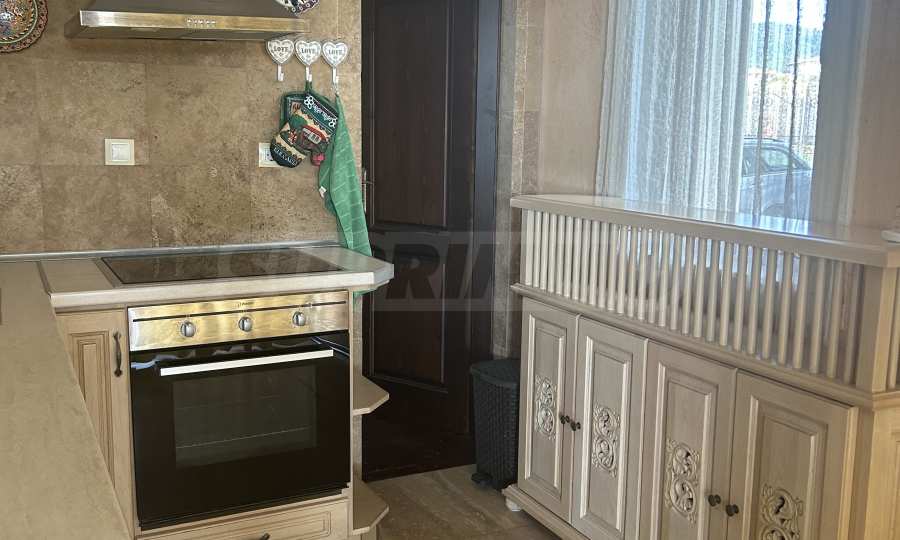 We present for sale a two-story house in the Bulgarian Renaissance style, built of stone and wood, in a gated complex of villas in the villa area of Kosharitsa. Situated among the greenery of an ecologically clean area, next to the hills of the Stara Planina Mountain, 10 minutes by car from the beaches of Sunny Beach.