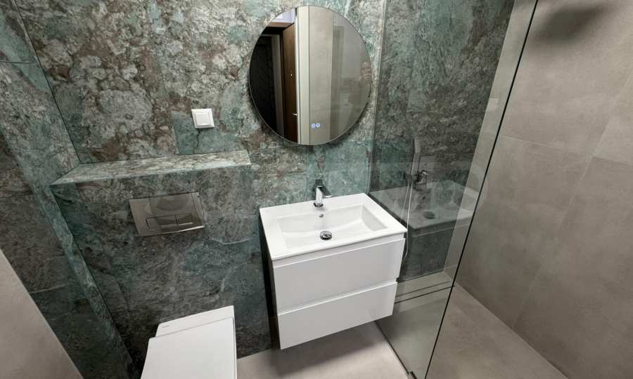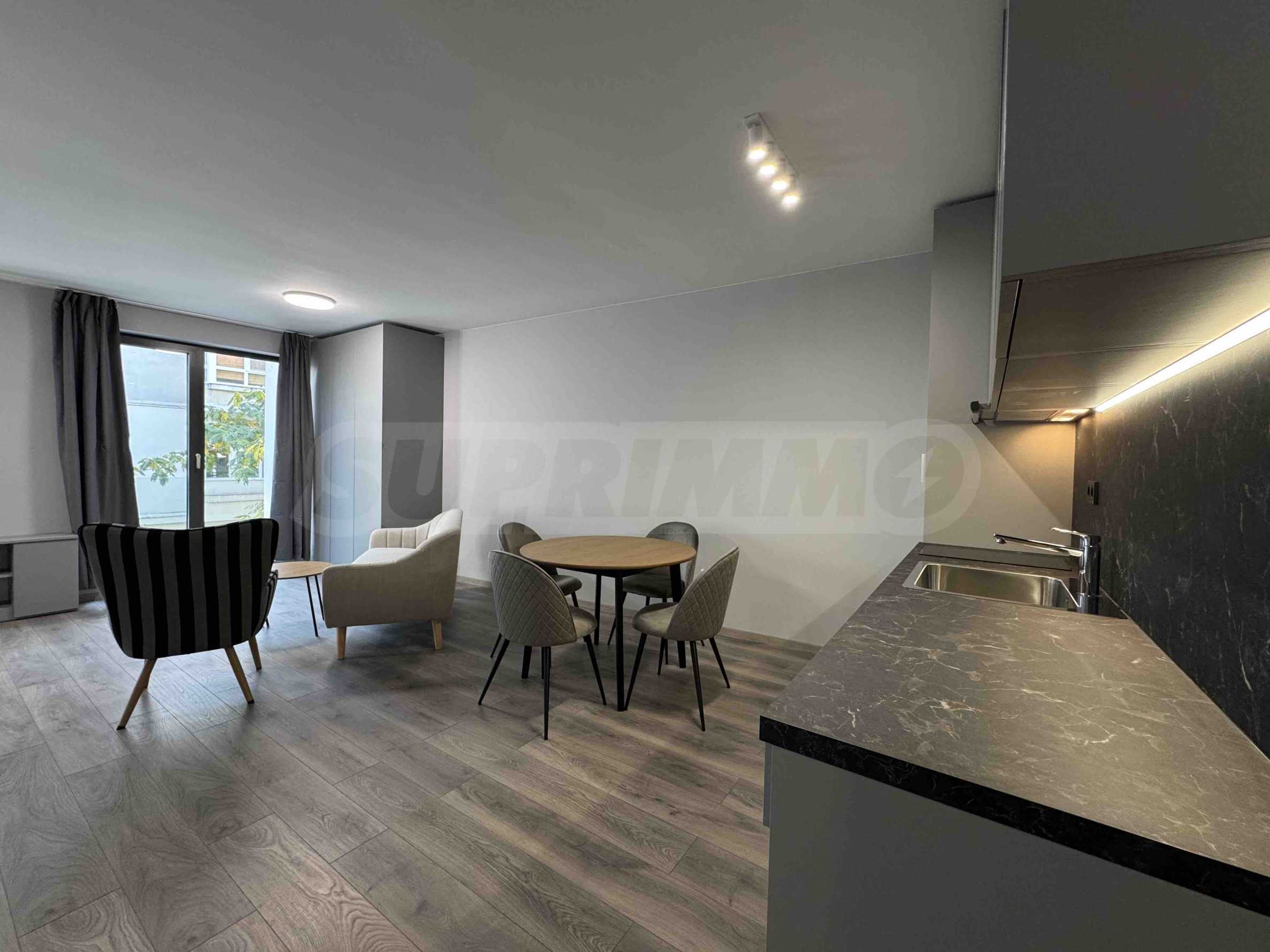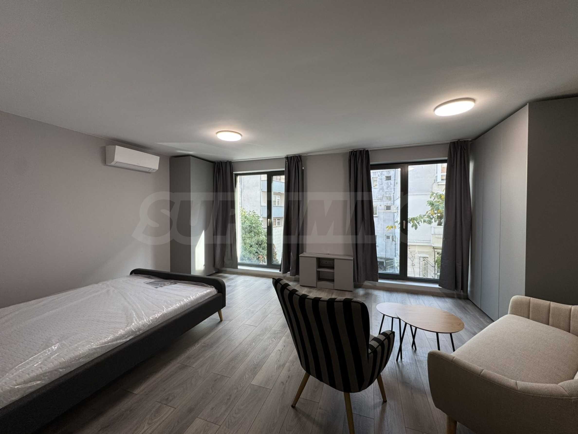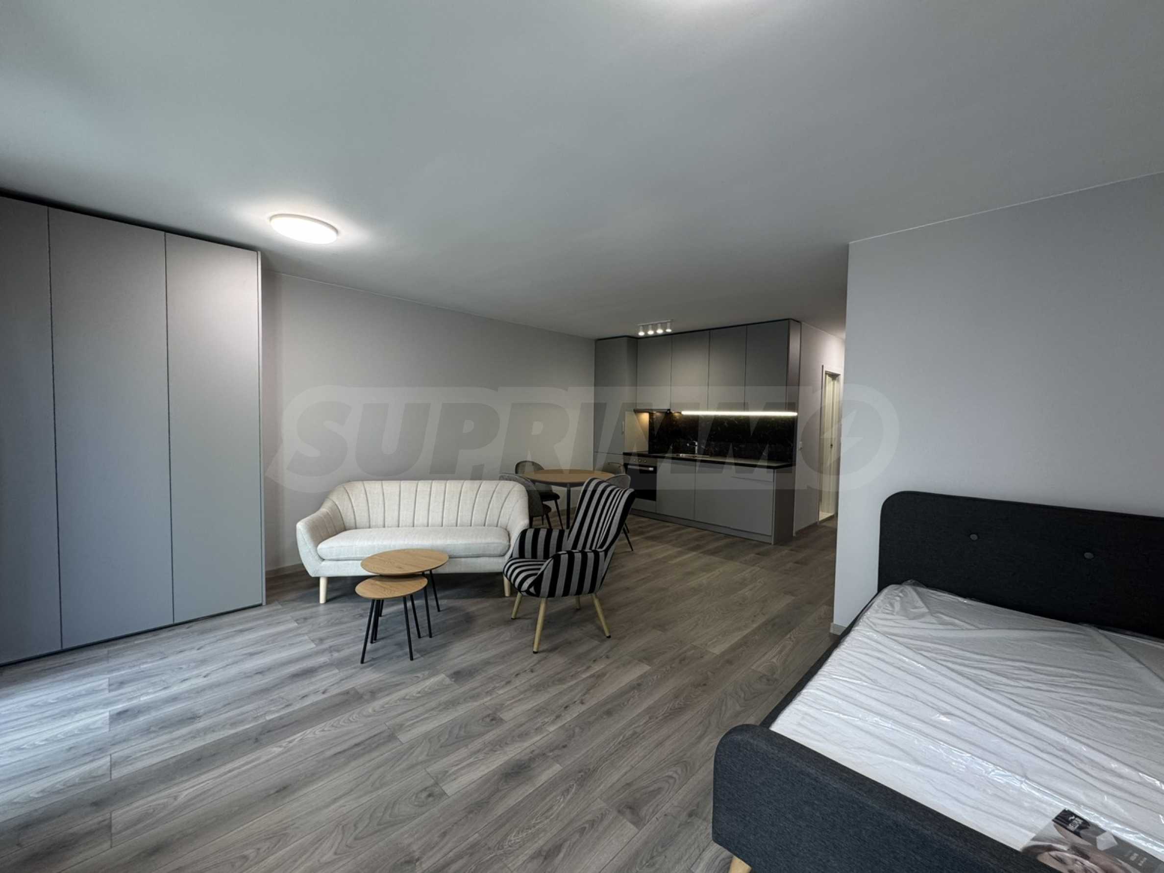We present for rent a studio in a new building with partial sea views, in the "Greek Mahala" district. Convenient location within walking distance of the ideal center, on the second line from the sea port with many restaurants, the Sea Garden and the sea.