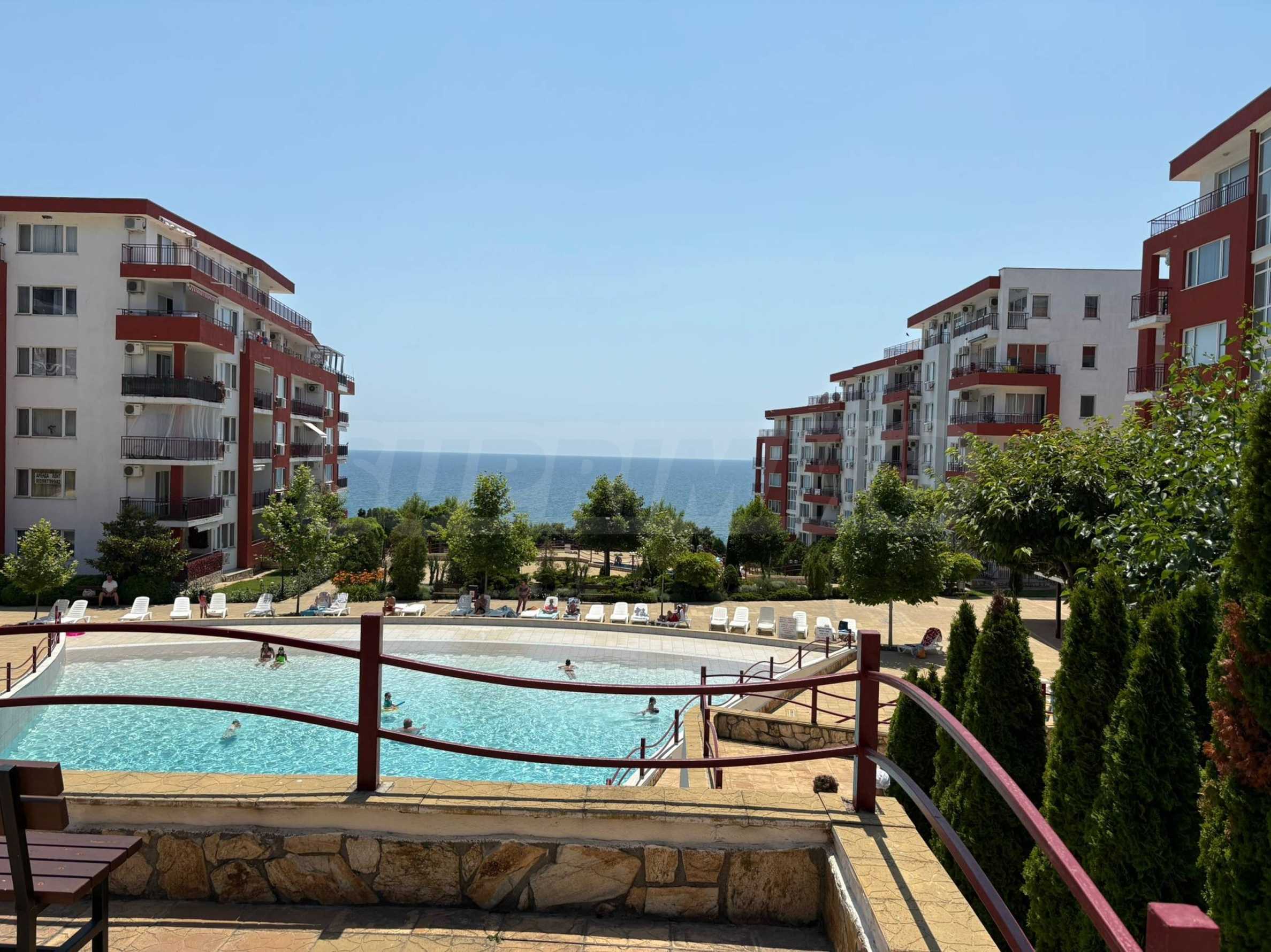 The complex is located in an ecological area, on one side is the sea, and on the other side is the Balkan Mountains. The clean air, the preserved nature, the entirely southern exposure, the calm bay guarantee the perfect summer vacation. The complex consists of 5 and 6-story blocks with elevators. The terrain on which the apartments are located has an area of 48 acres. Green areas occupy 55% of this area.