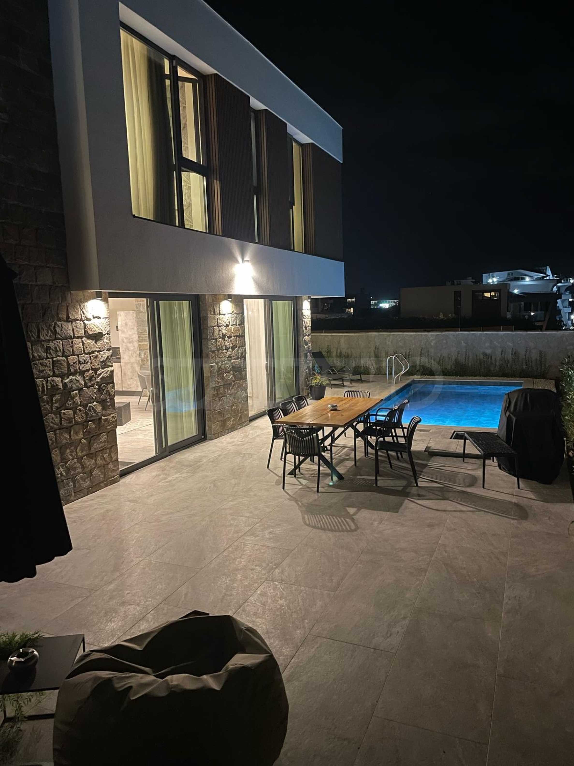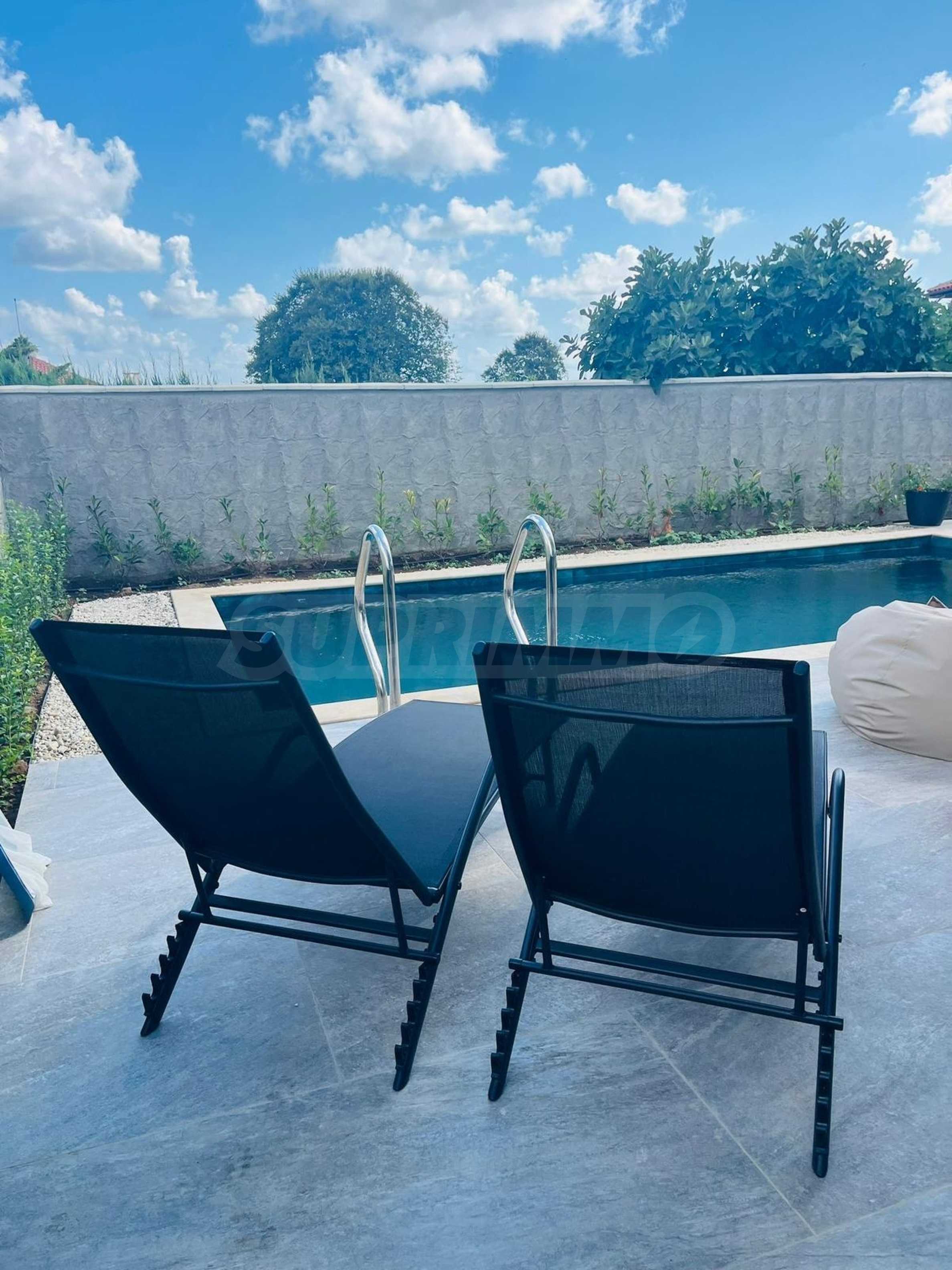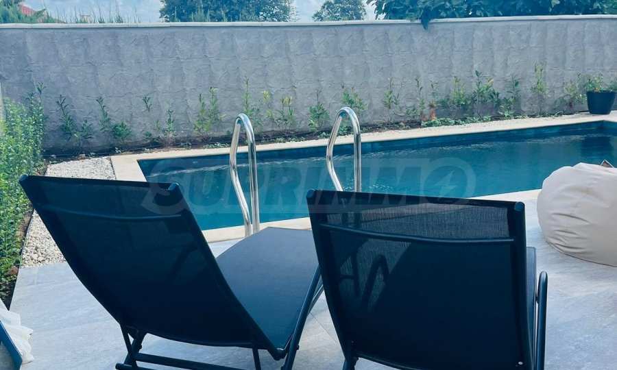 We present a two-story, furnished house with a swimming pool and parking spaces for sale in the village of Lozenets. The house is located in the Tarfa area, within walking distance of the beach and the amenities of the resort. It is offered fully finished "turnkey" and furnished, ready to move in or for rent.