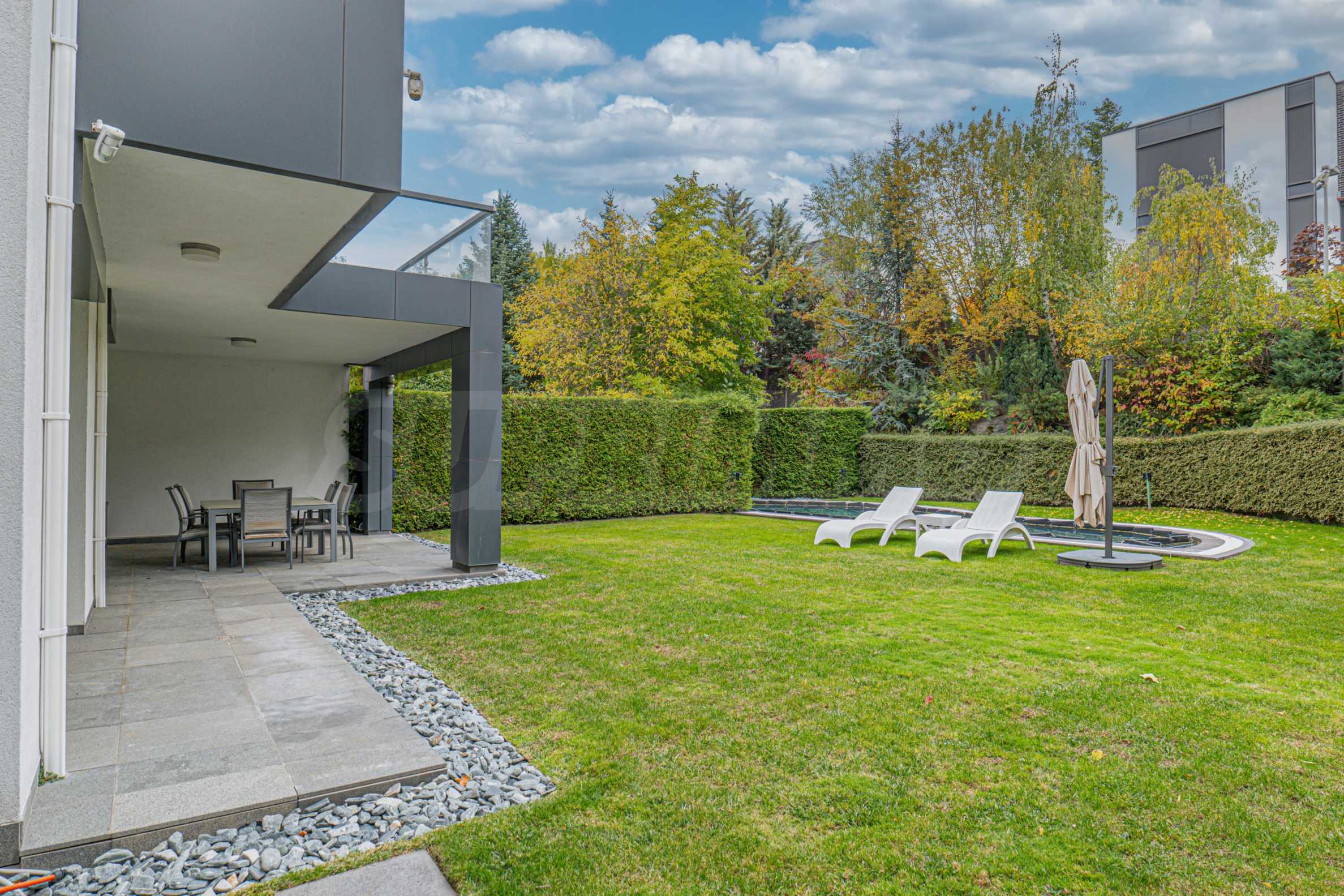The plot is independent, with an area of 718 sq m, with very well-maintained landscaping and an outdoor, heated swimming pool. All rooms are oriented to the south, with French windows for maximum sunlight.