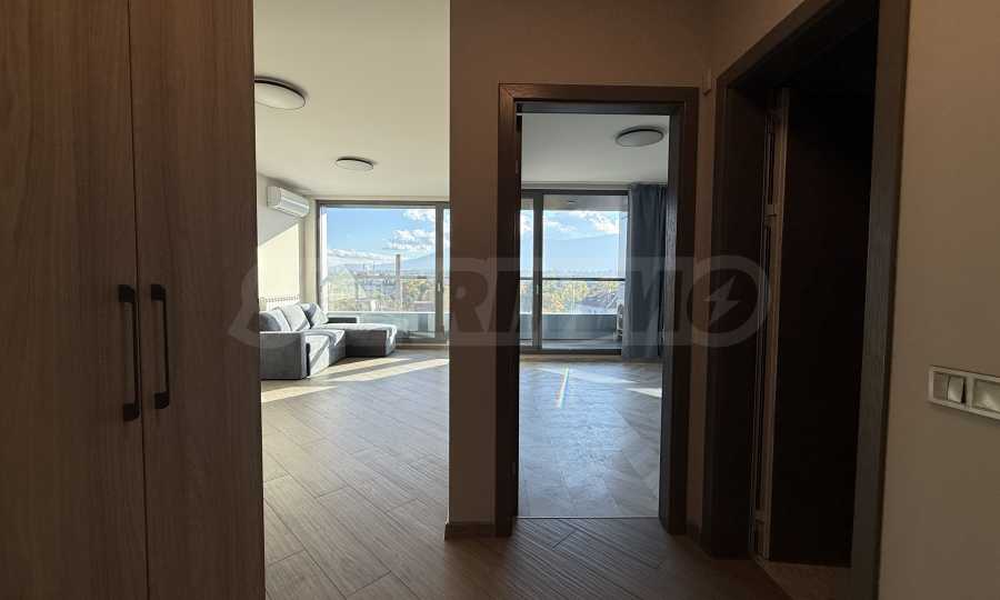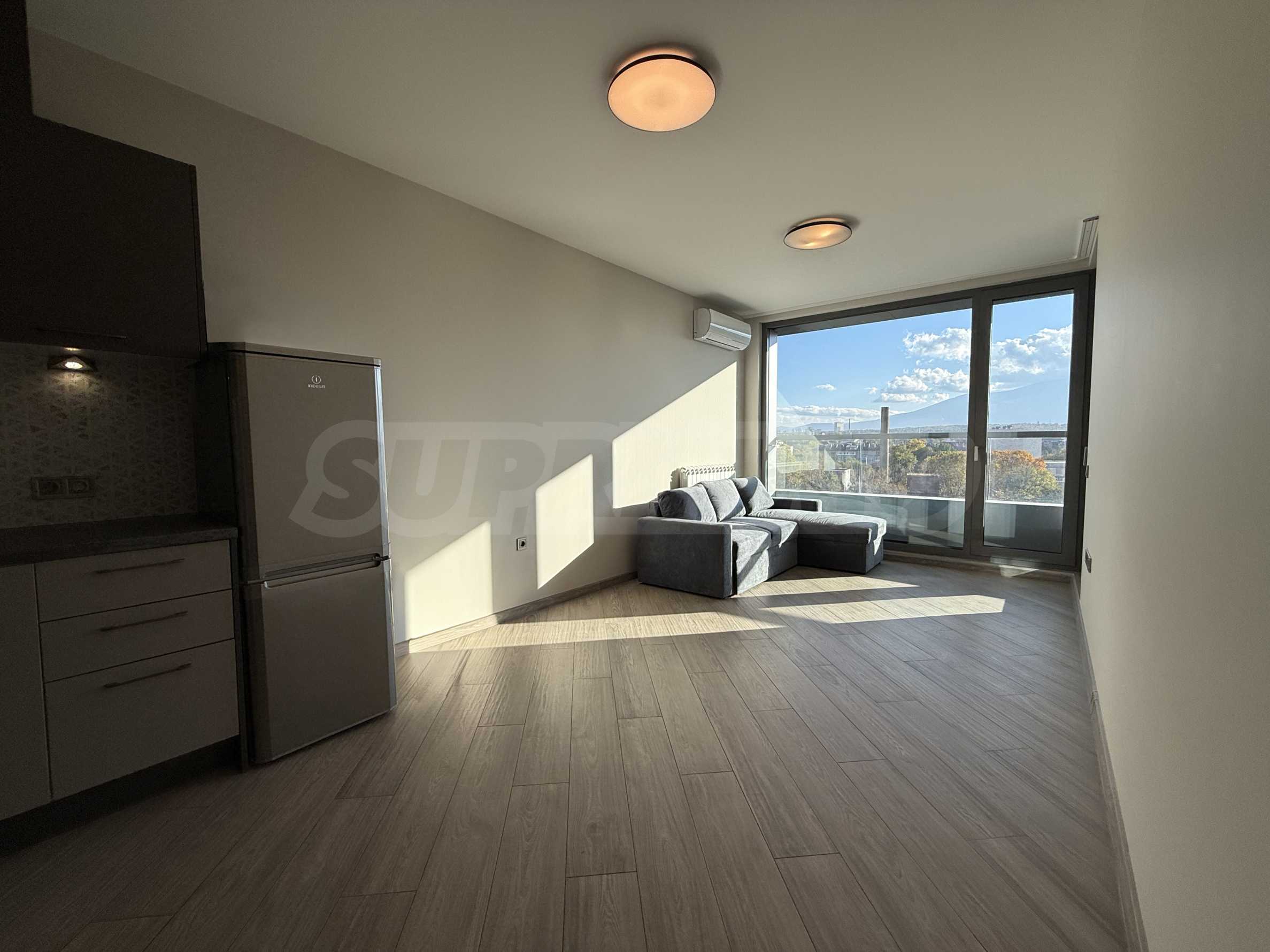 We present a bright one-bedroom apartment for rent in the Infinity Park building, offering panoramic views of Zaimov Park and Vitosha Mountain.