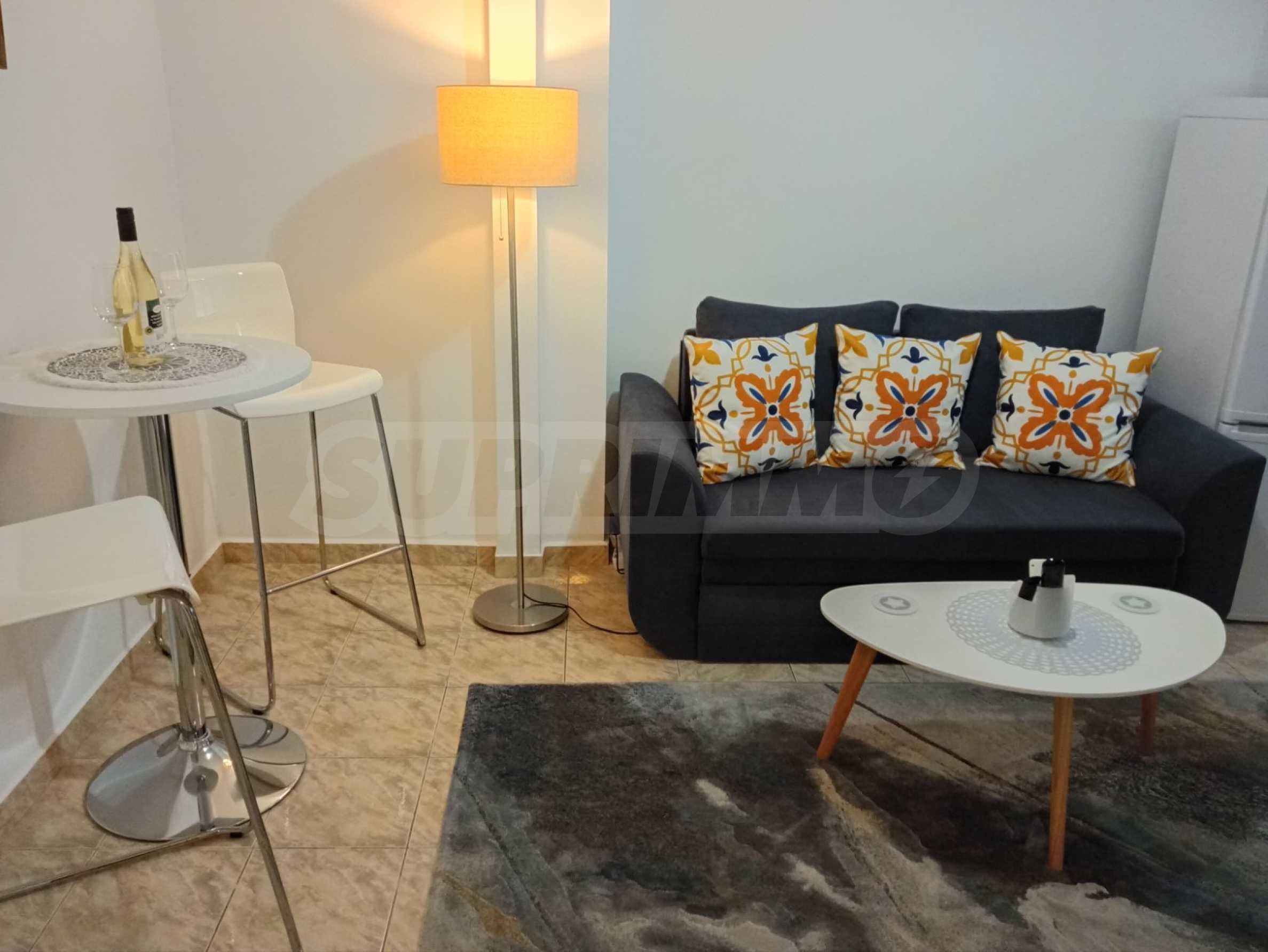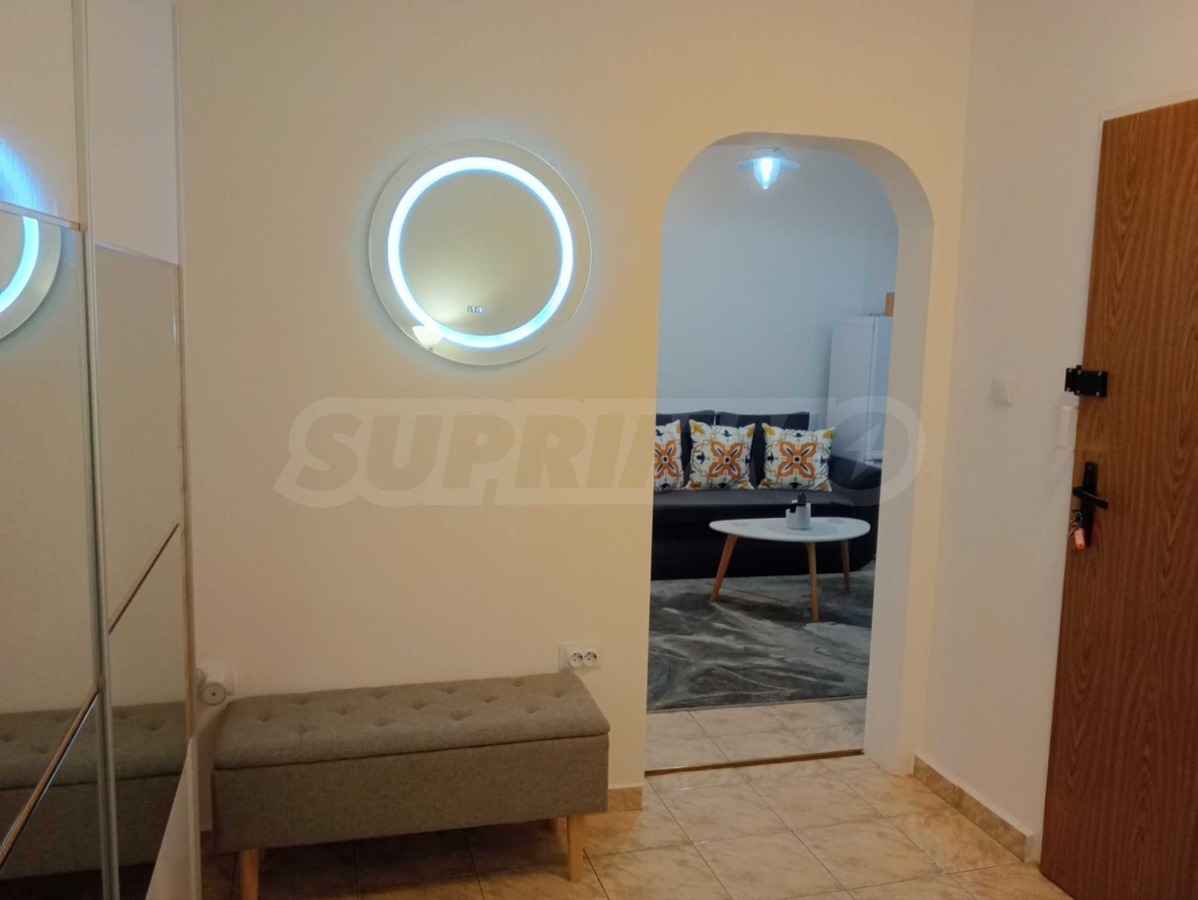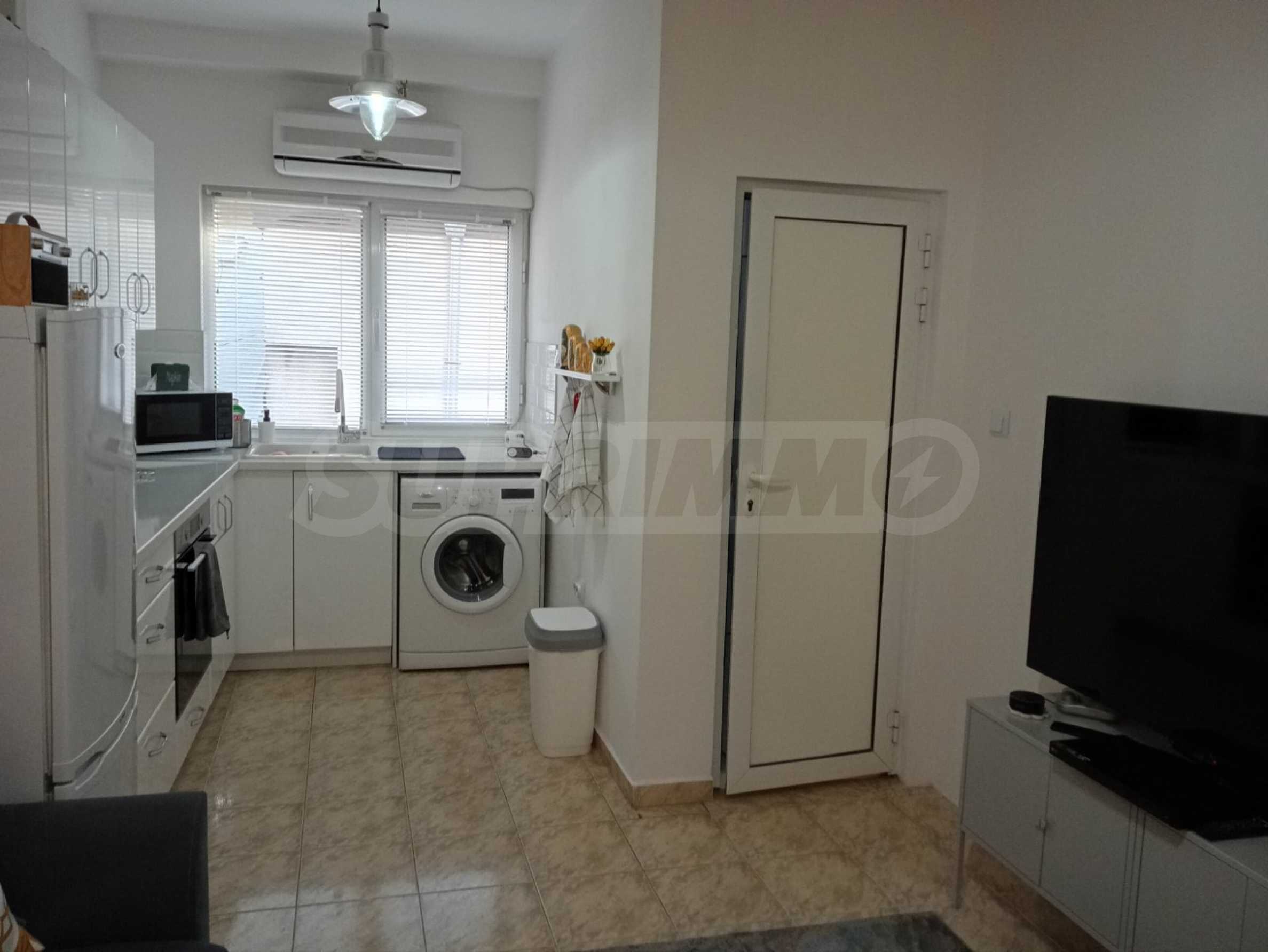 The apartment is fully furnished and equipped with everything necessary for comfortable living - a modern kitchen with appliances, air conditioning, TV, washing machine, upholstered furniture and wardrobes.