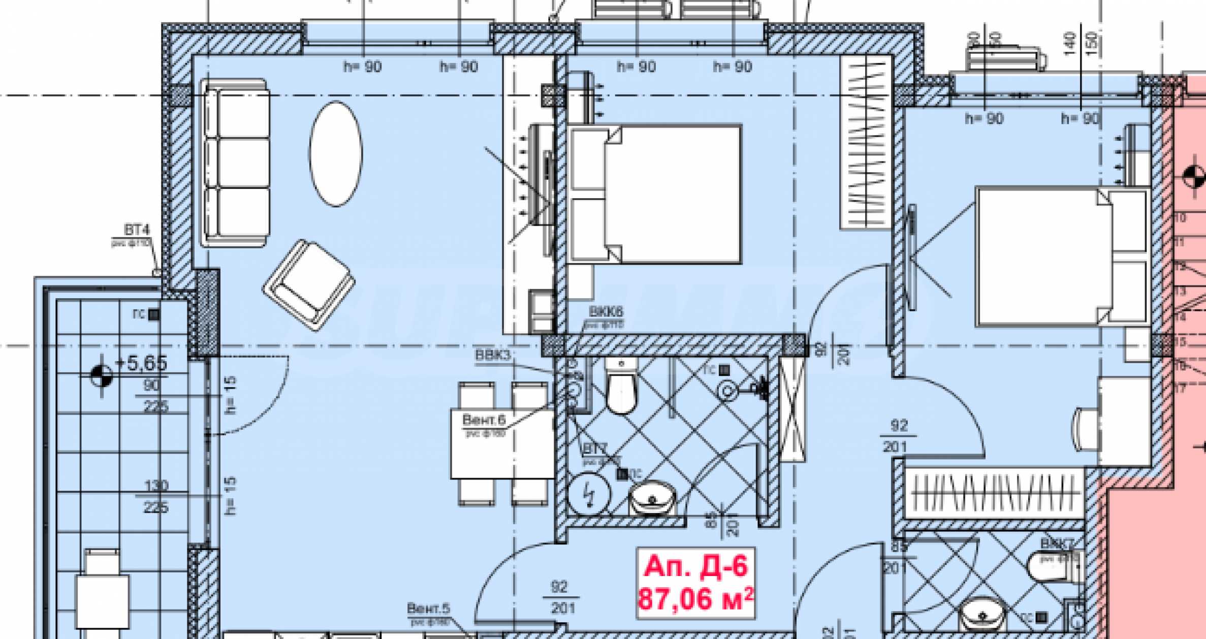 • fully equipped bathrooms with tiles and sanitary ware;