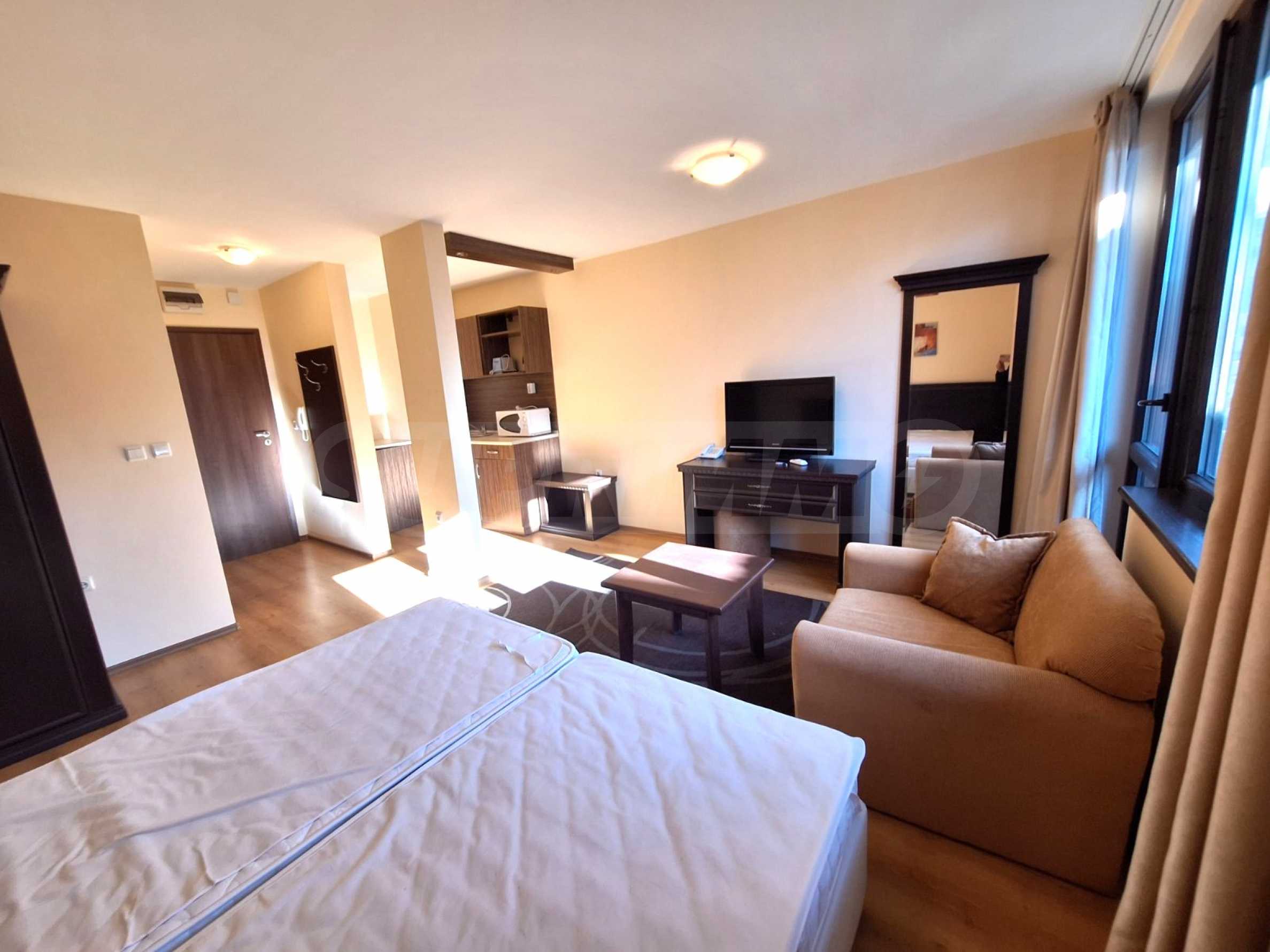 Luxuriously furnished studio in a hotel complex located at the foot of Pirin Mountain, just a few minutes from the gondola lift and the ski slopes of Bansko.