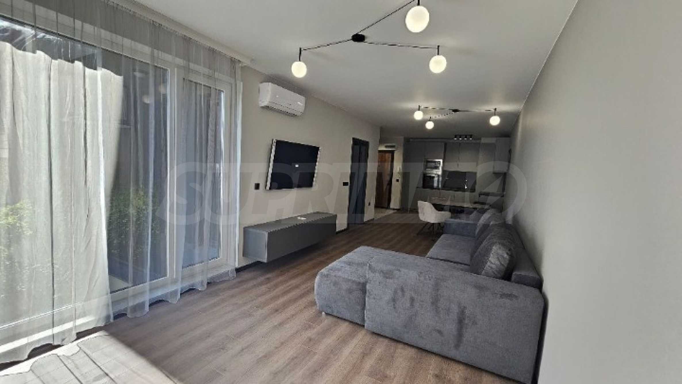 The apartment is brand new, luxuriously furnished with high-quality furniture and electrical appliances from leading brands. The interior is designed in a contemporary style, with attention to detail, creating a feeling of comfort and elegance. The space is extremely bright and welcoming, thanks to the large windows and southern exposure.