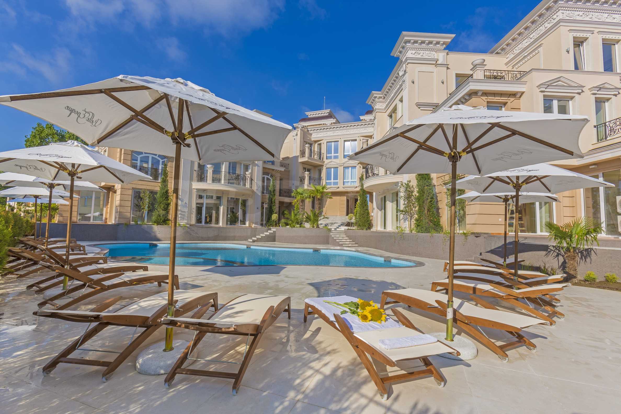 The elegant Belle Époque Beach Residence stands out with its classic architectural forms, a symbol of the timeless beauty of “The Beautiful Age”. The construction solutions and refined design of the building, its façade and common areas are rarely seen elsewhere on the Bulgarian Black Sea coast. High-quality finishing works and premium construction materials from world-leading manufacturers have been used throughout. Preference has been given to natural elements — stone façades, marble and other natural stone flooring in the common areas.