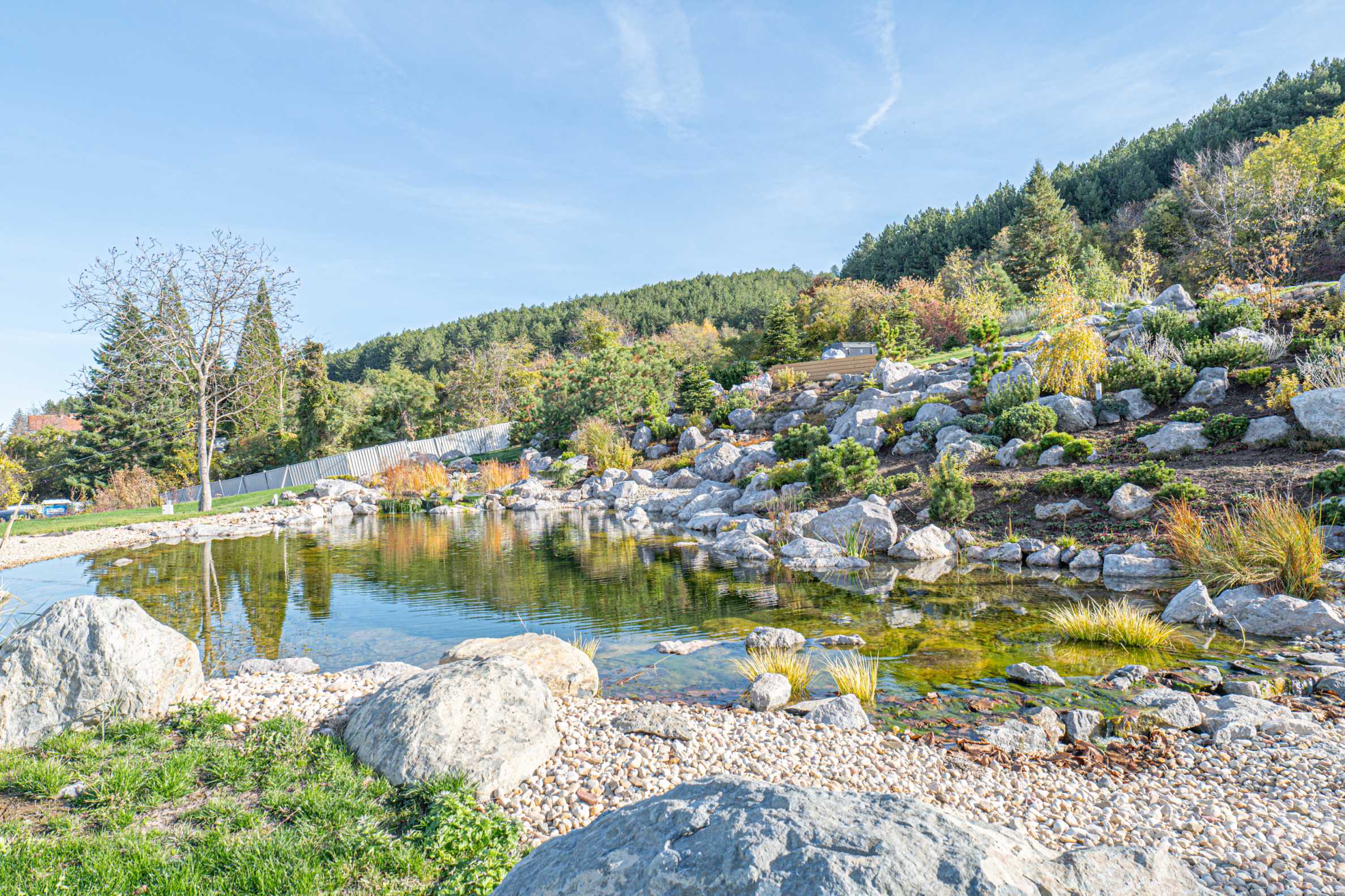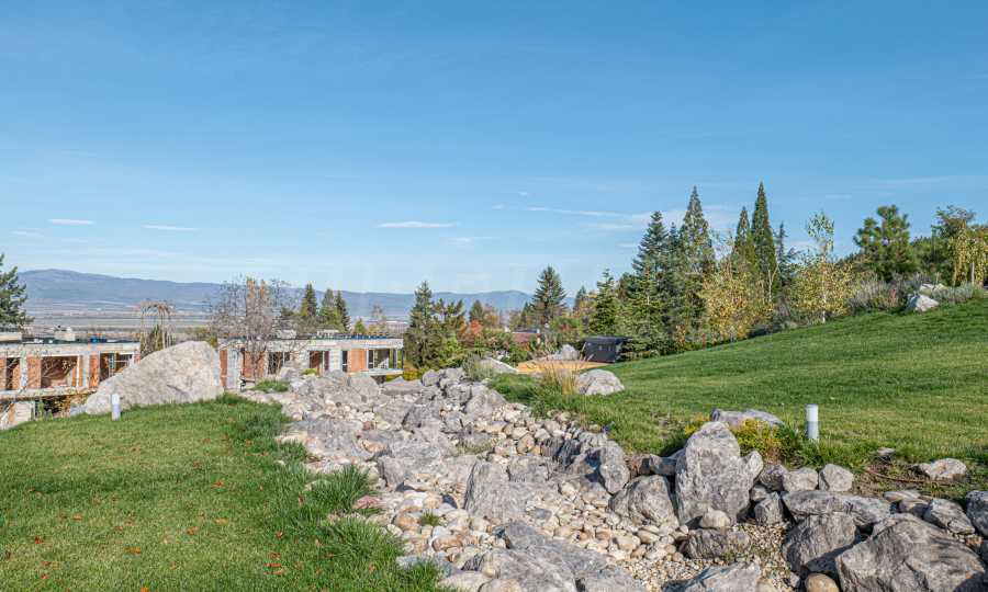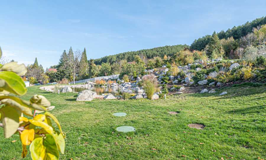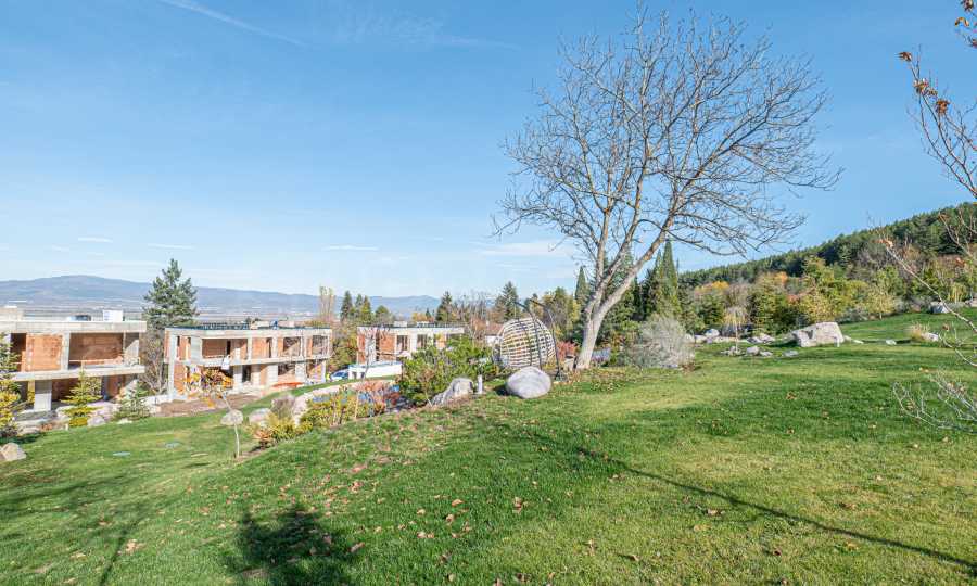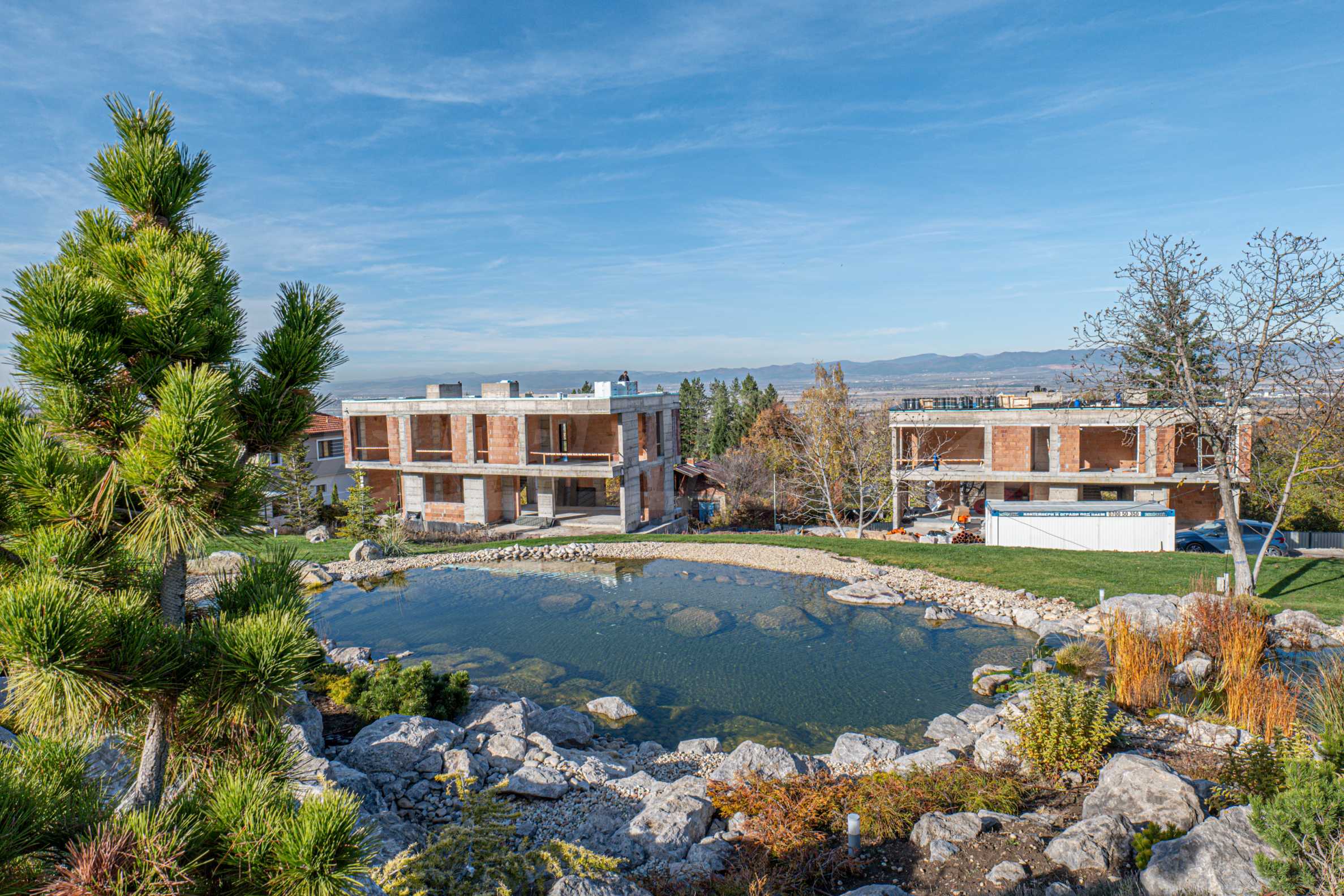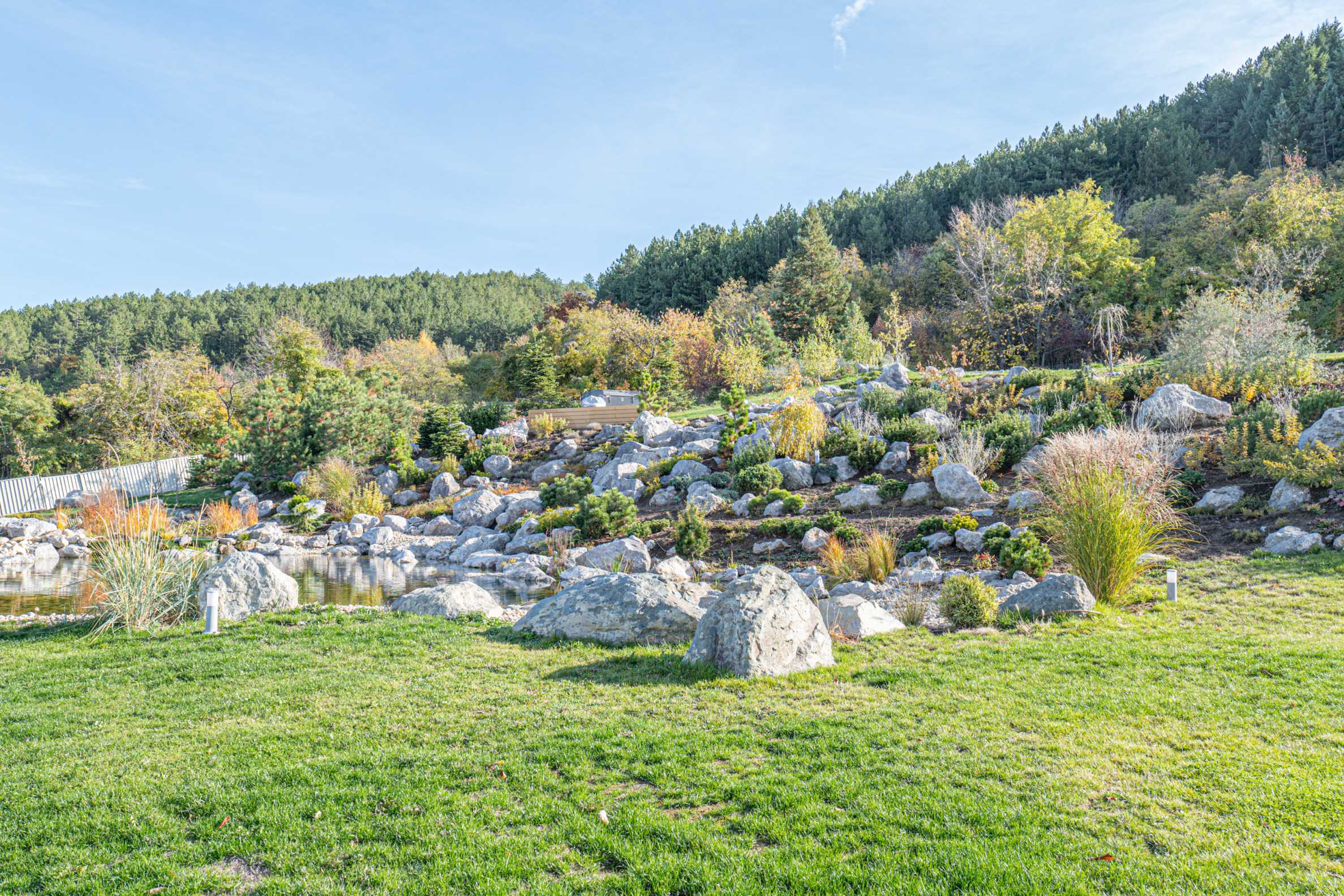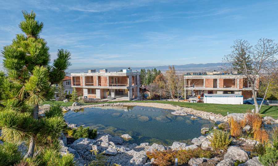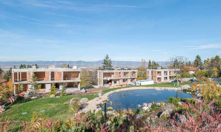 We present an exceptional property – a new house, located in a beautiful park environment of 5 acres in the village of Lozen, near Sofia. The property is part of an elegant gated complex, consisting of three separate houses, each with its own yard and access to the common green areas. The complex offers a unique atmosphere of tranquility and nature – with a lake, a small river, a waterfall, a jacuzzi and rich landscaping, which provides a feeling of relaxation and comfort throughout the year. The location next to the forest guarantees fresh air and a beautiful view, and in the immediate vicinity are all the amenities necessary for everyday life – shops, transport, school, etc.