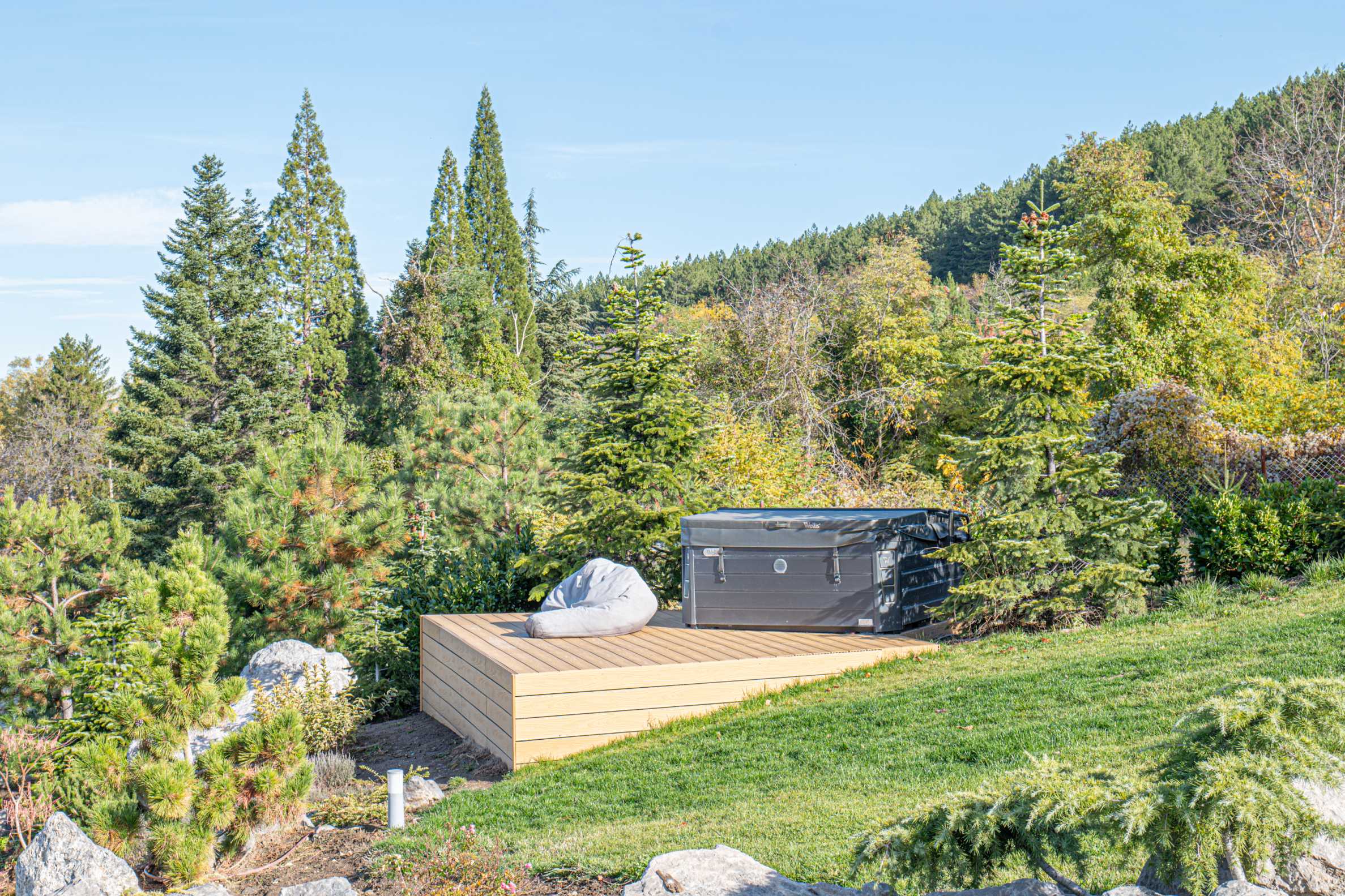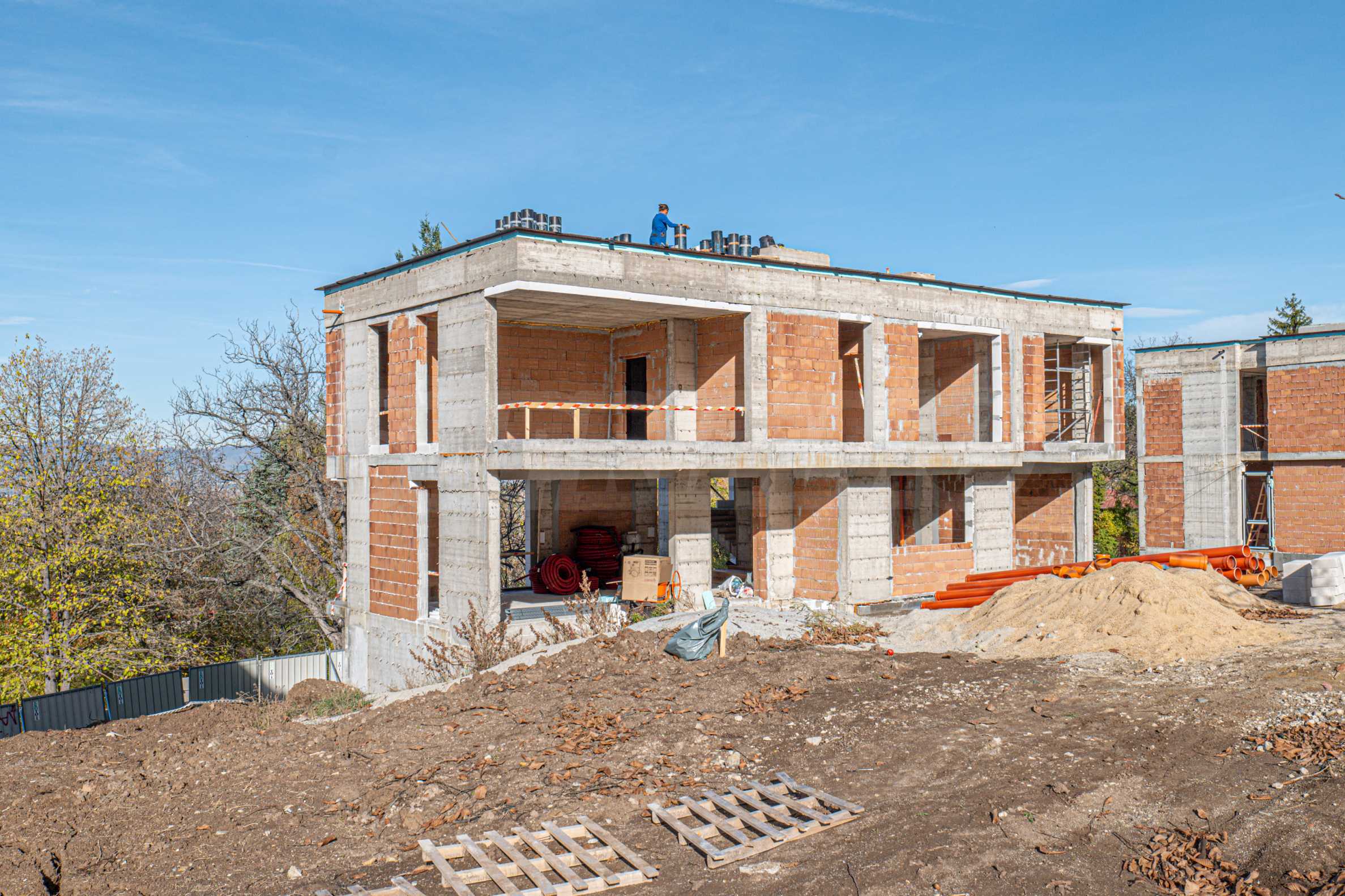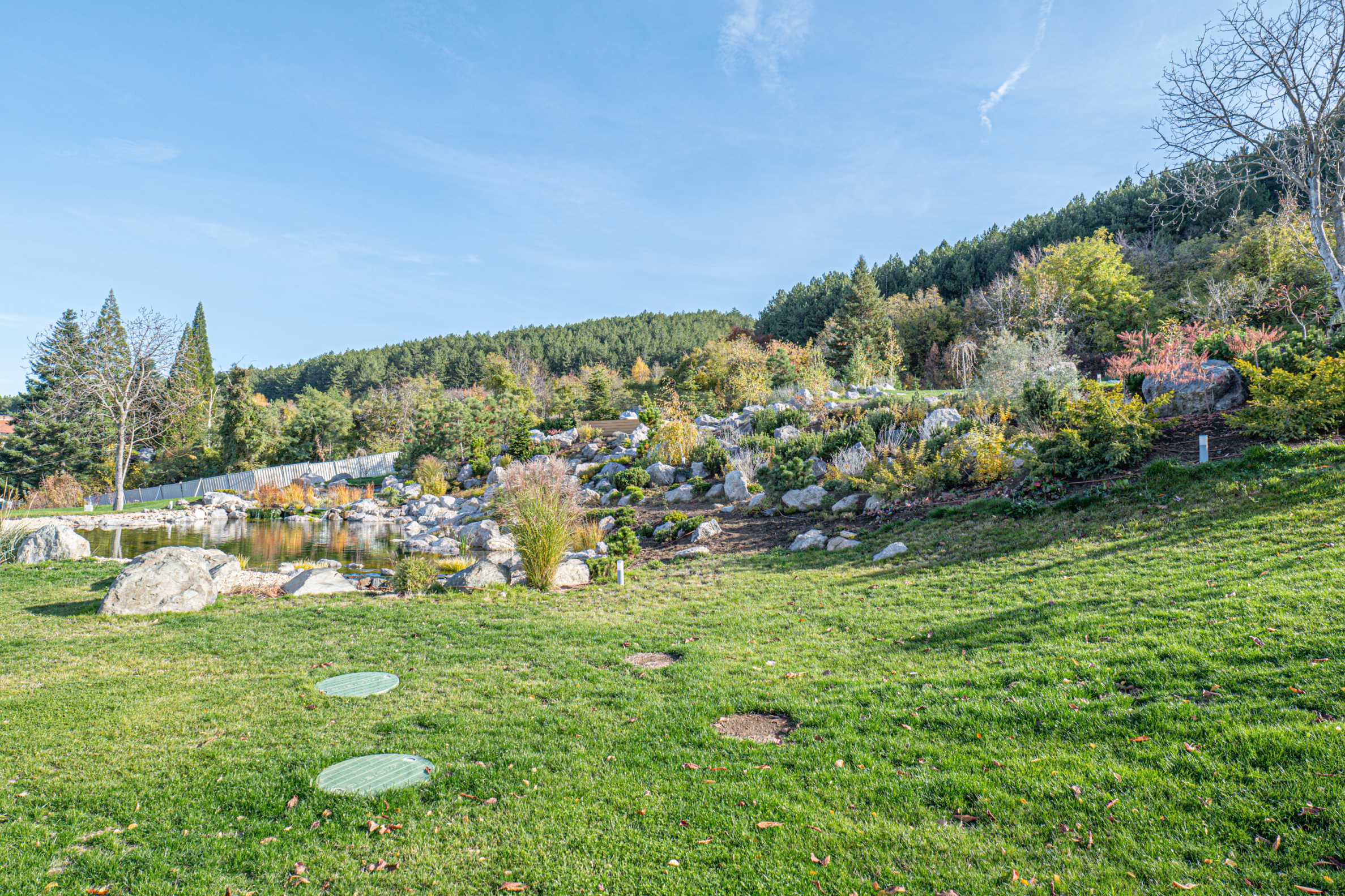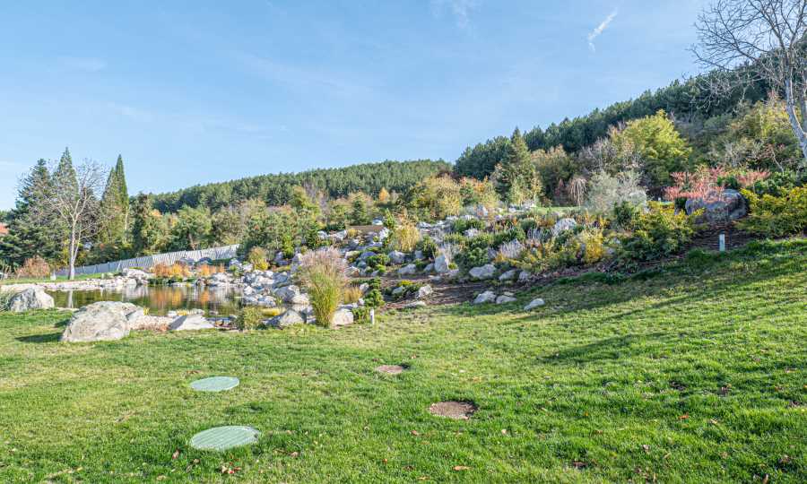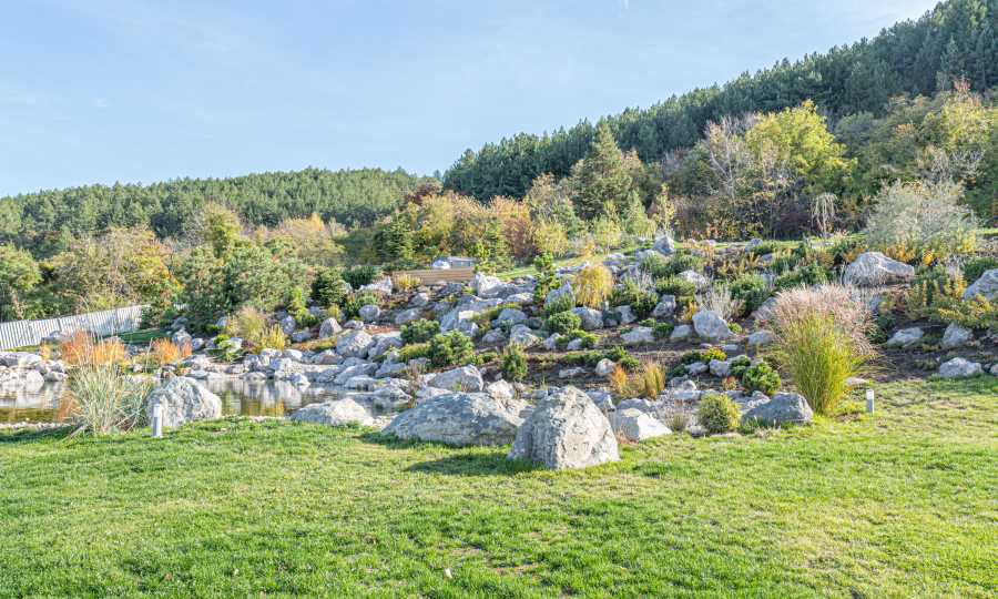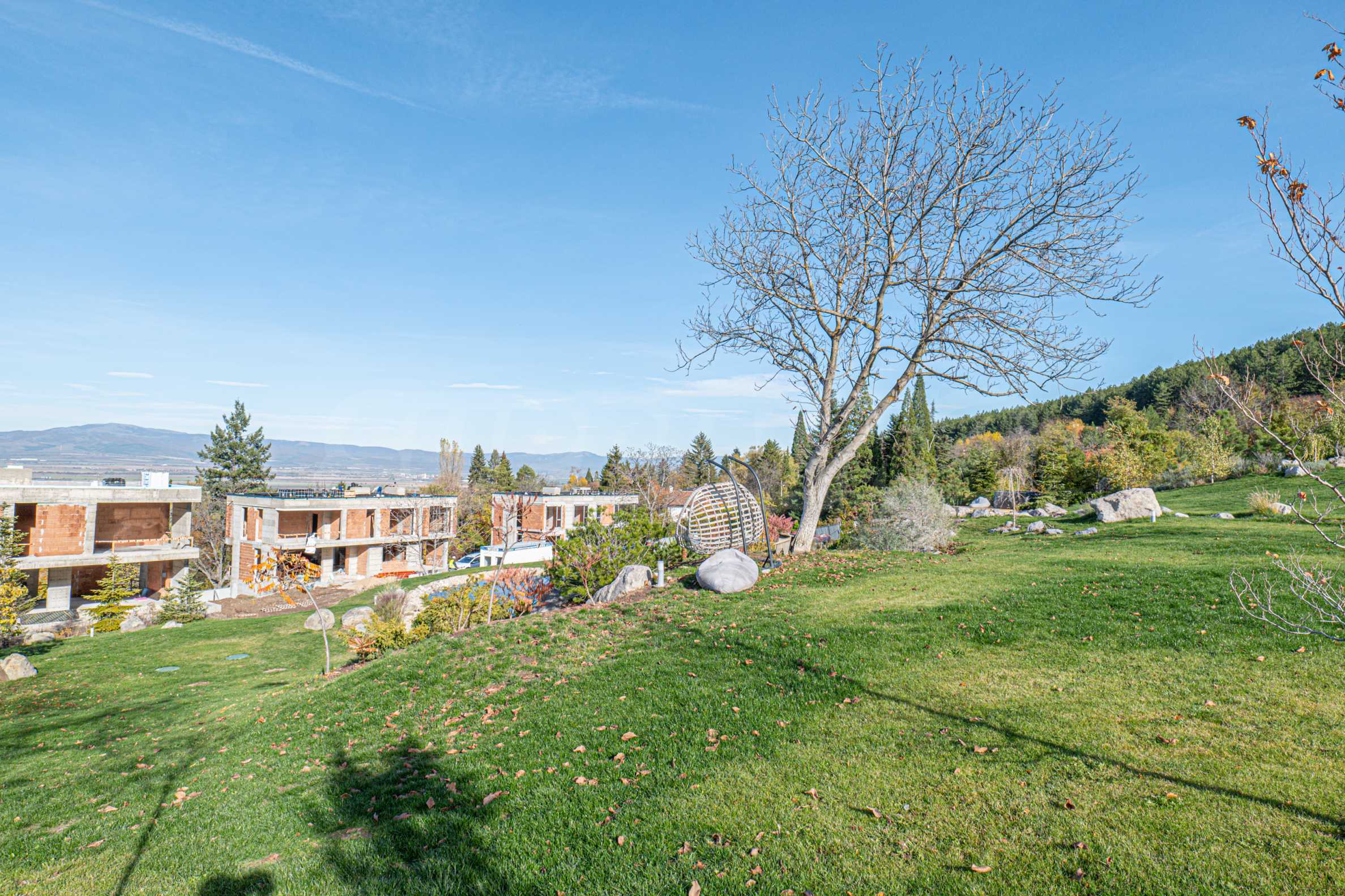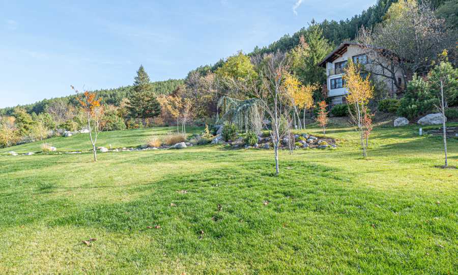We present an exceptional property – a new house, located in a beautiful park environment of 5 acres in the village of Lozen, near Sofia. The property is part of an elegant gated complex, consisting of three separate houses, each with its own yard and access to the common green areas. The complex offers a unique atmosphere of tranquility and nature – with a lake, a small river, a waterfall, a jacuzzi and rich landscaping, which provides a feeling of relaxation and comfort throughout the year. The location next to the forest guarantees fresh air and a beautiful view, and in the immediate vicinity are all the amenities necessary for everyday life – shops, transport, school, etc.