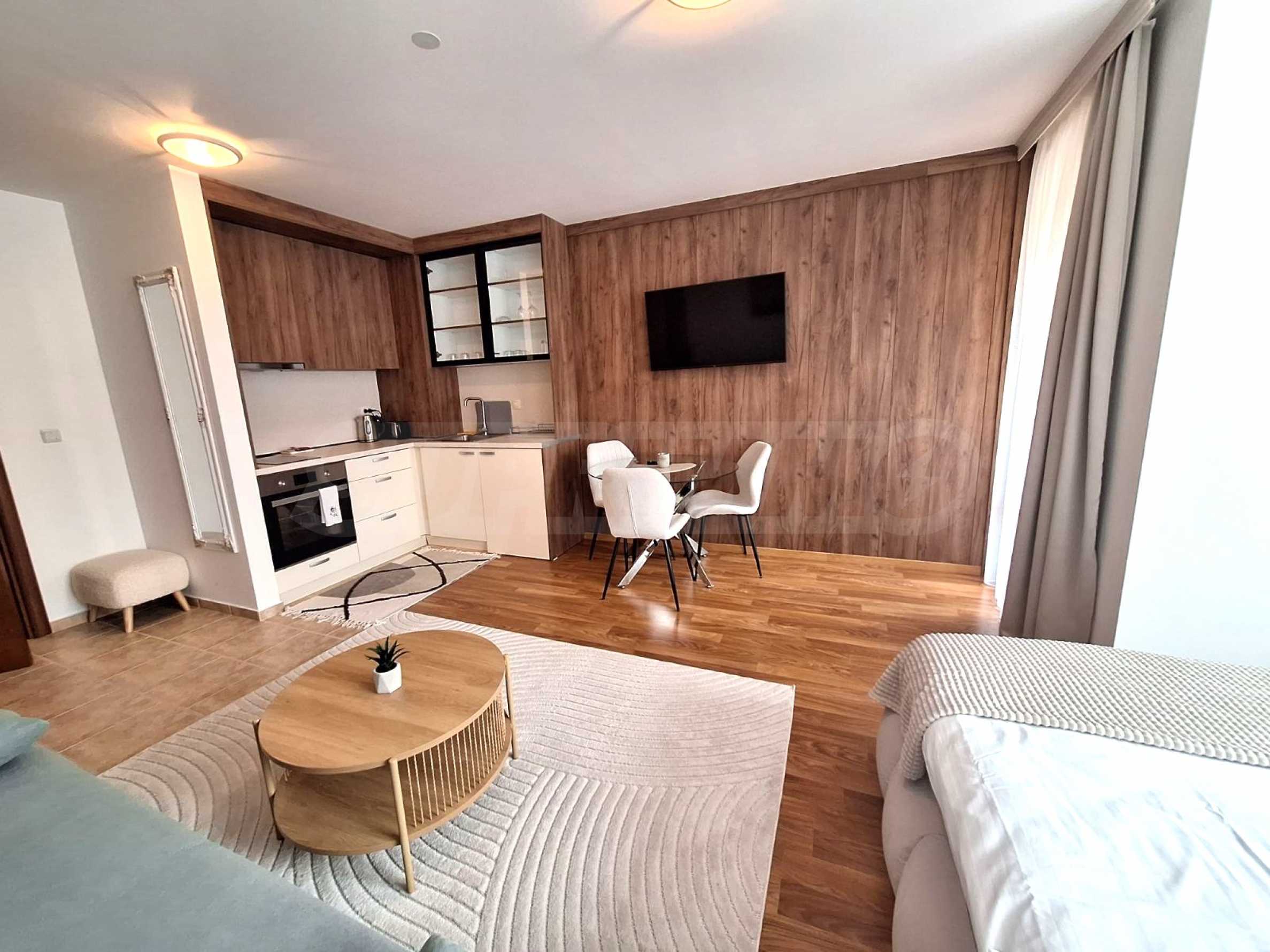 We present a modern, cozy studio 600 m from the ski area and the lift in a year-round complex in Bansko.