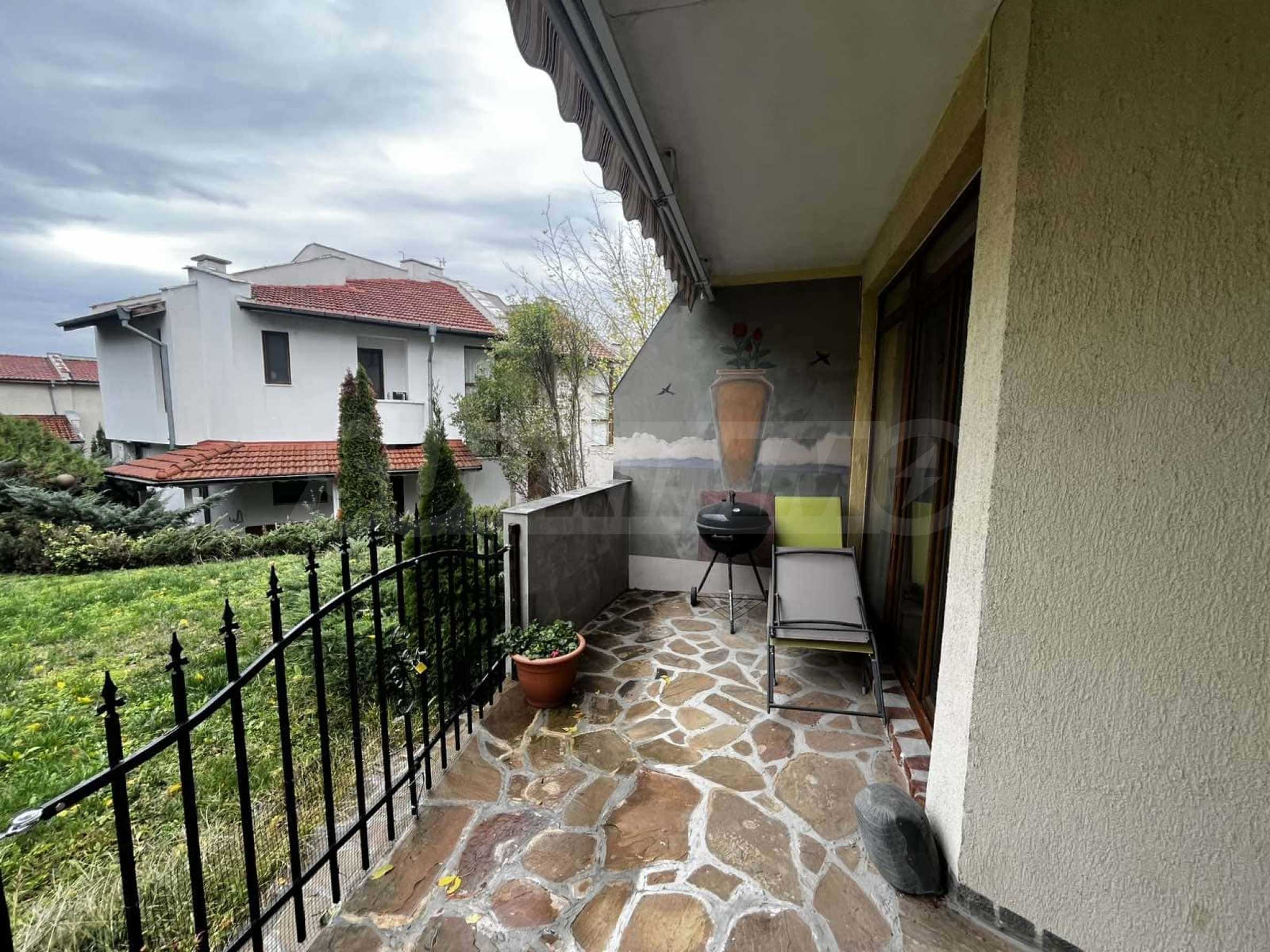 The property has a total area of 143 sq m and a yard of 30 sq m and a view of the garden and the pool of the complex.