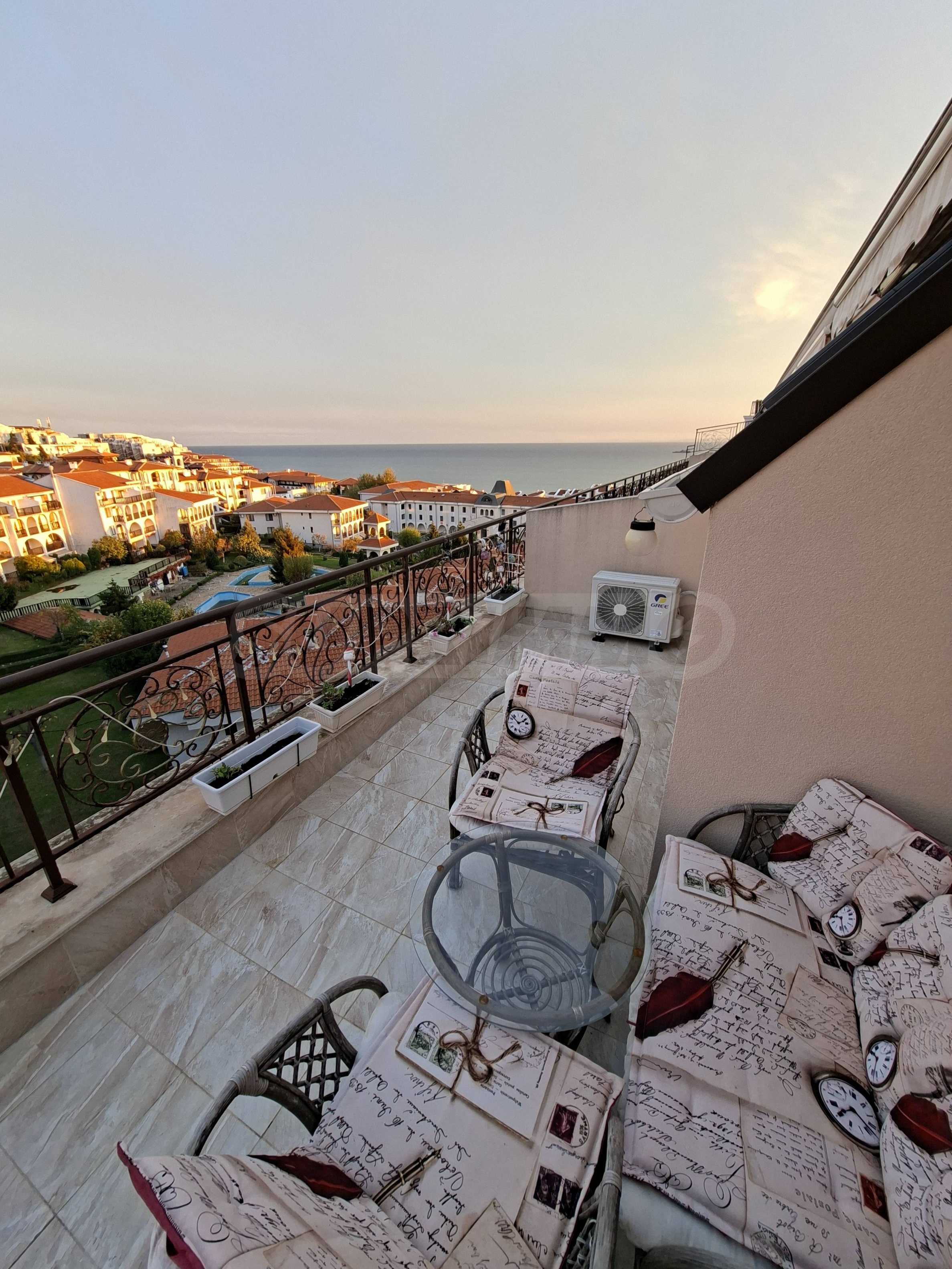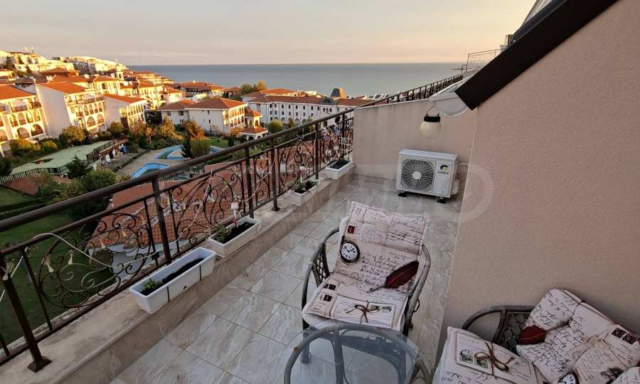 We present an attractive two-bedroom penthouse apartment with panoramic sea and mountain views in Sveti Vlas. Part of a complex with amenities, located on the second line of the sea in Sveti Vlas, in close proximity to the port "Marina Dinevi".