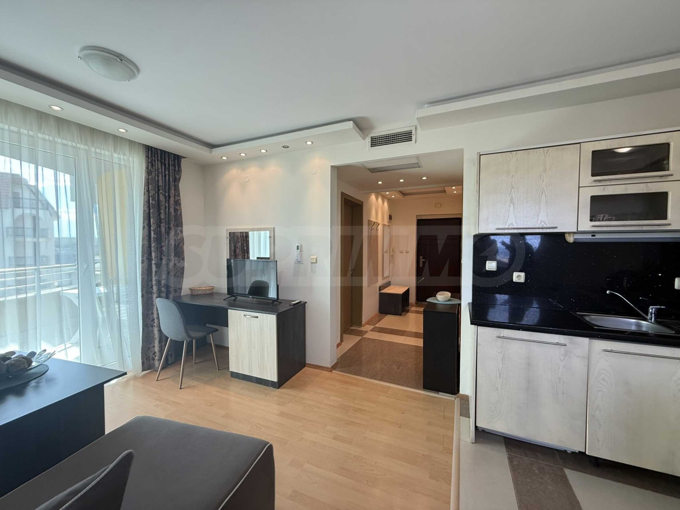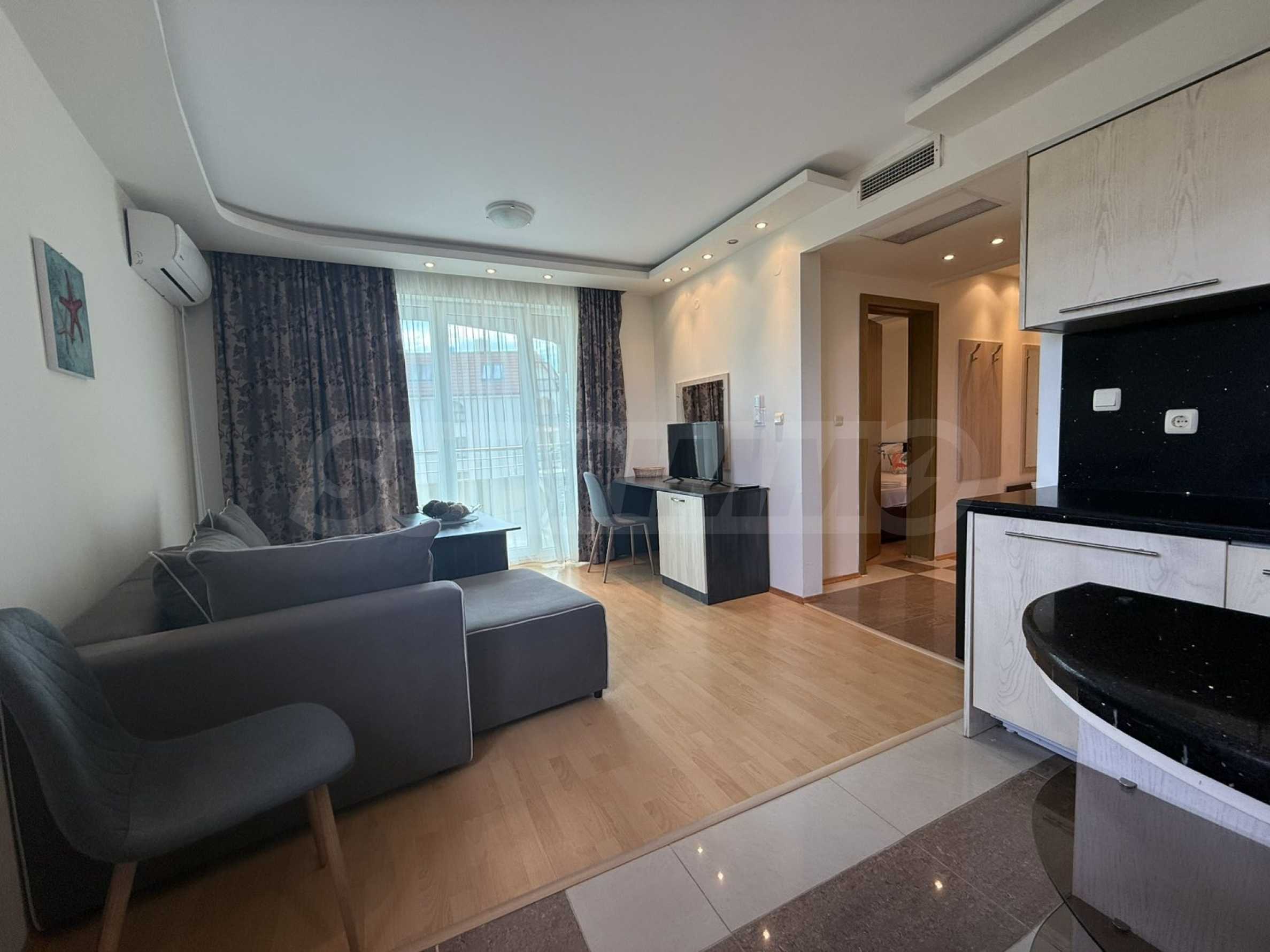 We present for sale a one-bedroom apartment in a complex with a swimming pool, 300 meters from the "Butamyata" beach in Sinemorets.