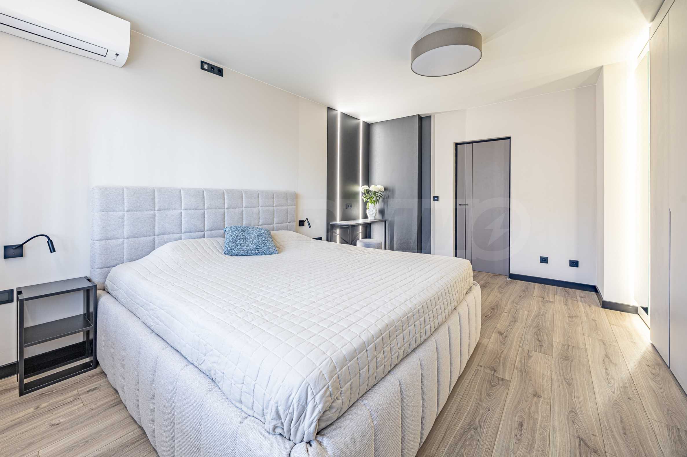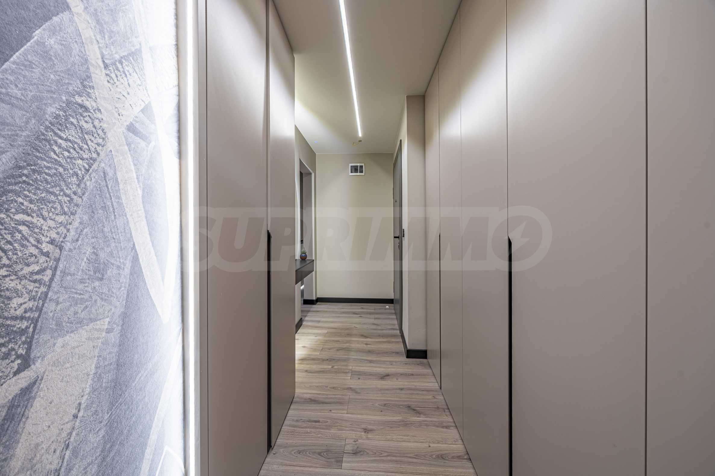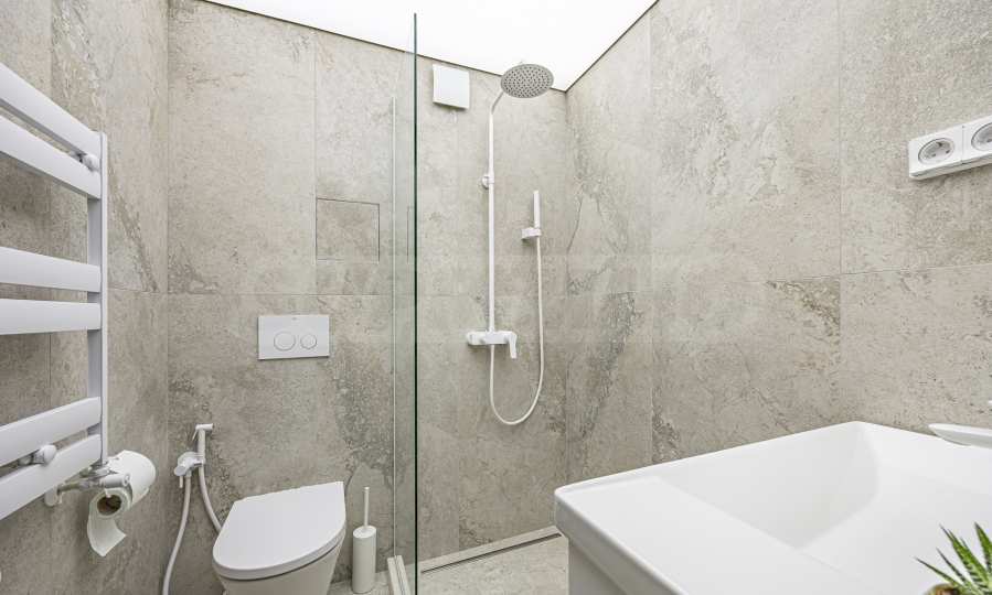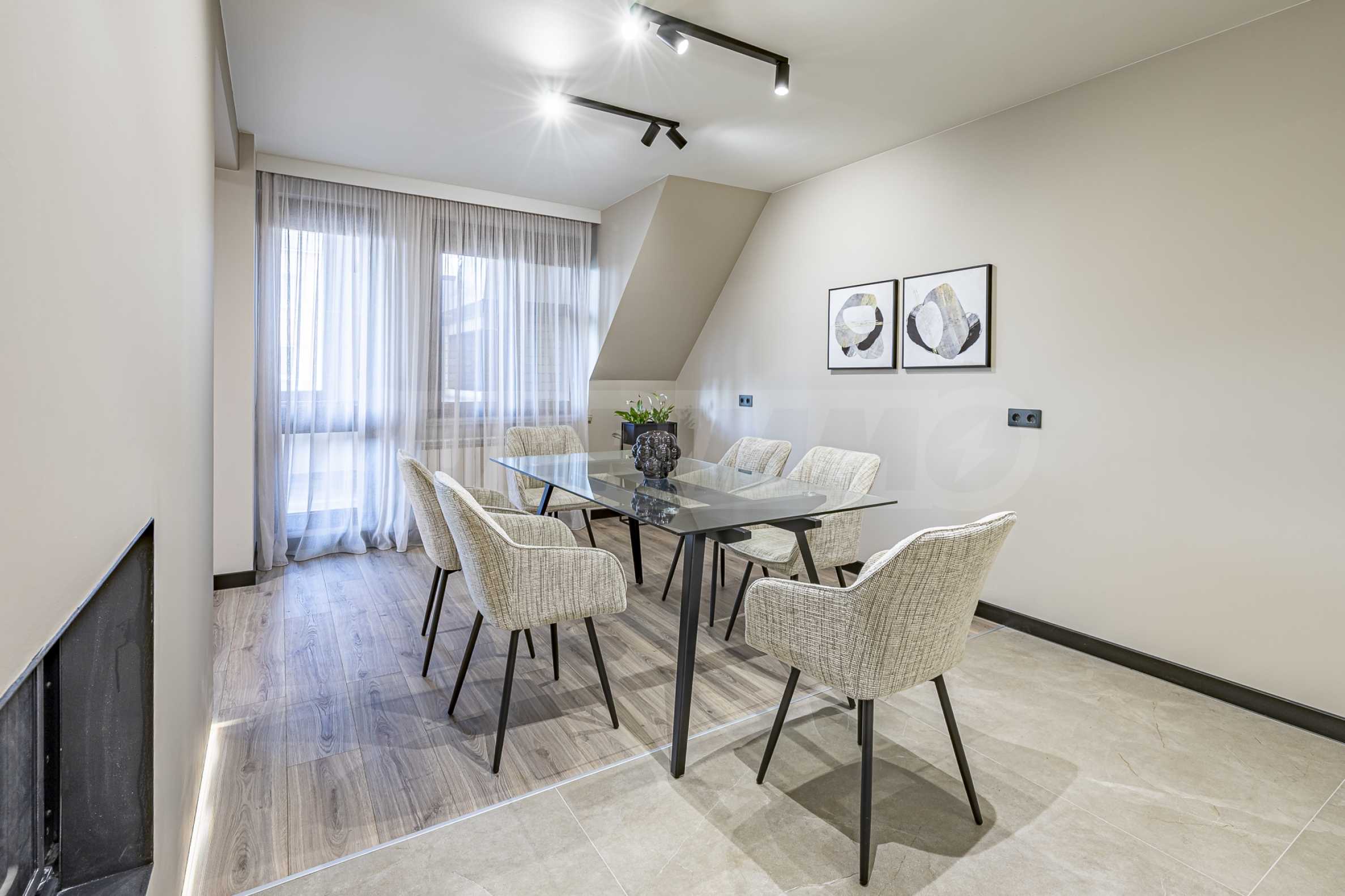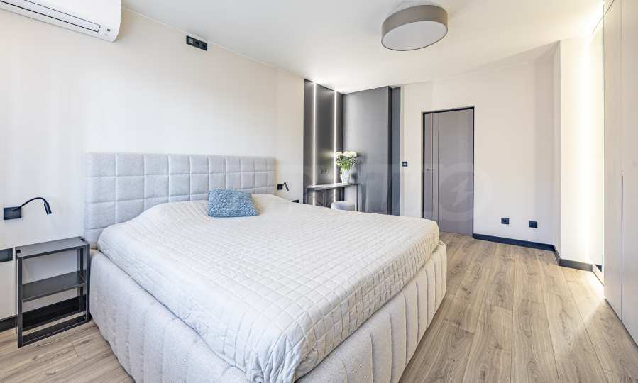 The apartment is elegantly furnished with custom-made designer furniture. It has a modern smart home lighting and heating system, which provides easy control, energy efficiency and additional comfort. And for a warm and pleasant atmosphere during the cold months there is a fireplace.
