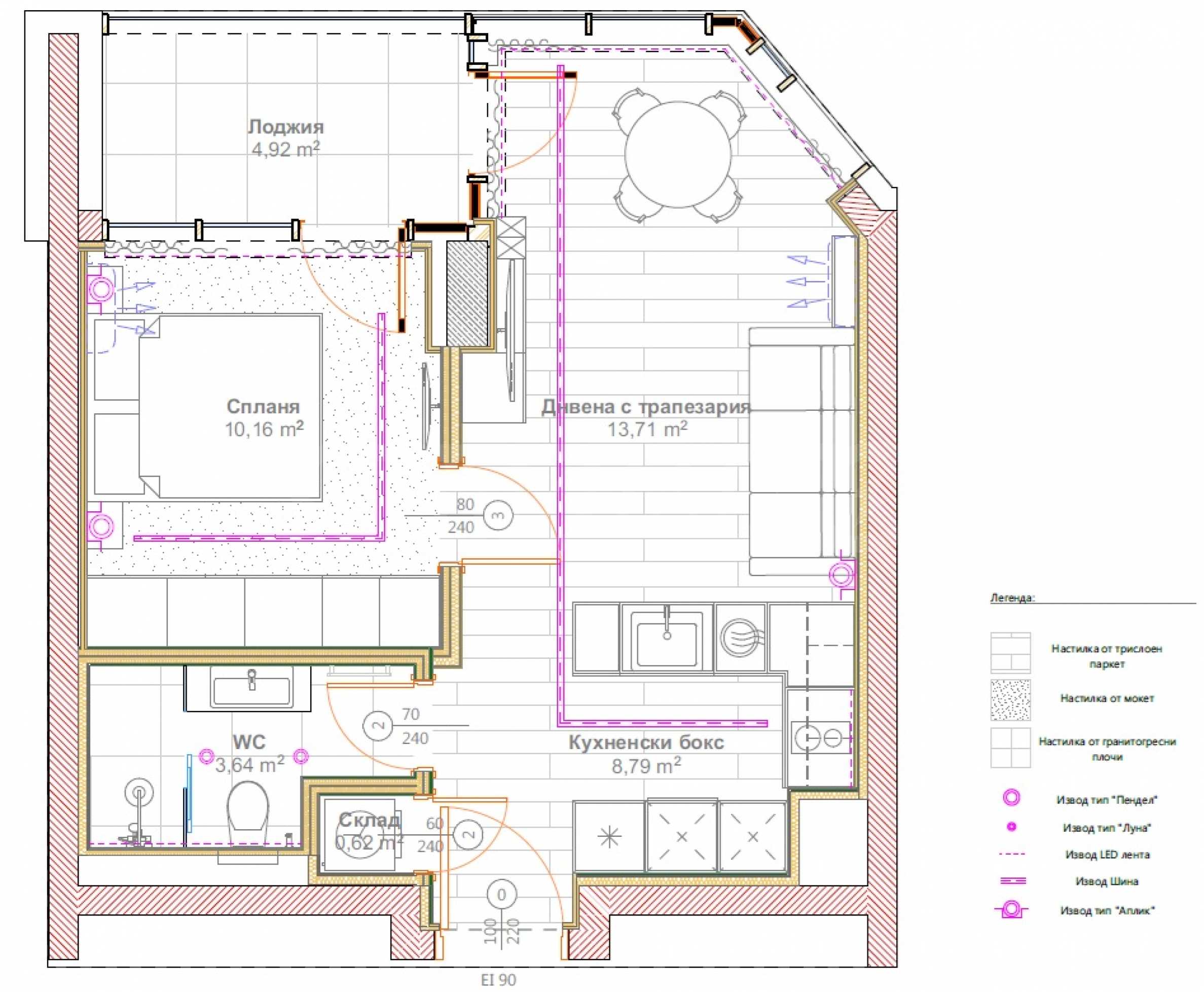 •Living room with dining area (13.71 m?) – spacious and bright, with panoramic windows;
