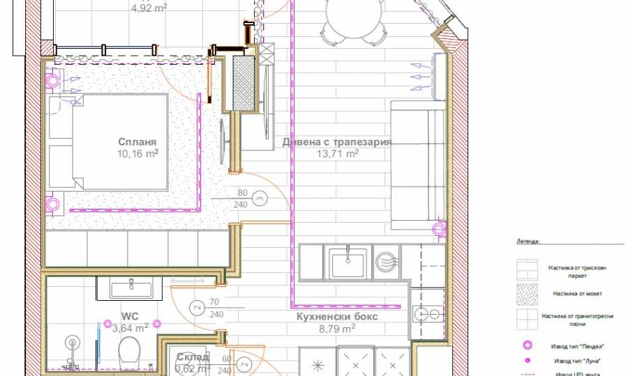 •Kitchenette (8.79 m?) – functionally located and visually separated;