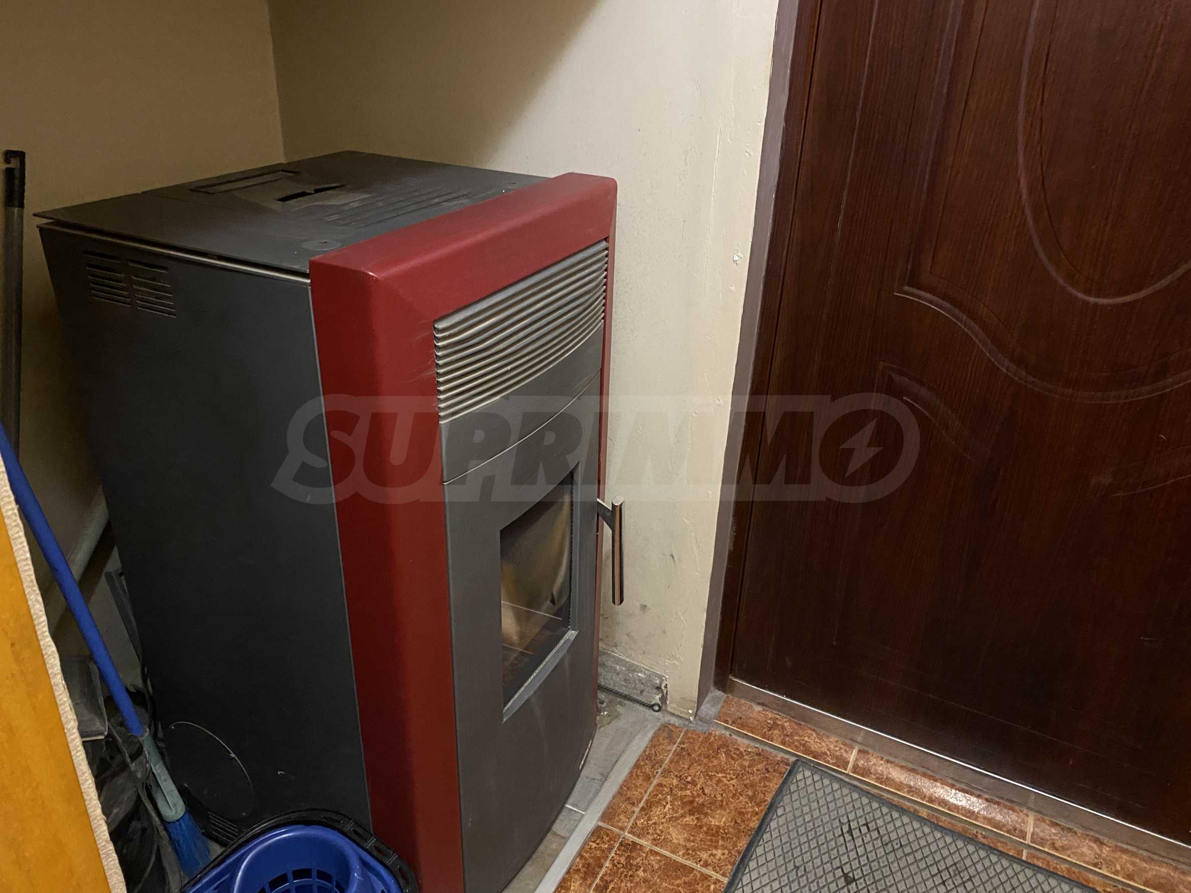 Pellet central heating and four air conditioners provide warmth during the winter months and cooling during the summer. The apartment is heated by a pellet central heating system and four air conditioners.