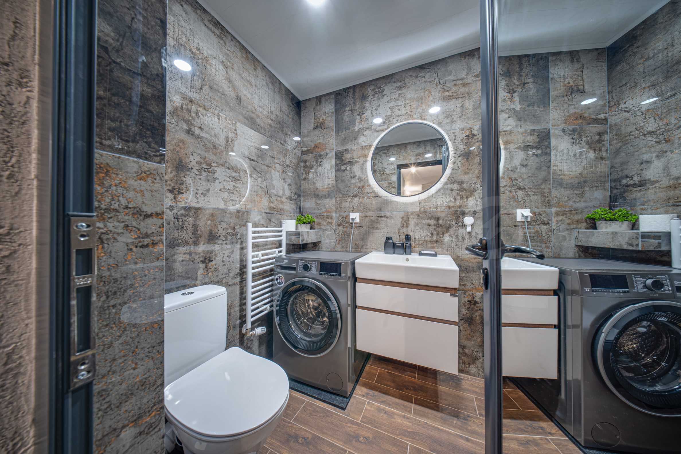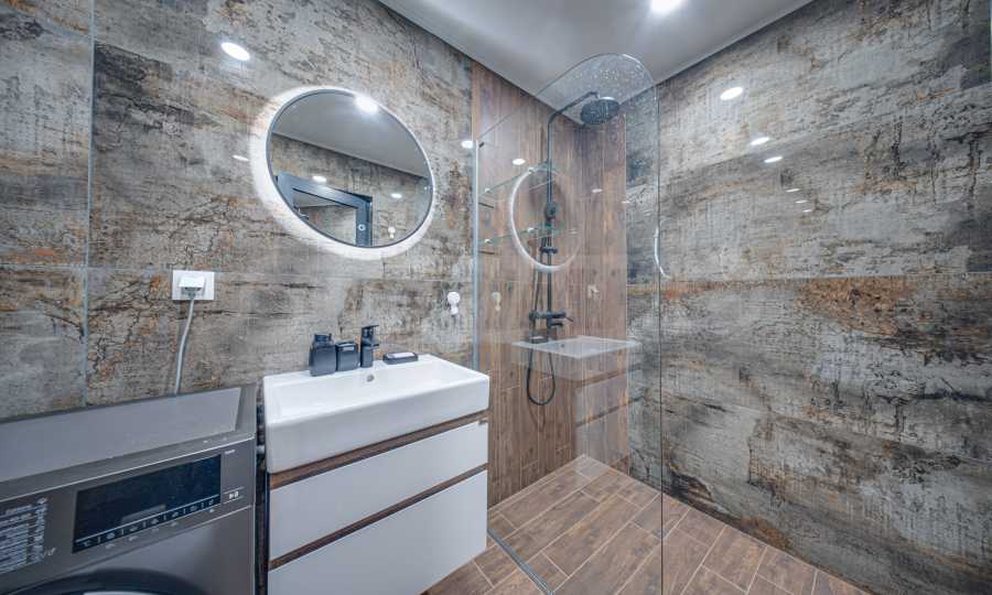The apartment is fully furnished and equipped: washing machine, dishwasher, oven, refrigerator with freezer, hob, extractor hood, dining table, chairs, upholstered furniture, bed, wardrobes, cabinets, accessories, etc. With finishing works - flooring: high-class laminated parquet and granite tiles; walls - sand plaster, travertine and latex.