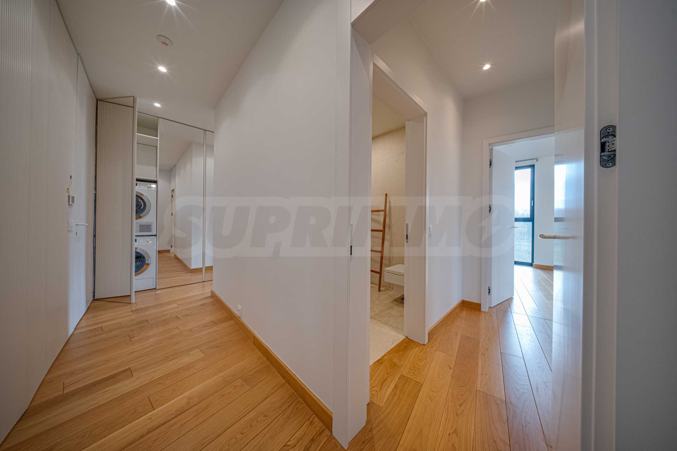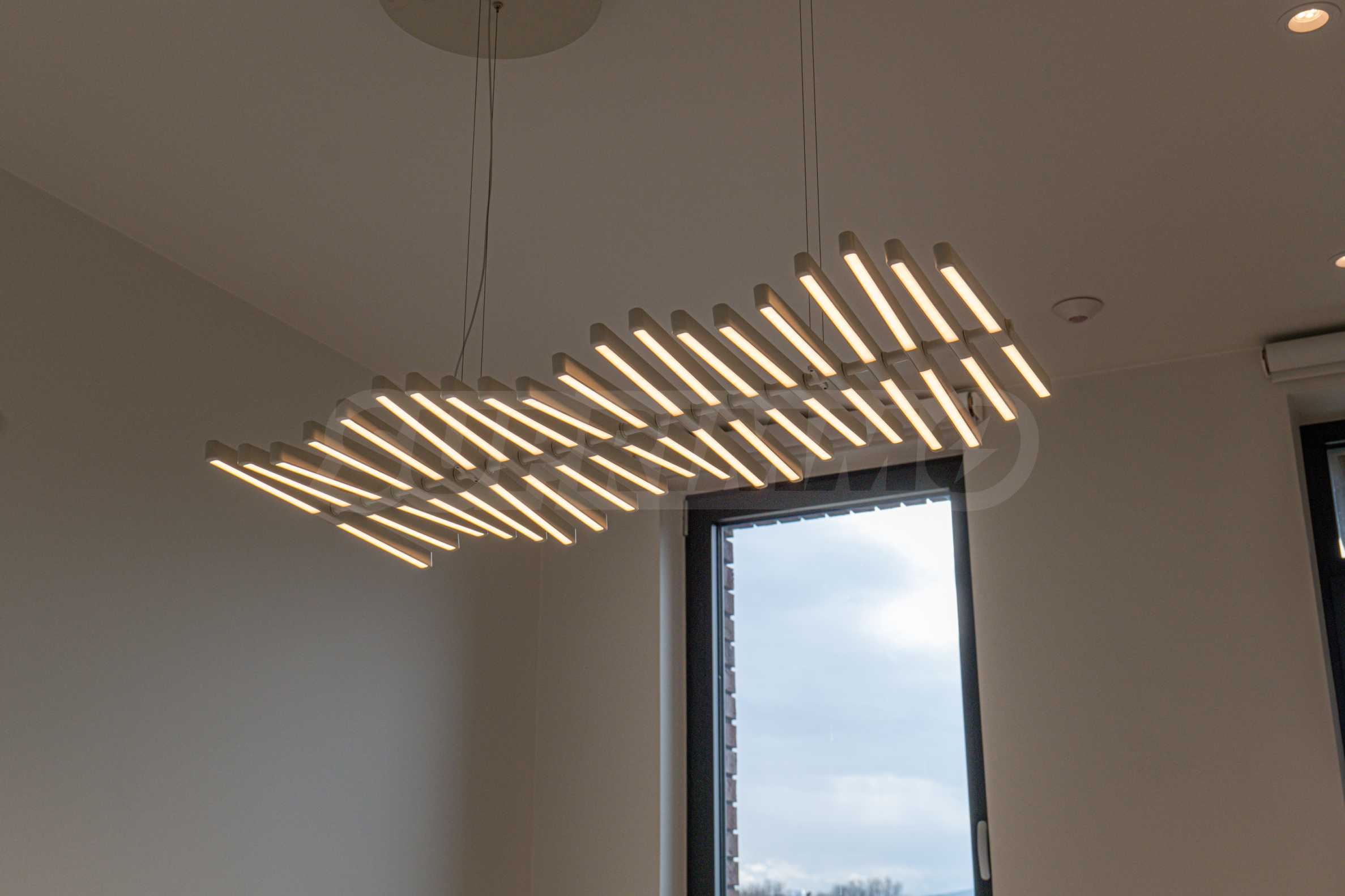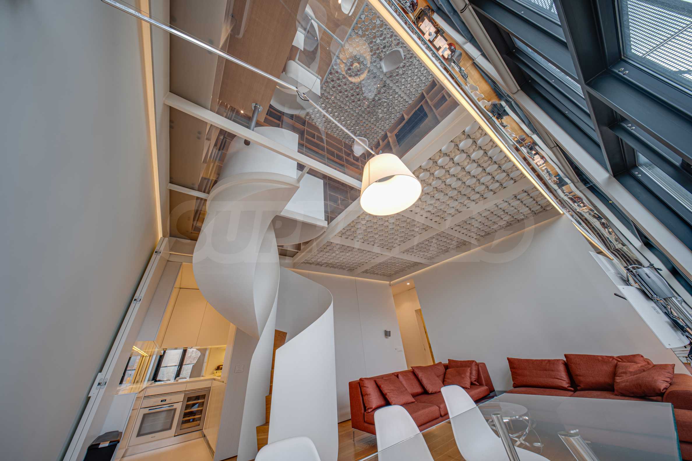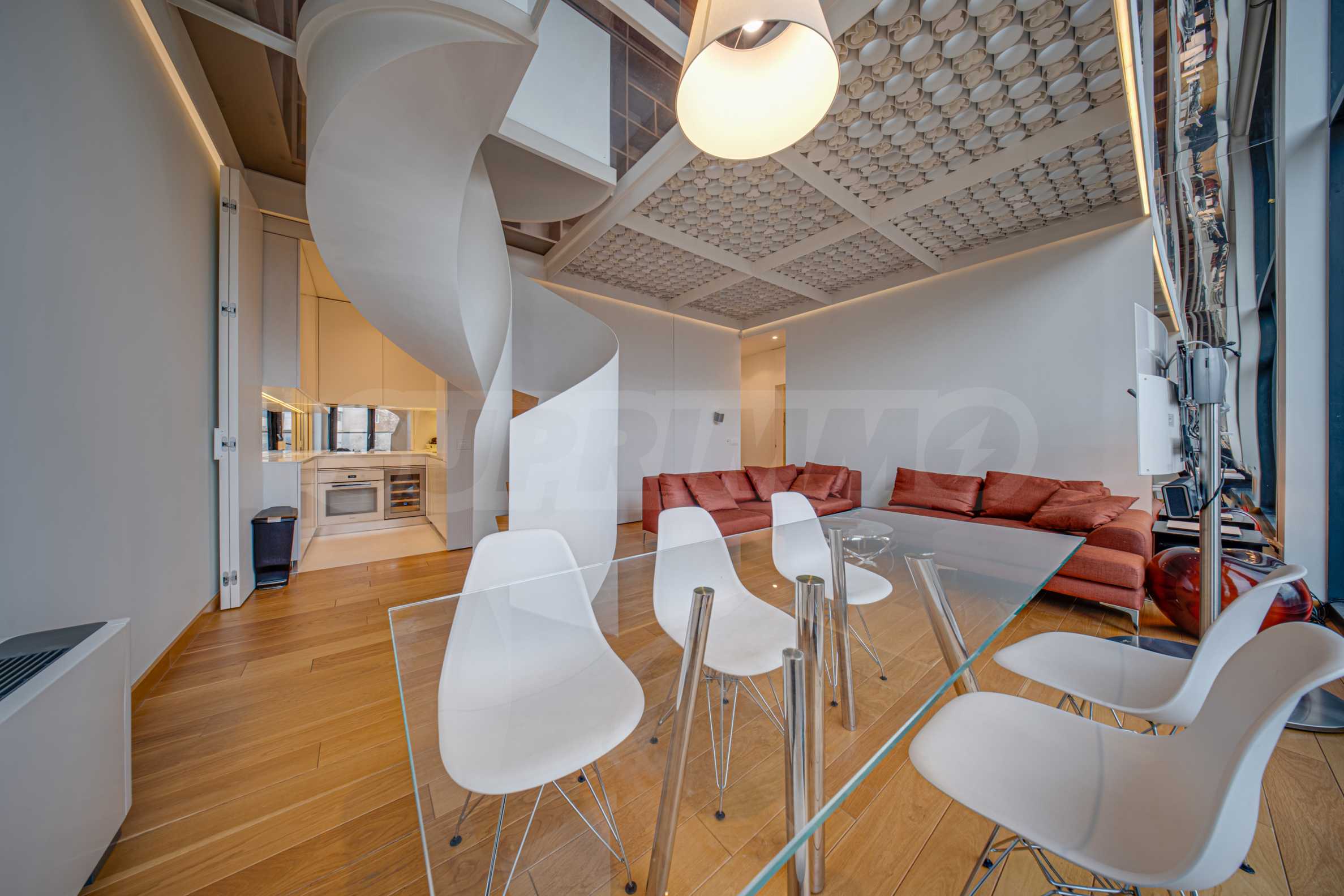 The interior space is organized with elegant and comfortable living in mind. The living area is impressively spacious, with high ceilings and an emporium – a beautiful and functional space that can be transformed into a home office, art corner or cozy library. The furnitures are of high class: furniture from Roche Bobois and Valian, designer Vibra lighting, premium MIELE appliances – every detail has been selected to complement the atmosphere of sophistication.