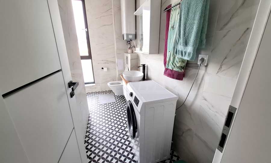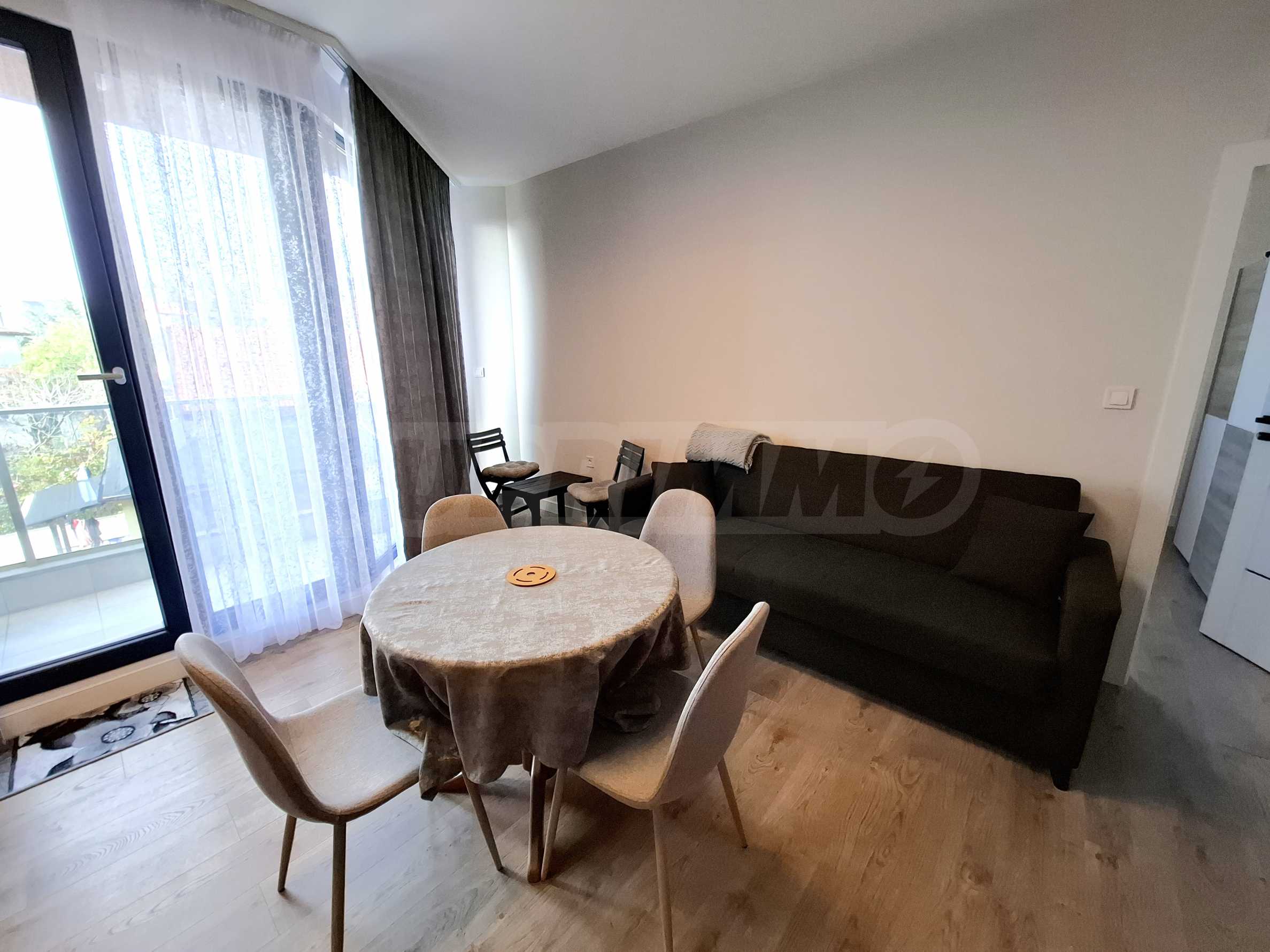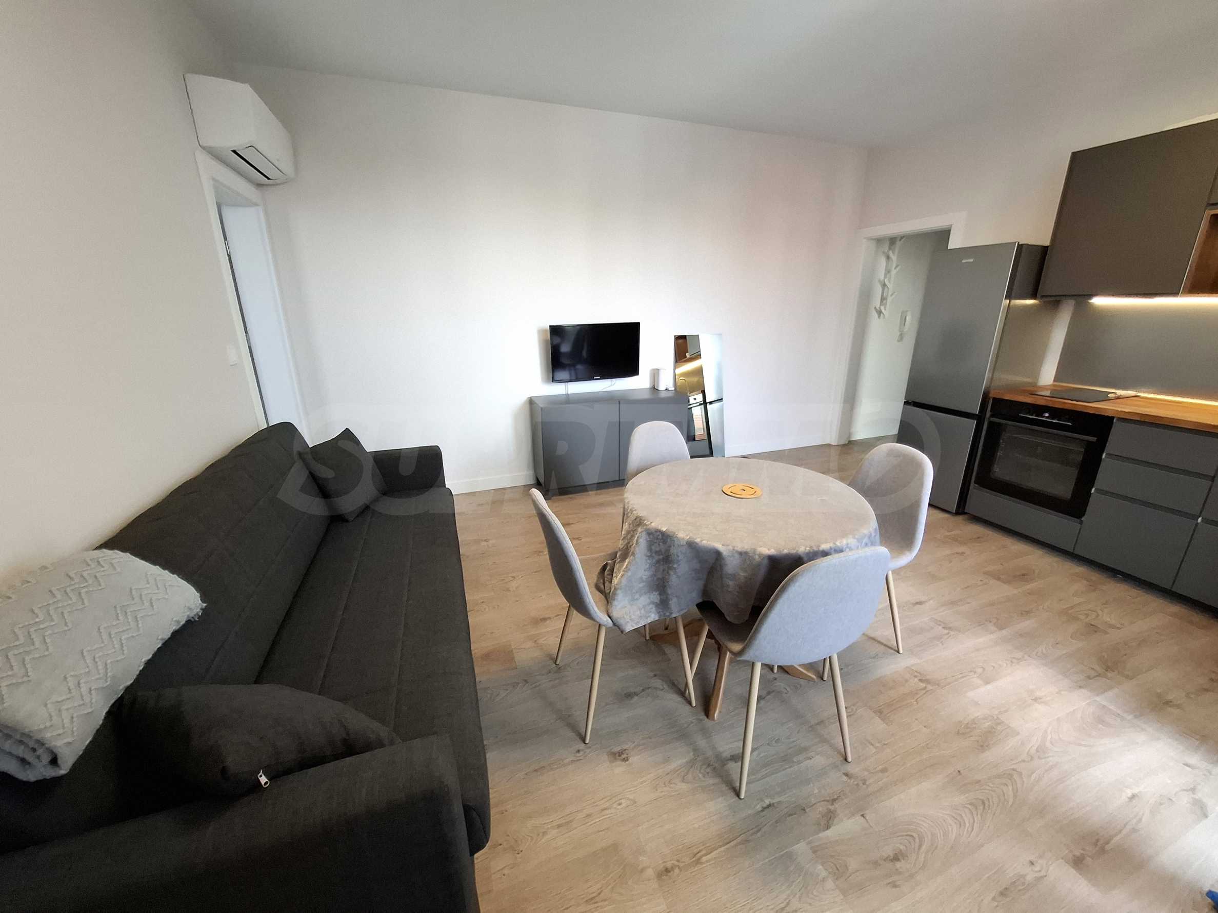We present a one-bedroom apartment in a new building, in the Trakata area. With an excellent location in a quiet and peaceful area with lots of green areas and space, minutes from the Sea Garden. Close to a shopping center and with easy access to the main boulevard.