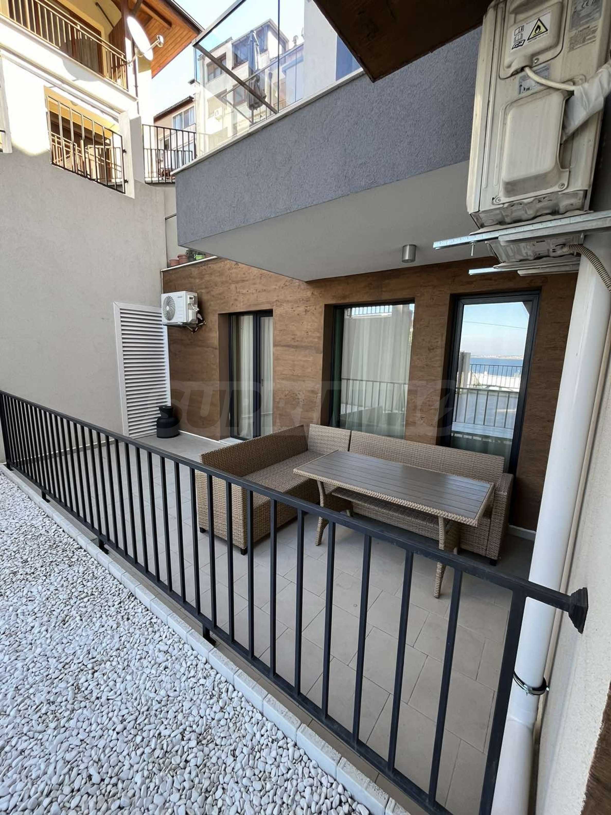 The property has a total area of 67 sq m, situated on the 1st floor with an adjoining veranda of 15 sq m and a partial sea view of the bay.
