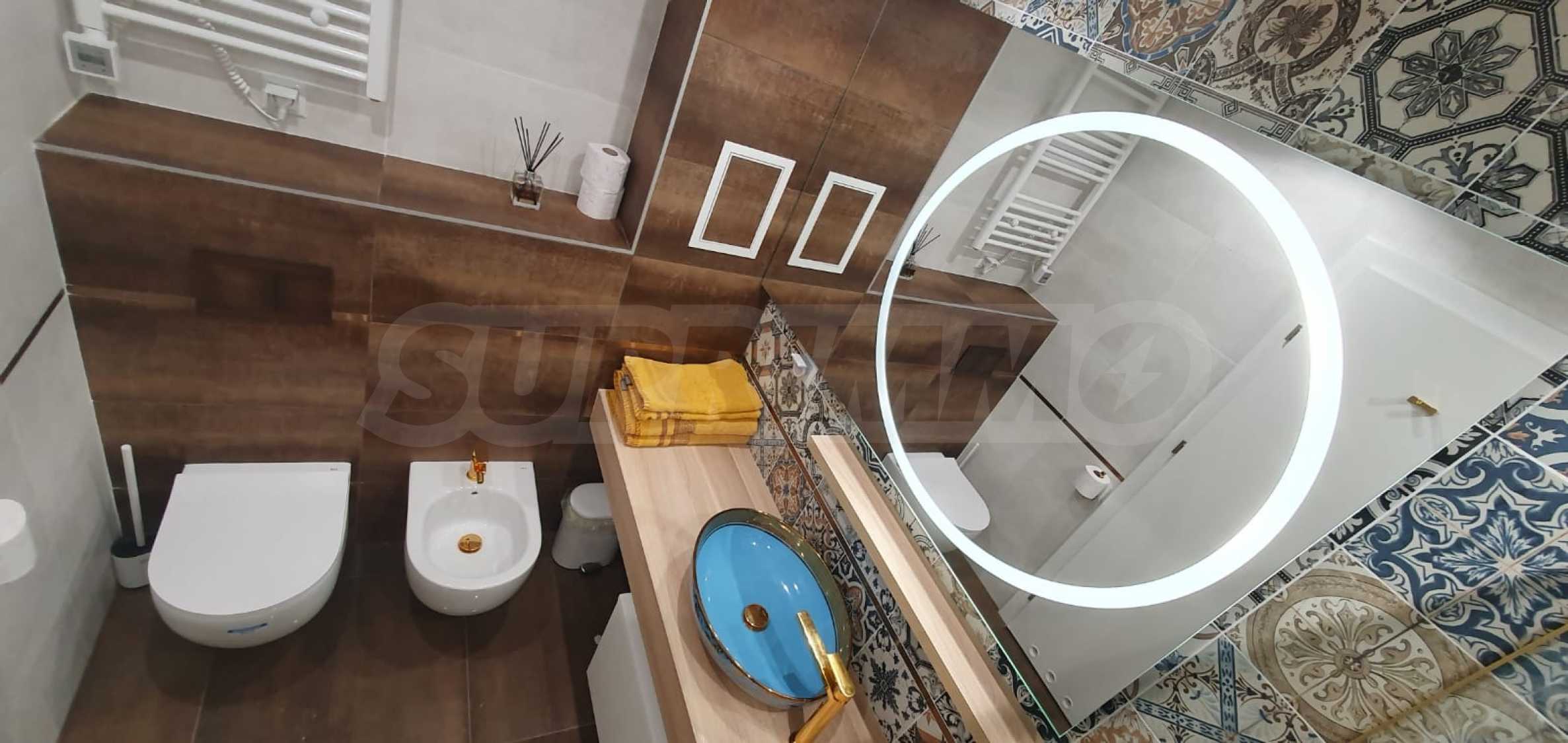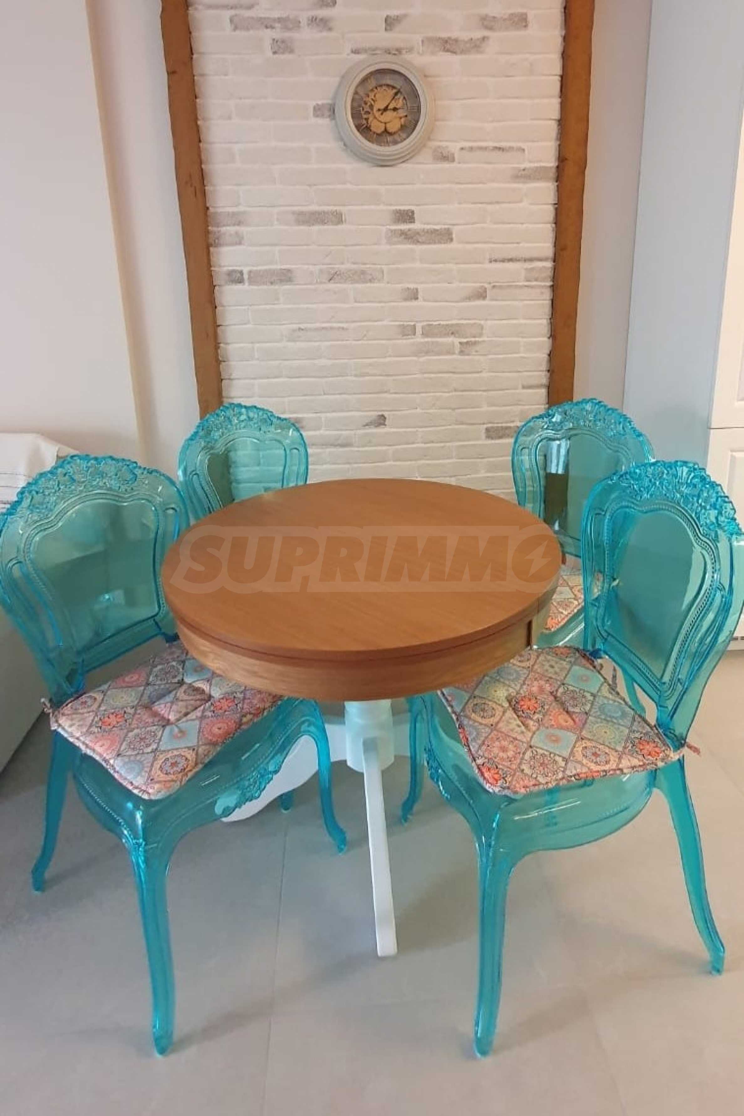 The apartment is newly furnished according to individual design and has not been rented out. It has a washing machine, dishwasher, oven, TV, garden furniture, 2 Daikin air conditioners with heating option. The sanitary ware in the bathroom is Roca and Tres.